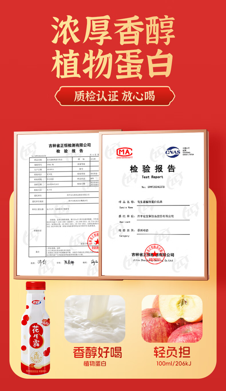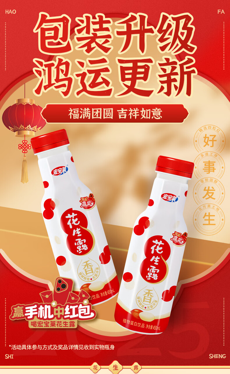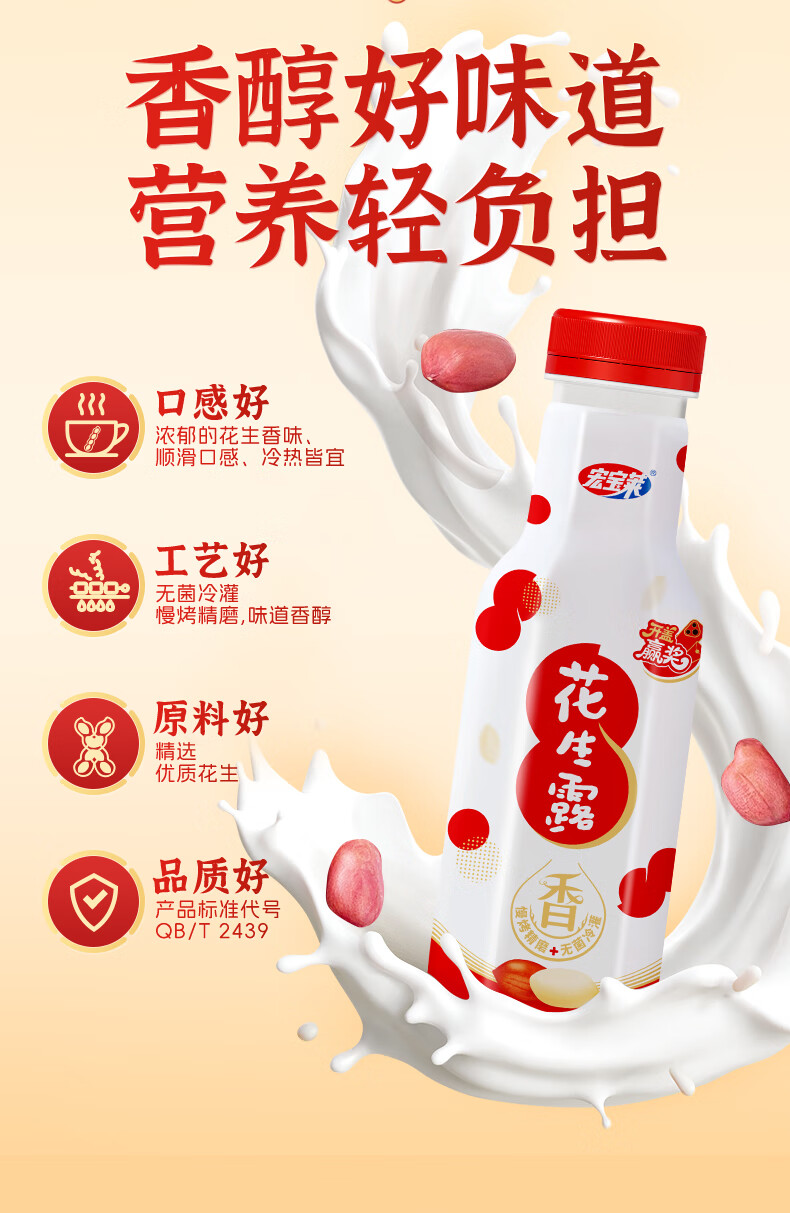 宏宝莱【新升级】花生露饮料整箱饮品 植物蛋白饮料老少皆宜早餐伴侣 450ml*4瓶