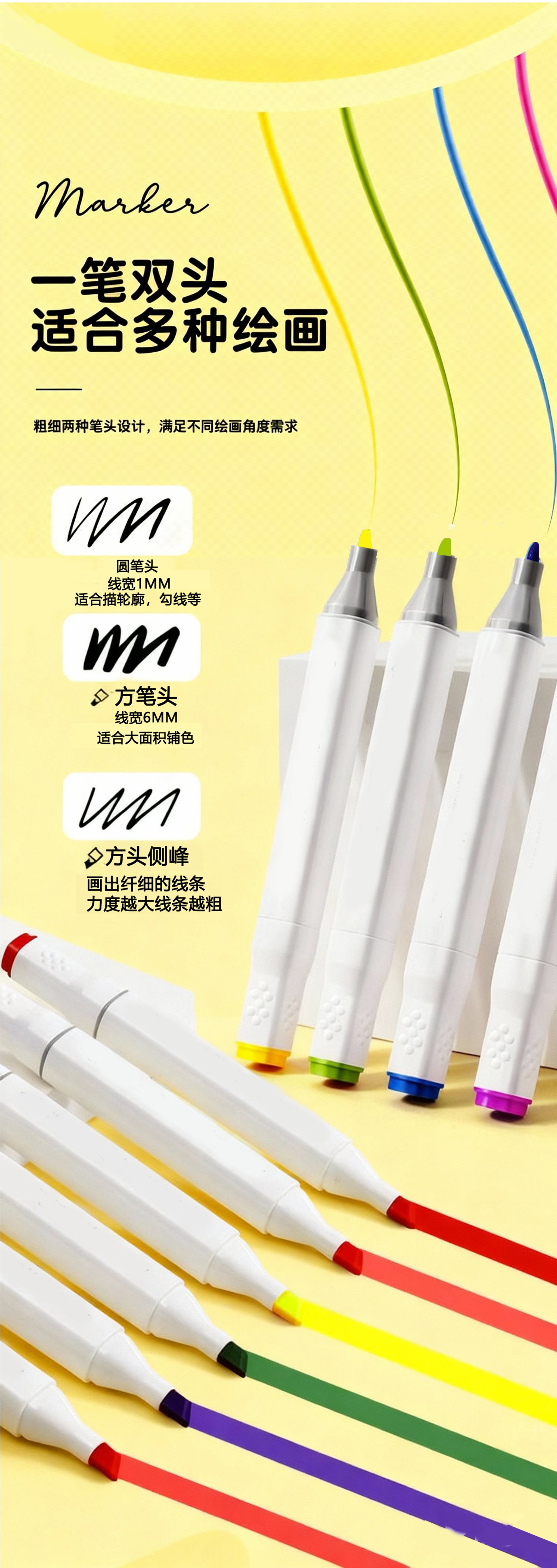 米娅丙烯马克笔不透色可叠色学生专用DIY彩色画笔水彩笔防水不透纸无毒儿童涂鸦专用彩笔可水洗笔芯 【美院联名款】36色双头丙烯马克笔