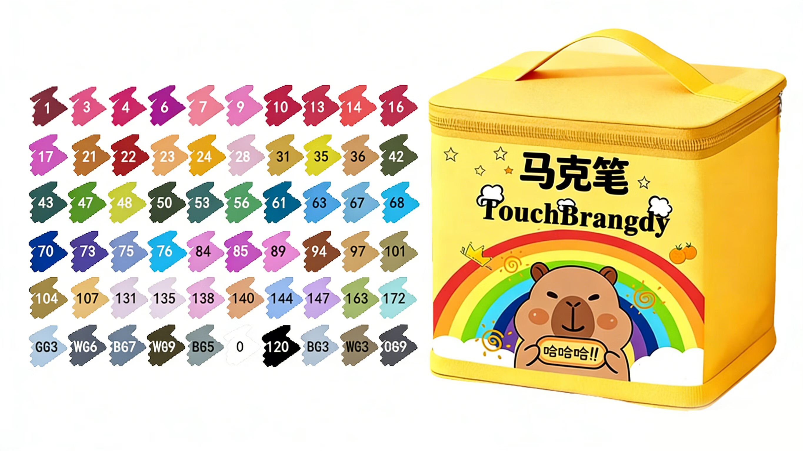 Brangdy双头马克笔美术生专用小学生不透色无毒可水洗可叠色高覆盖大容量幼儿园儿童绘画笔 双头马克笔容量+25%-60色+送4支+收纳包底座