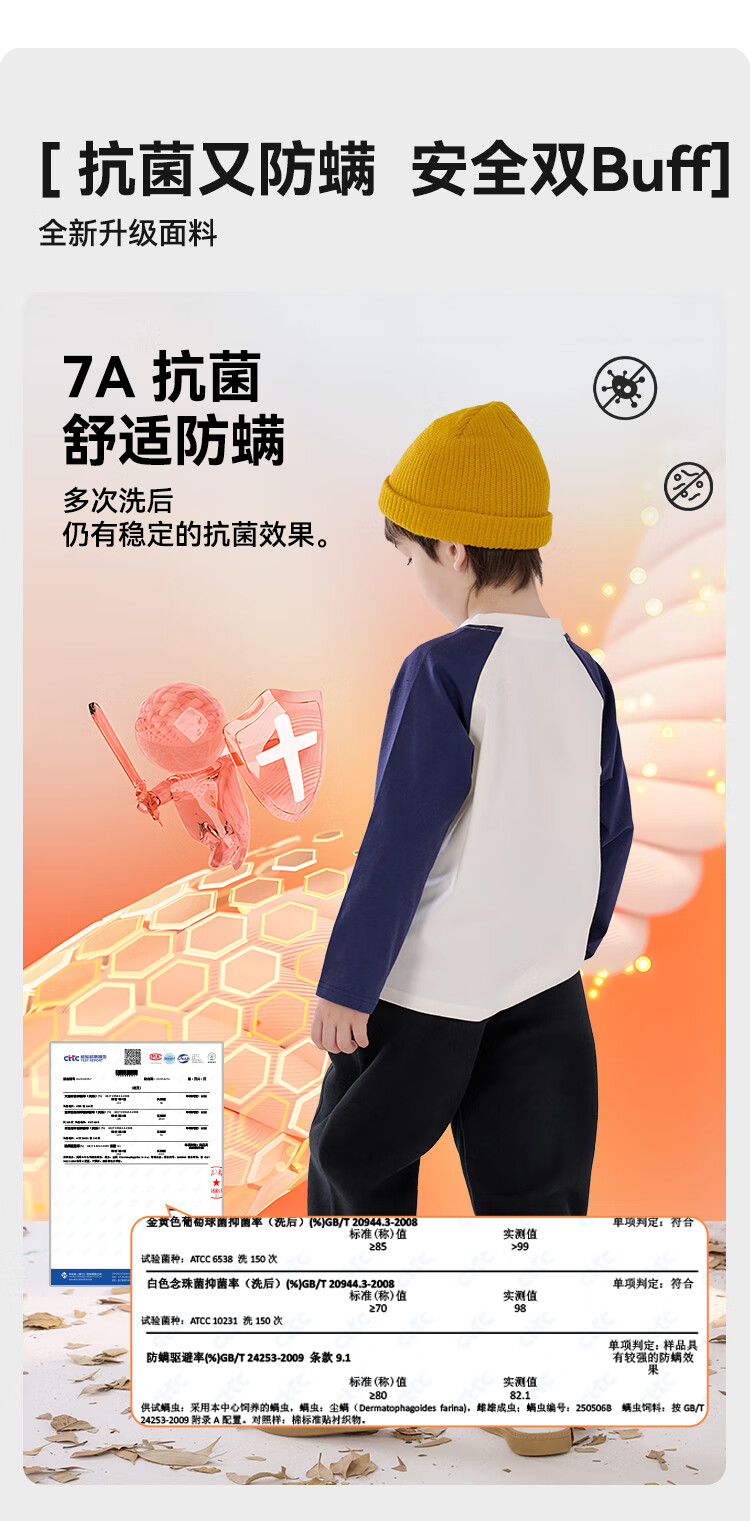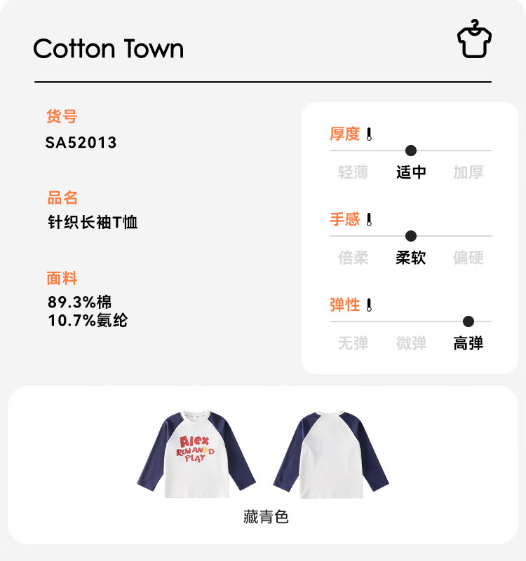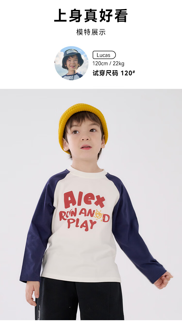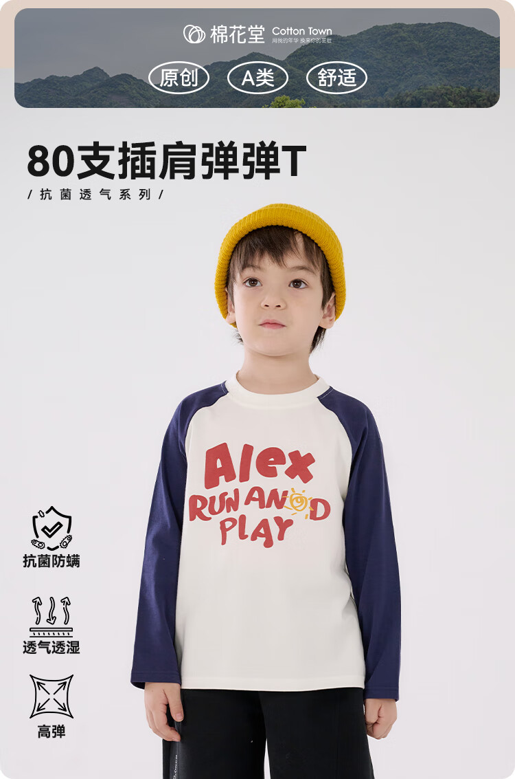 棉花堂(cottontown)【80支】棉花堂男童长袖T恤春秋抗菌秋季新款宝宝针织打底衫上衣 藏青色 100 100/56