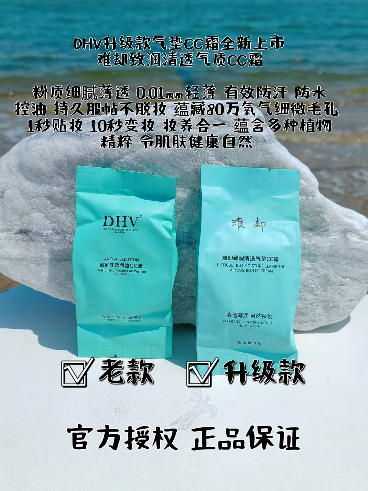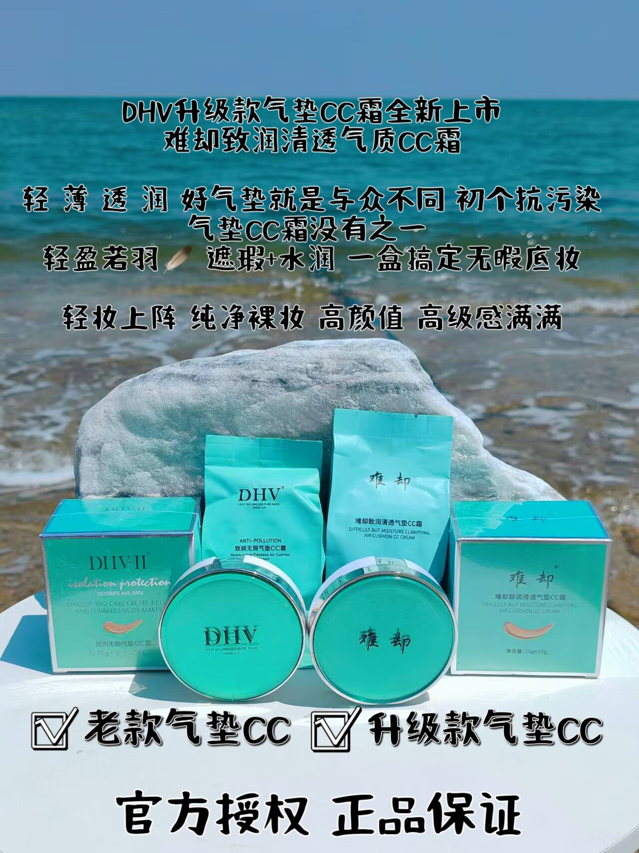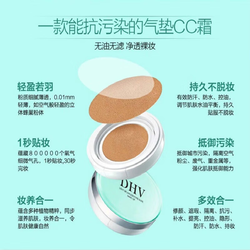 难却dhv气垫cc霜bb霜难却 保湿水润养肤遮瑕靓白防水防汗不卡粉不脱妆 (正装1个+替换芯1个)送水乳霜1盒