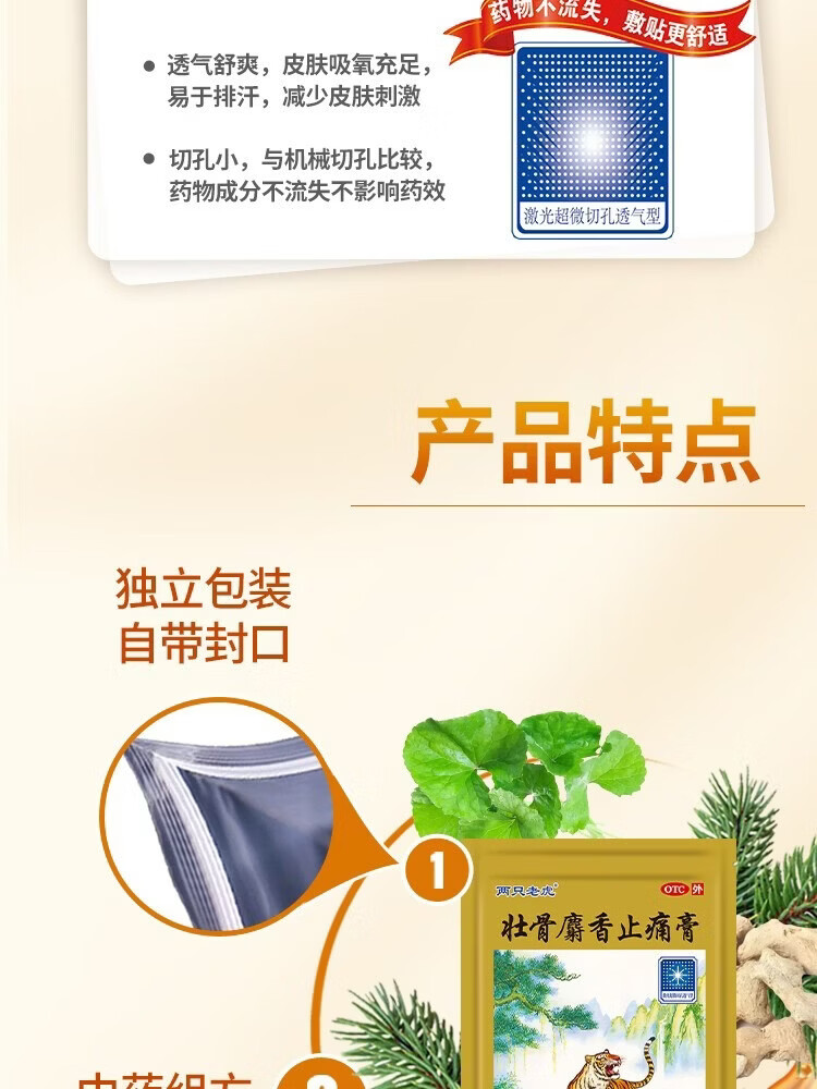 [两只老虎]壮骨麝香止痛膏 7cm*10cm*10贴 6袋装 7cm*10cm*10贴 祛风湿 活血止痛 用于风湿关节痛 肌肉痛 扭伤 60贴