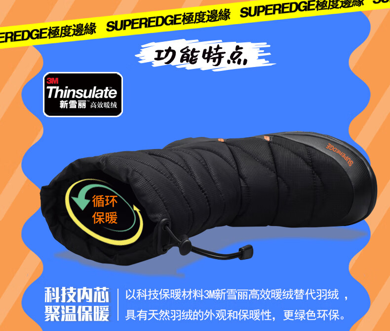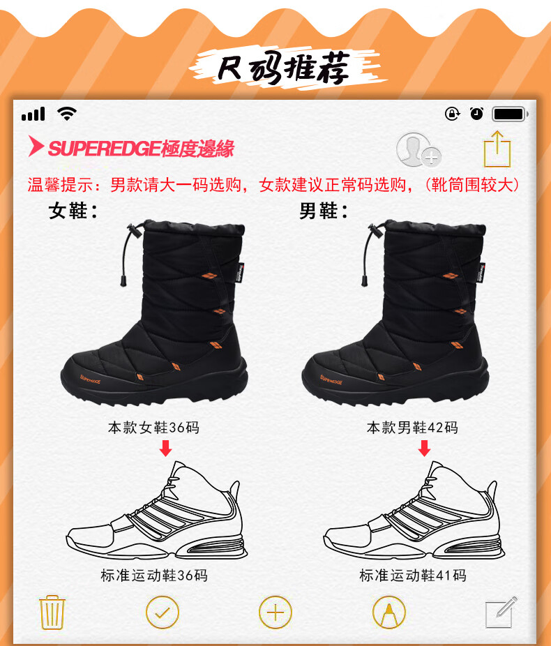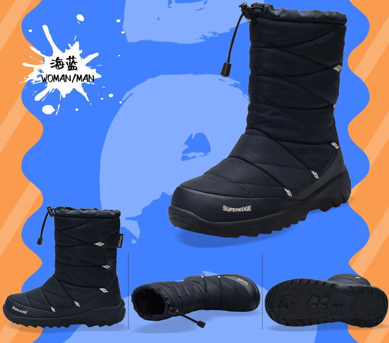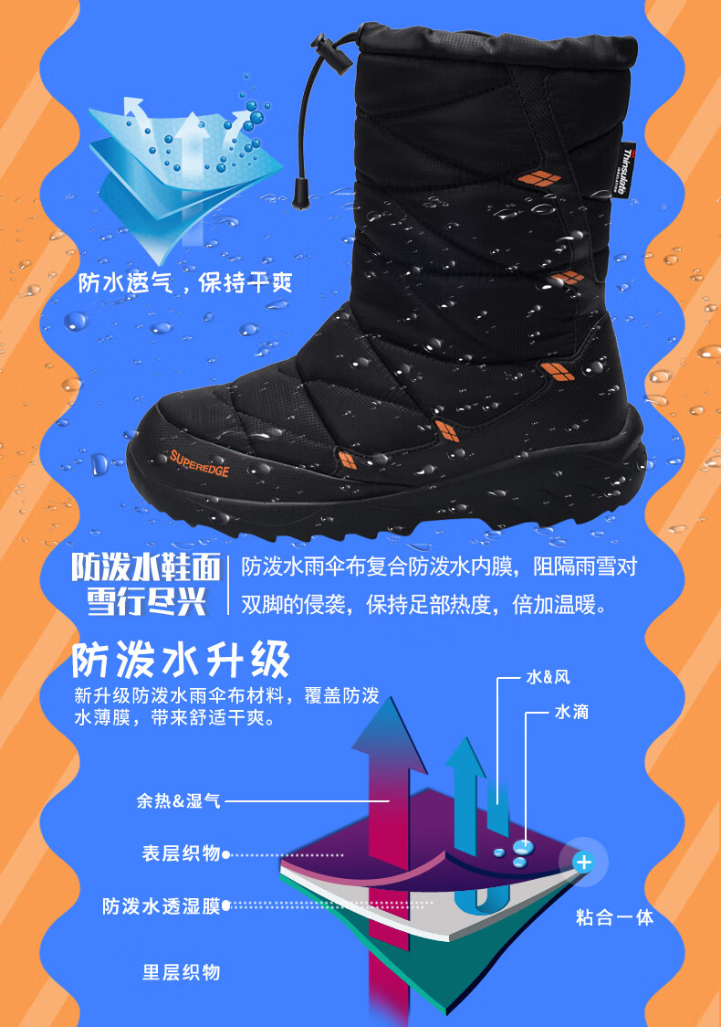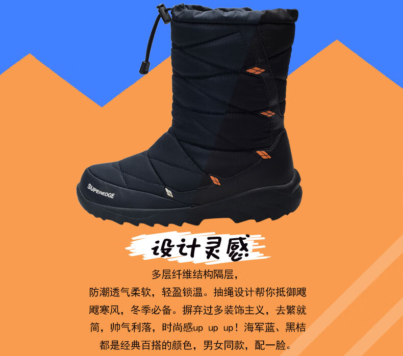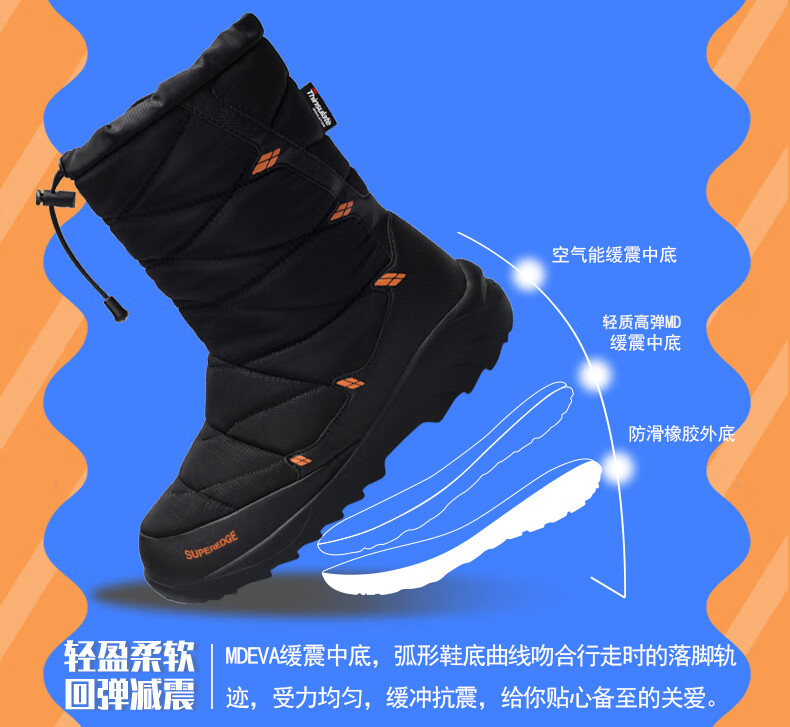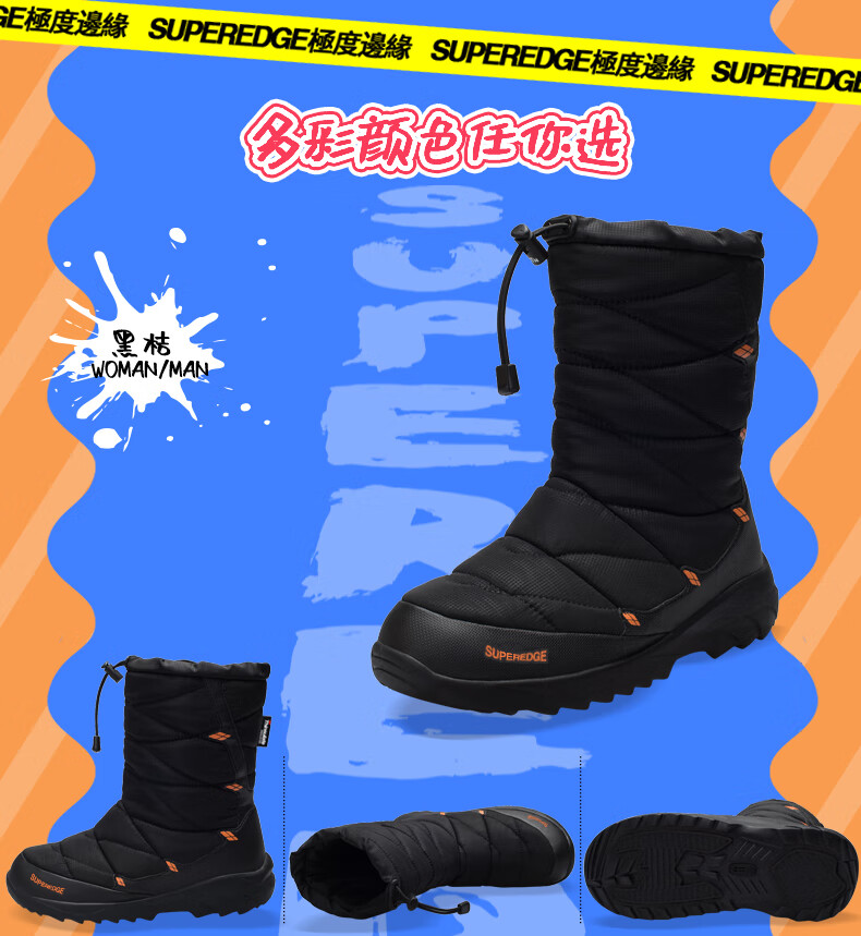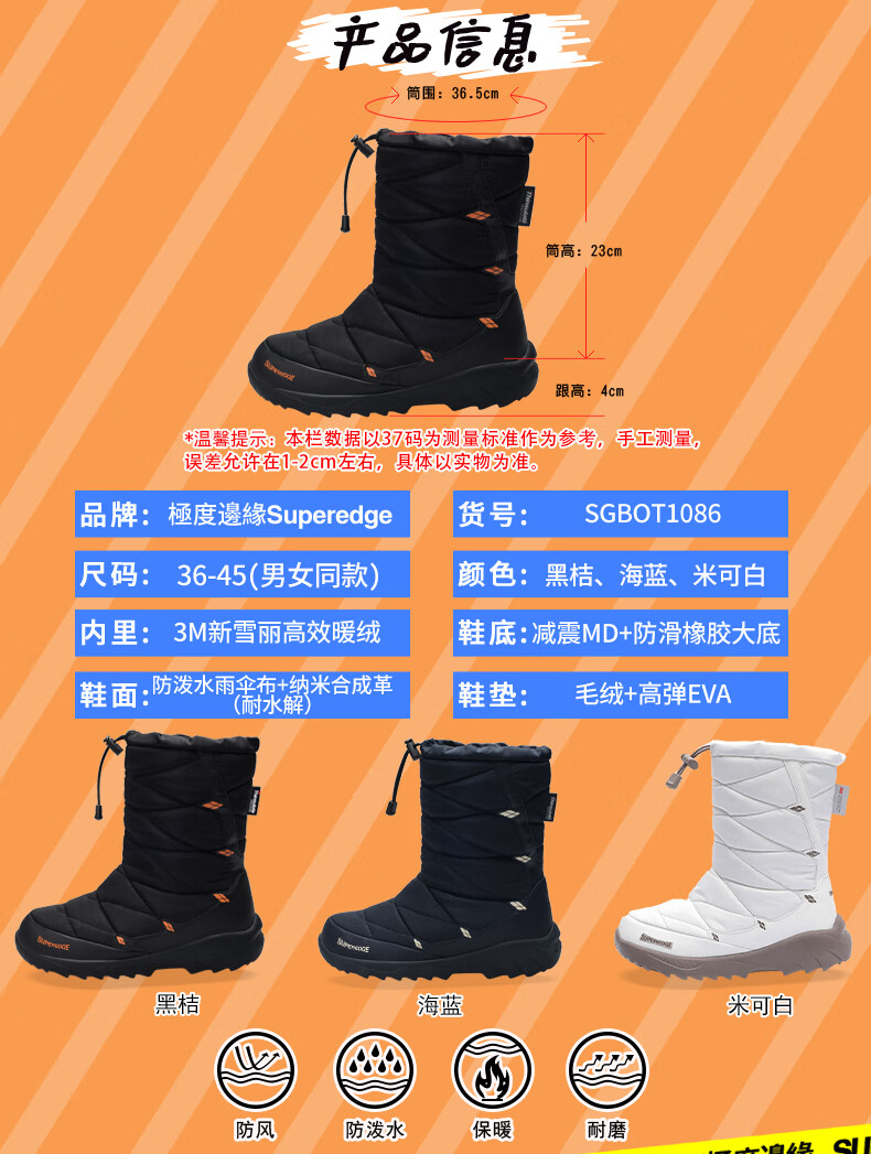 TNTN东北冬防水厚底防寒3M新雪丽哈尔滨雪乡保暖加绒男女雪地靴棉鞋子 黑桔(SUPEREDGE鞋头带标) 40 女正常男偏小
