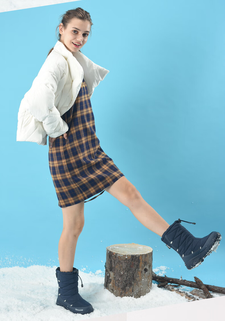红蜻蜓短靴女妈妈加绒保暖靴子女粗跟牛皮靴女中跟女棉靴 WTC434421C