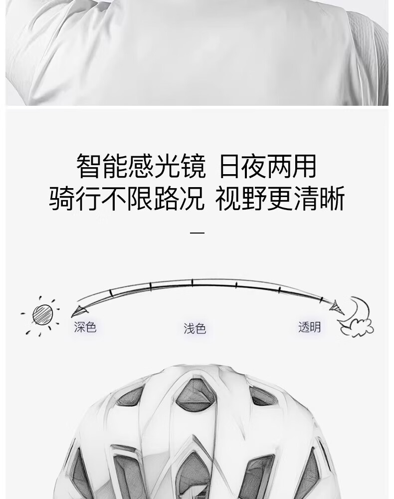 迅霆自行车头盔骑行山地公路车通勤安全帽一体成型夏季轻量透气风镜款 经典黑【磁吸卡扣+ 抑菌内衬 】智能感光变色镜 M【55-59cm】
