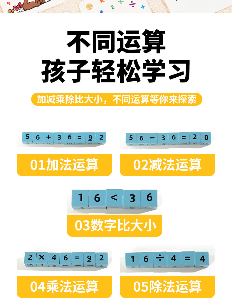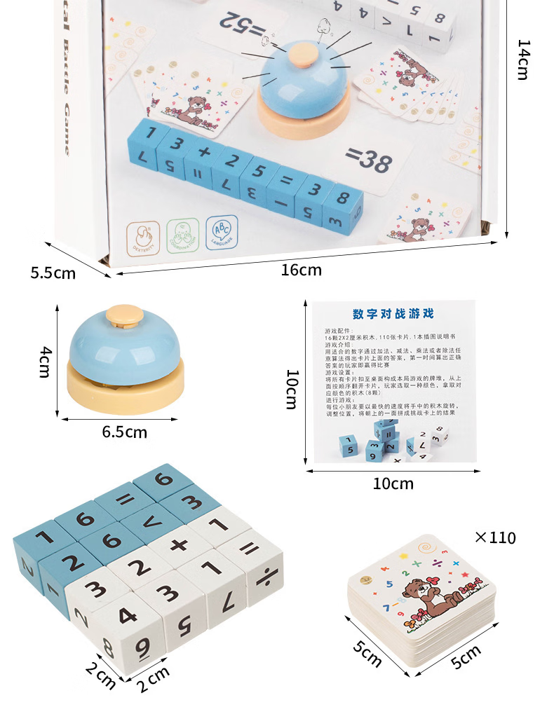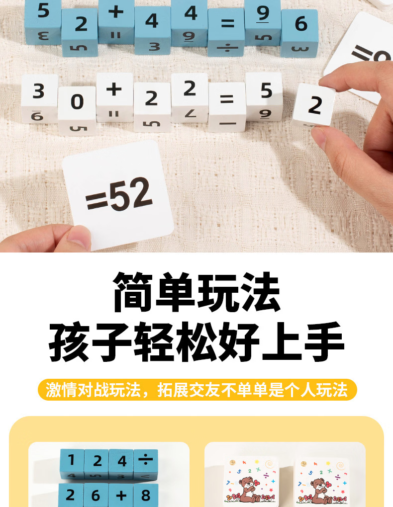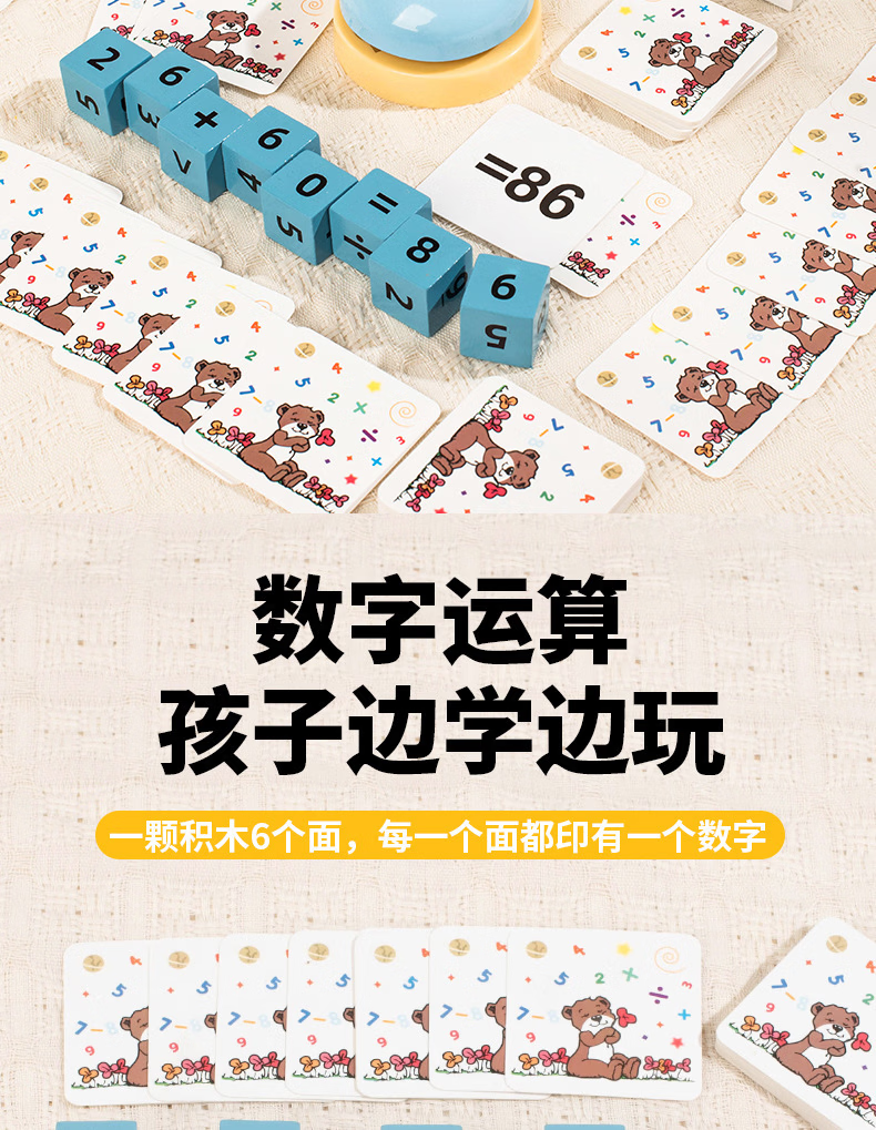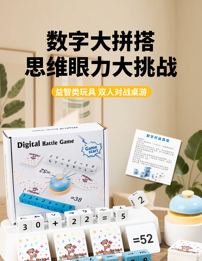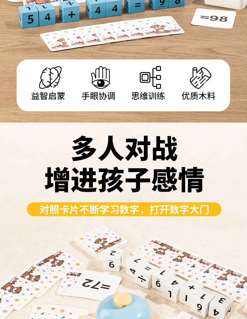 奇优宝木制数字运算积木加减乘除运算玩具亲子互动对战桌游早教益智玩具 数字运算对战积木