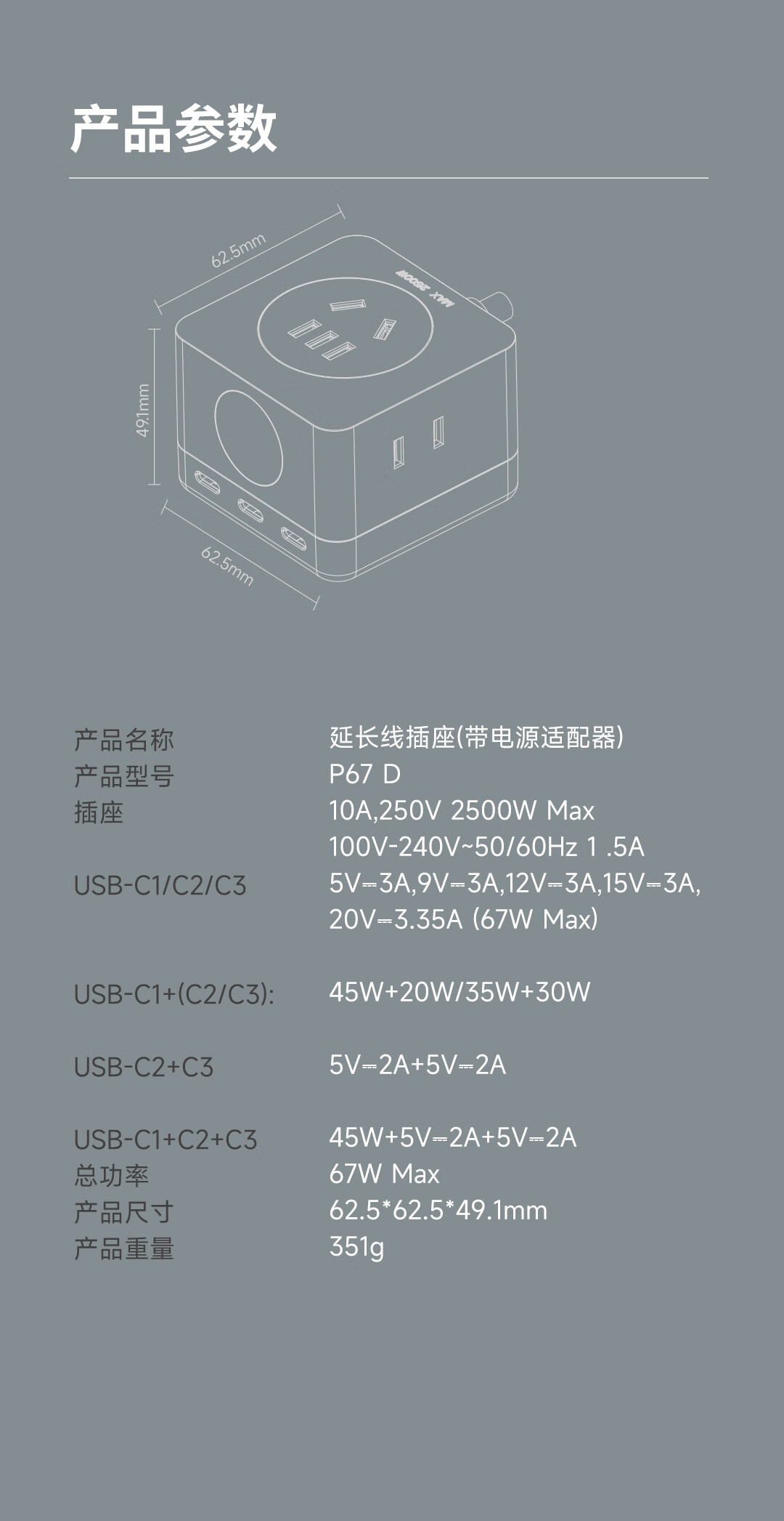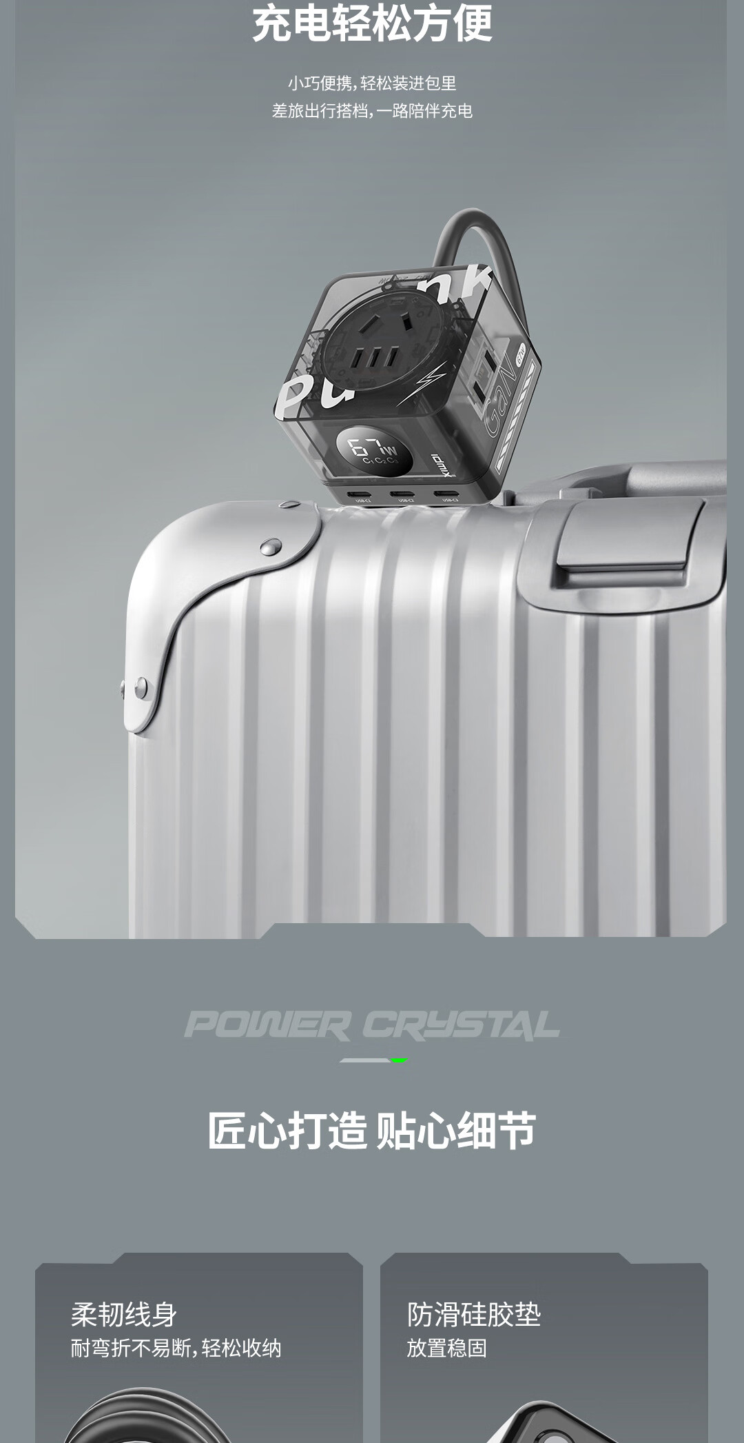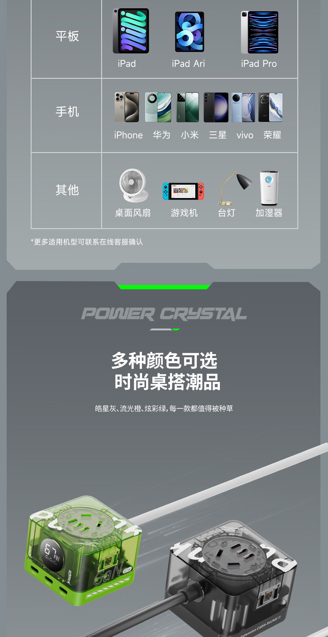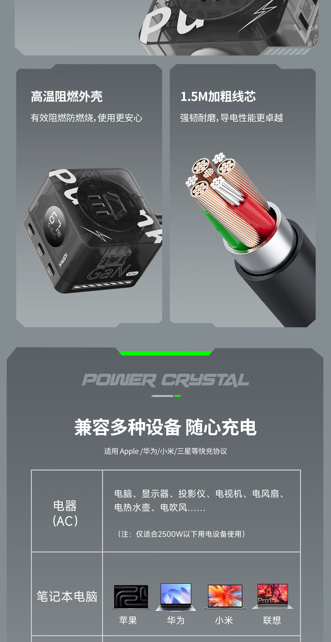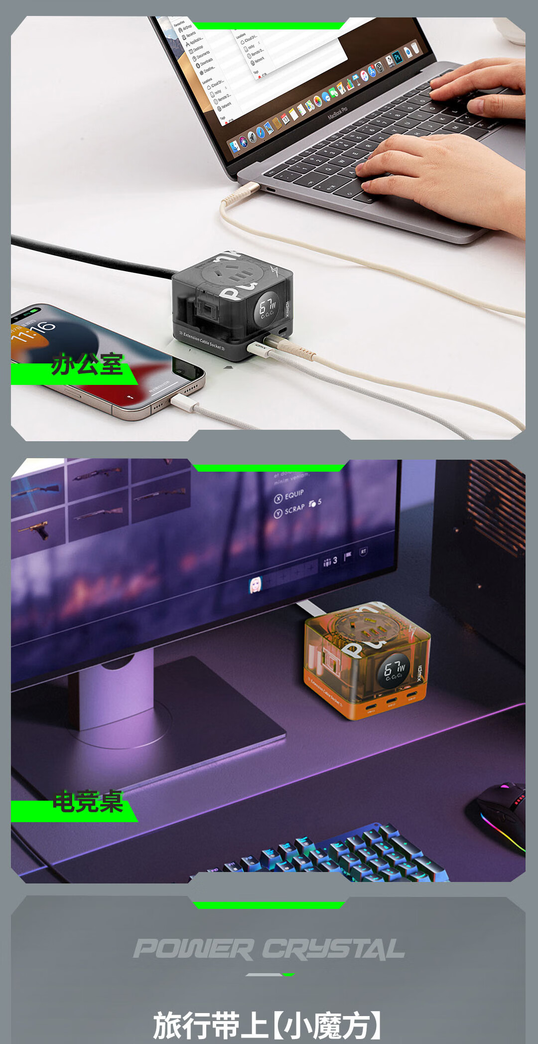 IDMIX67W氮化镓桌面充电器自带线 多口快充头排插 MacBook Pro联想笔记本平板手机通用 【透明绿】PD67W多口快充桌面充电器