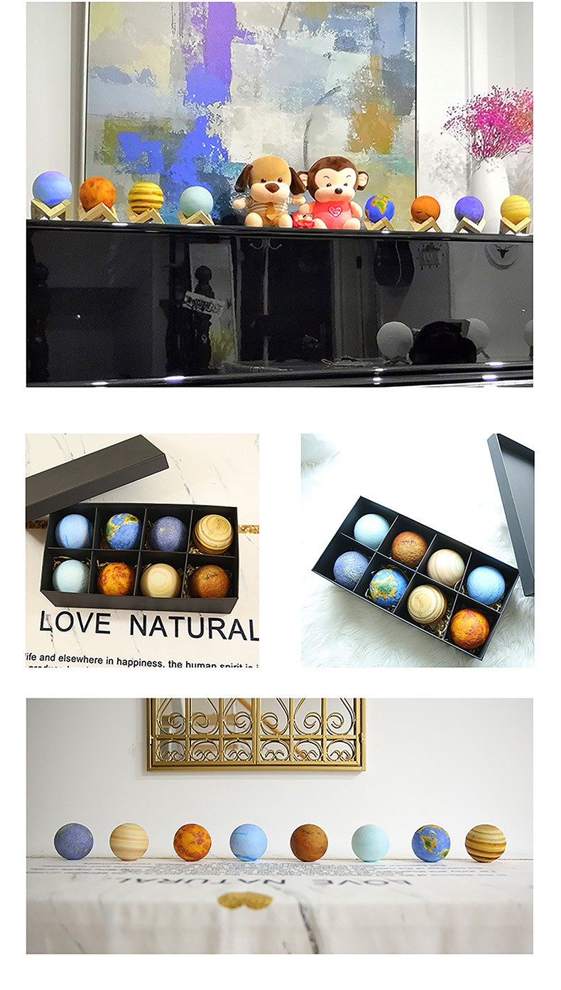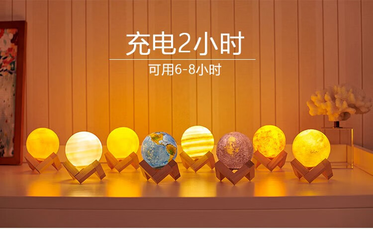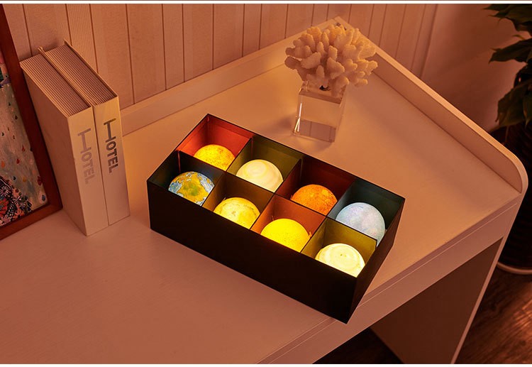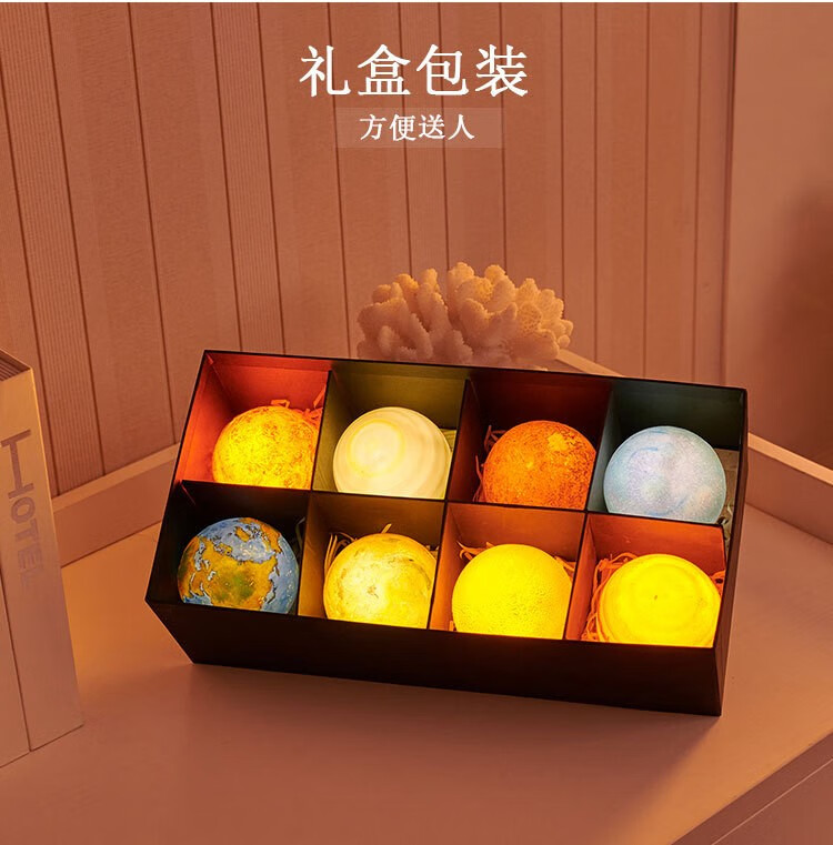 映棠 星球模型小夜灯摆件太阳系行星桌面装饰送男生女孩儿童生日礼物 八大行星灯礼盒+实木支架