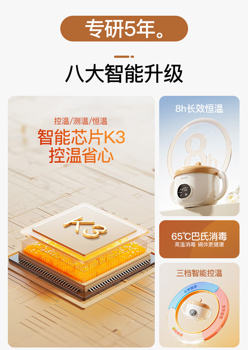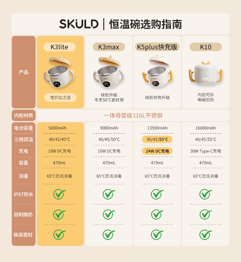 SKULD 时蔻宝宝恒温碗婴儿保温碗儿童餐具辅食碗充电智能免注水316L不锈钢 恒温3-5顿饭+底盘加热 K3lite