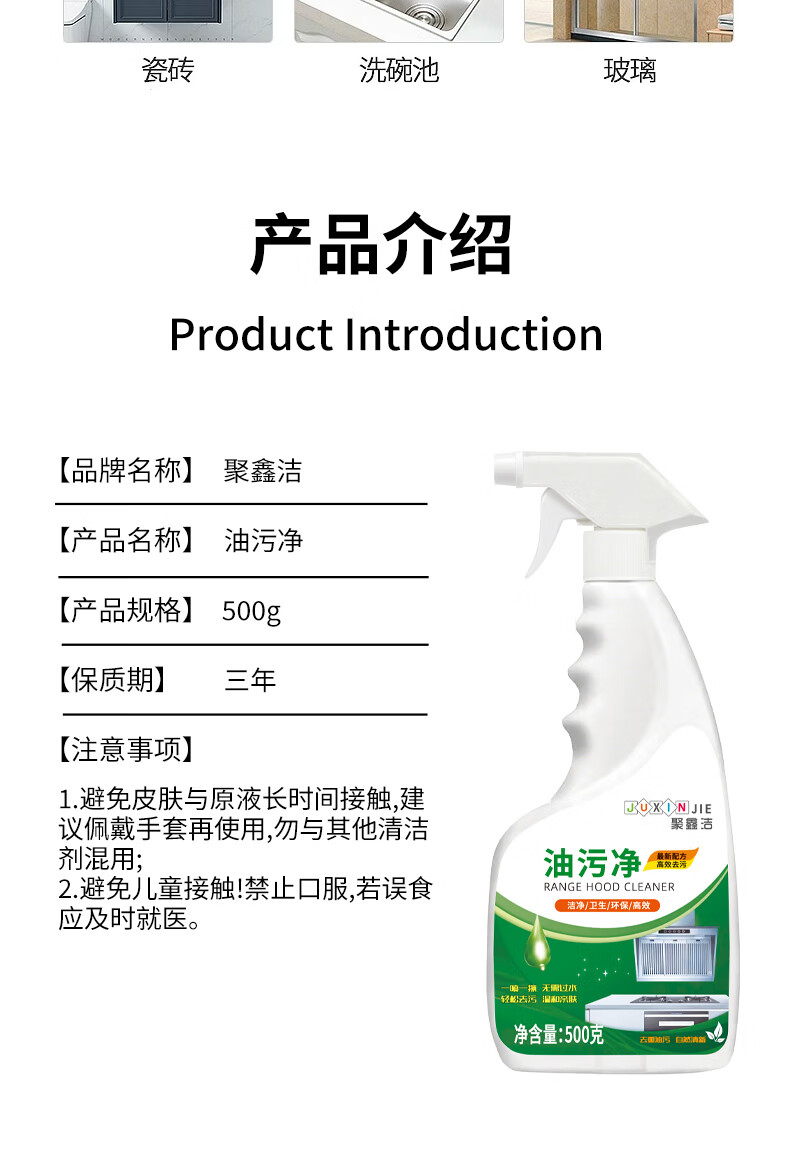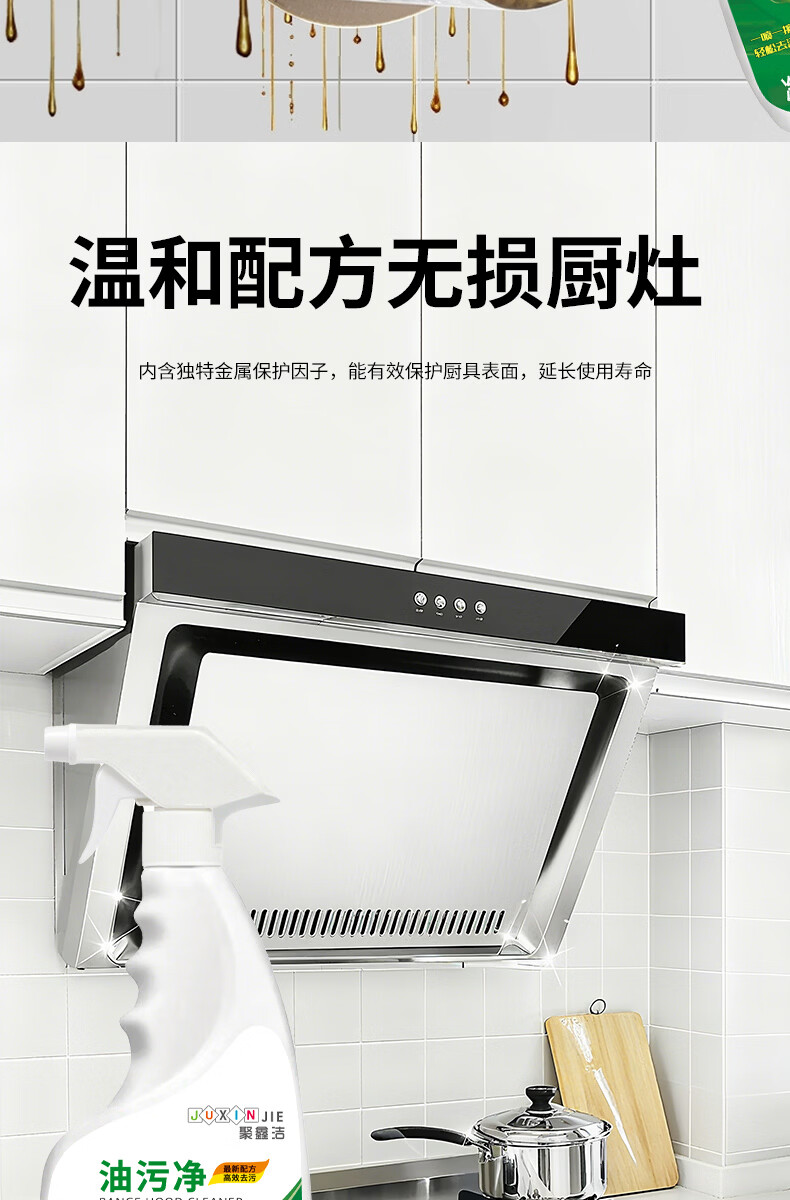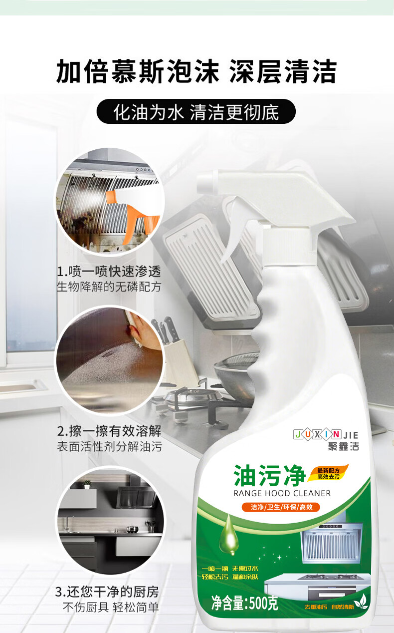 聚鑫洁厨房油污清洁剂去重油强力除油污去油渍清洁剂泡沫强力油烟 5瓶500g泡沫油污清洁剂(含1泡沫泵头)