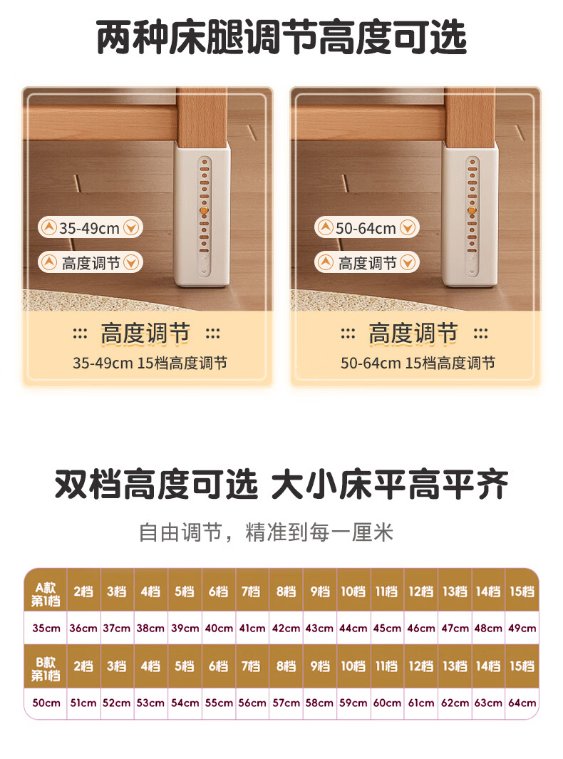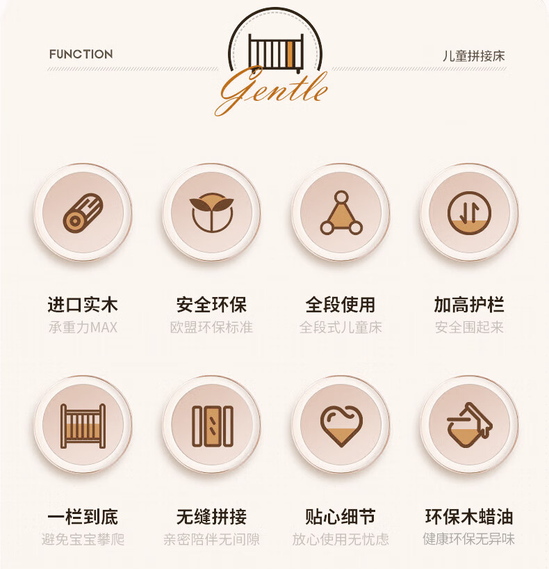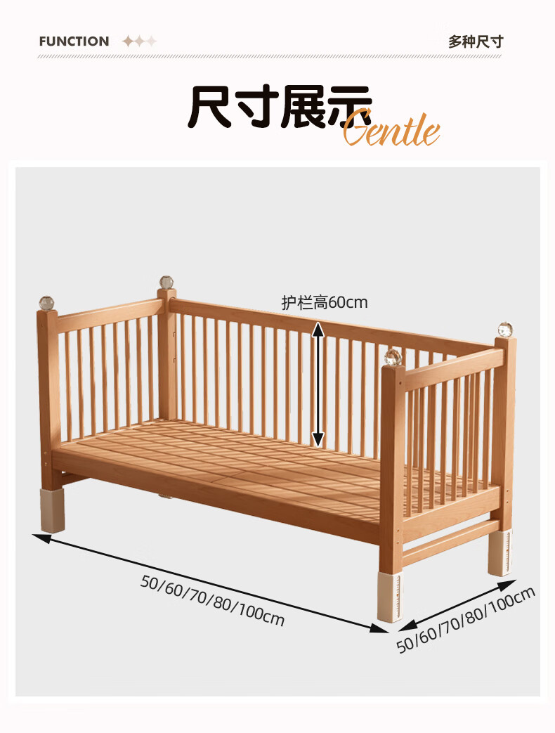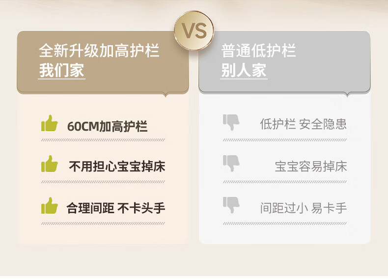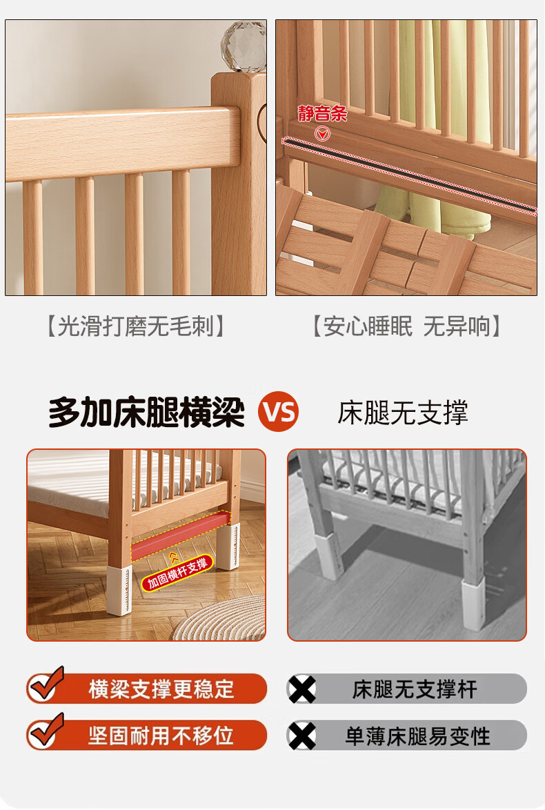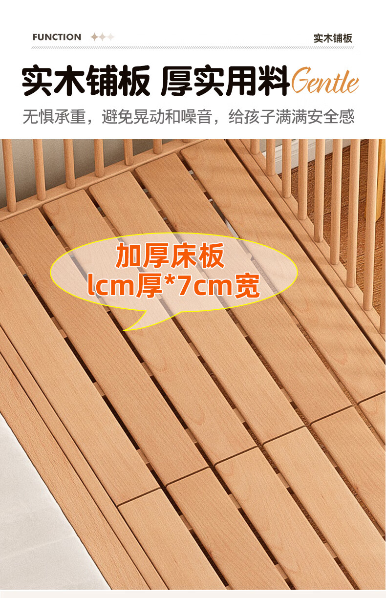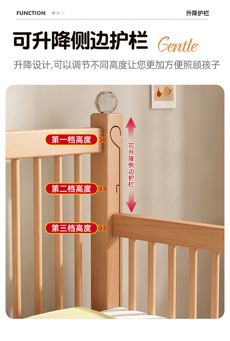 贝幸福 BAYLUCK可升降榉木拼接床实木儿童床婴儿床加宽拼接大床小孩床边床拼接床 侧升尾门款+10cm空气纤维垫+床围 200*100cm【可升降】