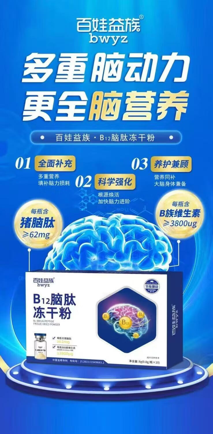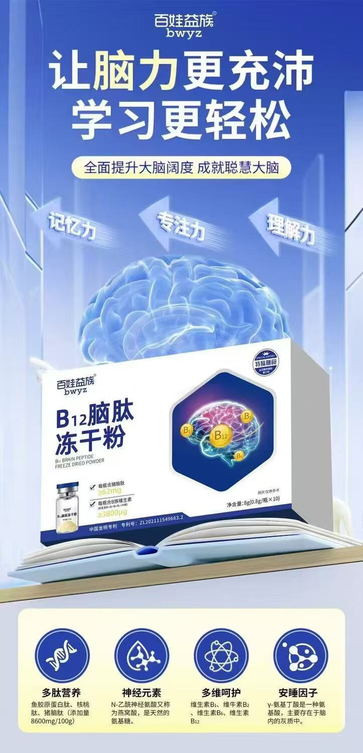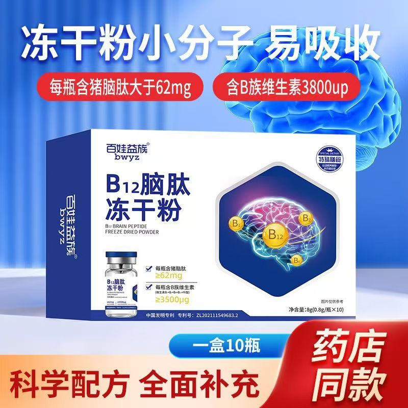 麦聚优B12脑肽营养品多肽冻干粉增强免疫力提神补脑适合儿童老人 买3送2 发5盒 全面补充 10瓶*5盒