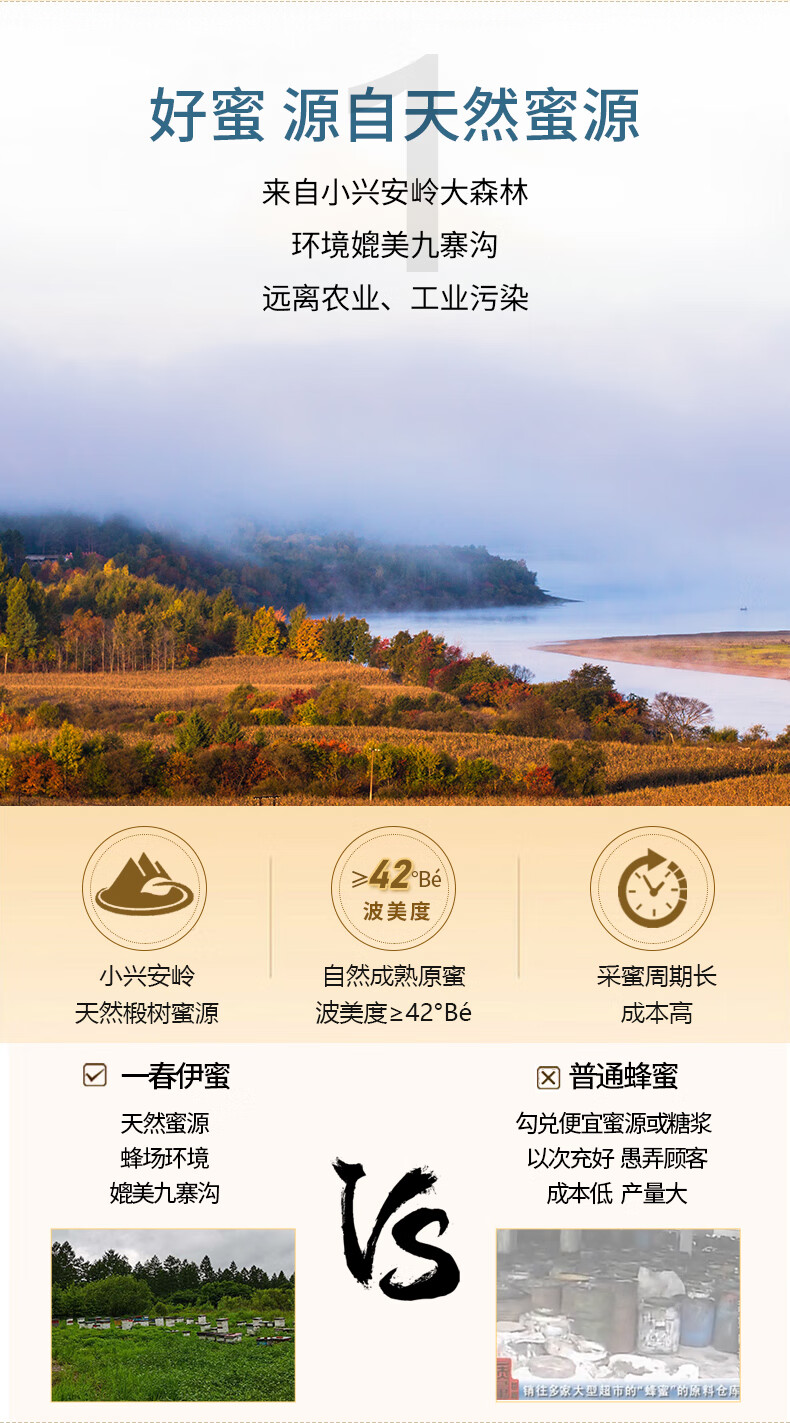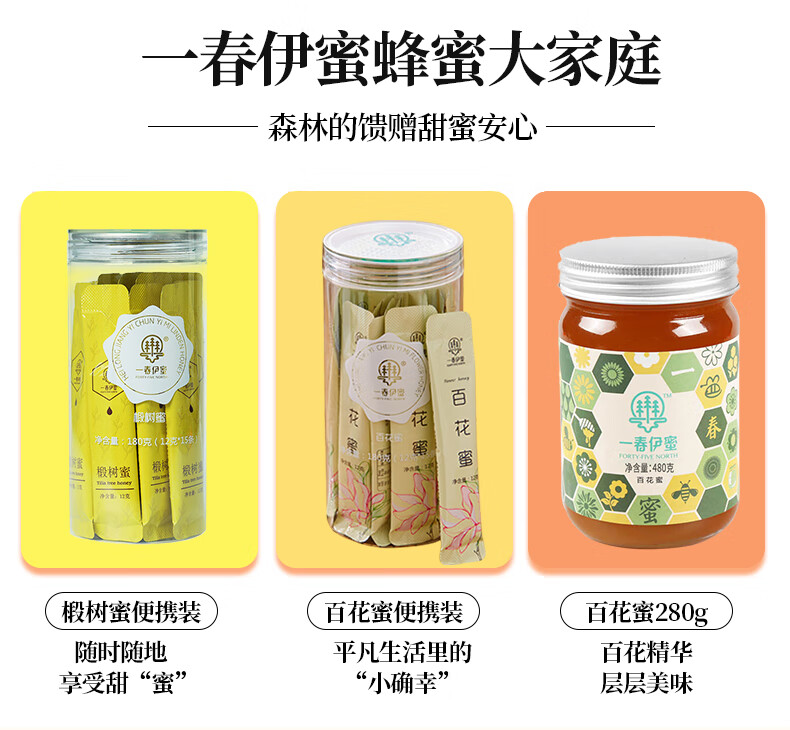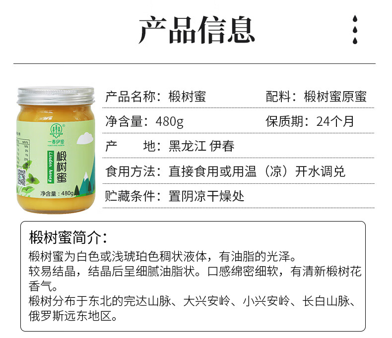 一春伊蜜 FORTY-FIVE NORTH一春伊蜜 椴树蜜国标 480g蜂蜜 冲调水饮 调味搭配 椴树蜜国标480g*1瓶