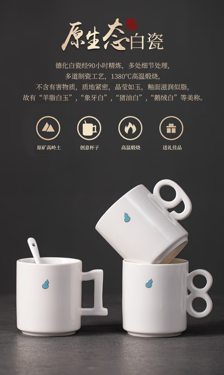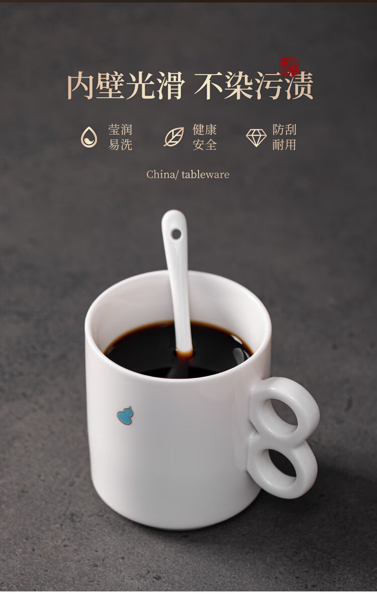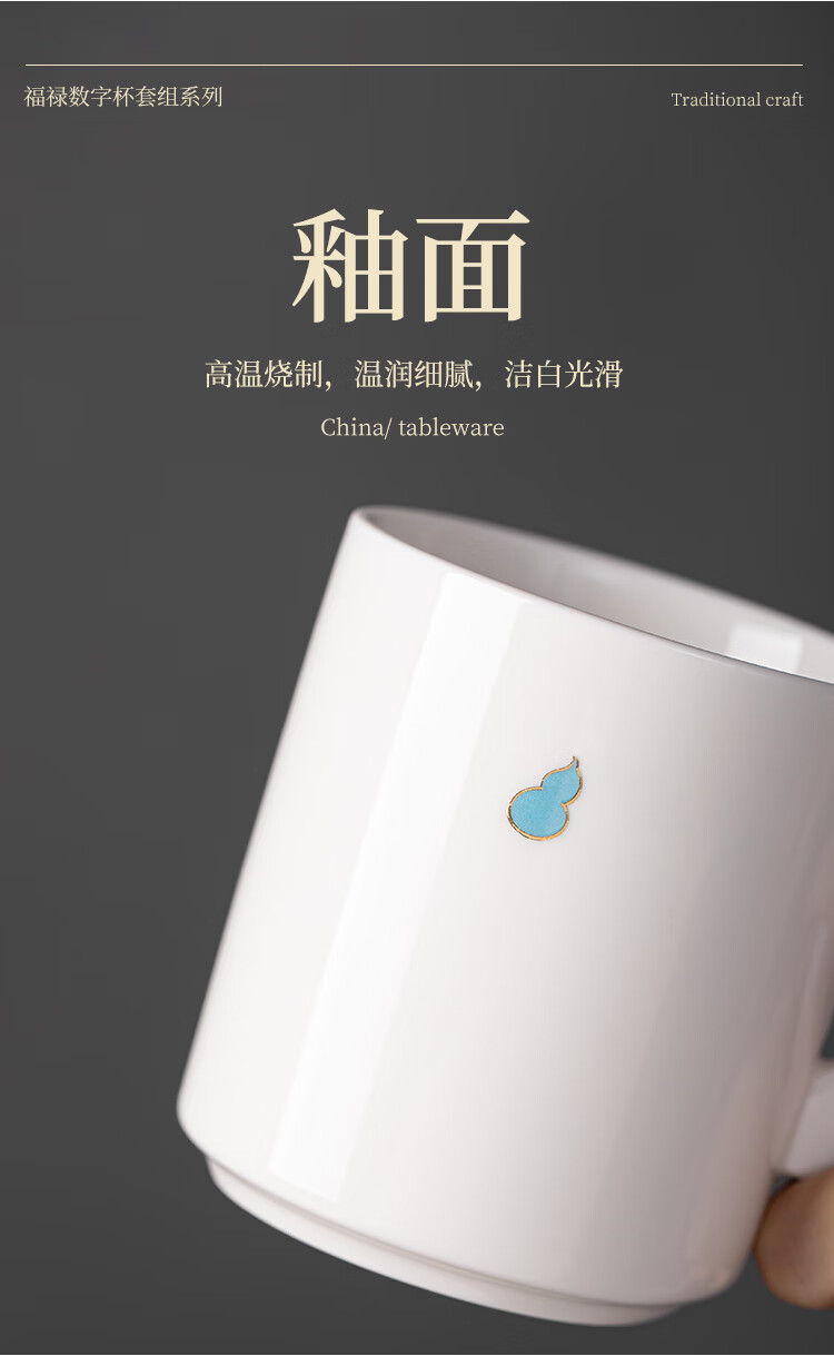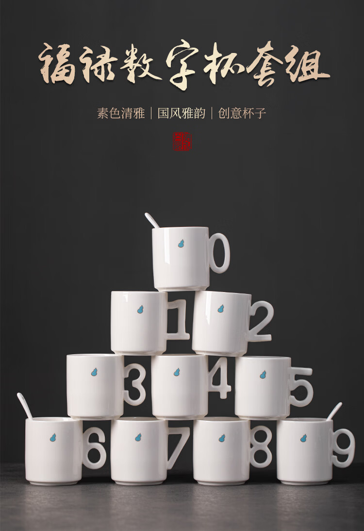 造器(ZEROKY CLAN)德化咖啡杯套装家用陶瓷数字马克杯办公室喝水杯子轻奢伴手礼盒装 数字杯套组礼盒装(福禄蓝)