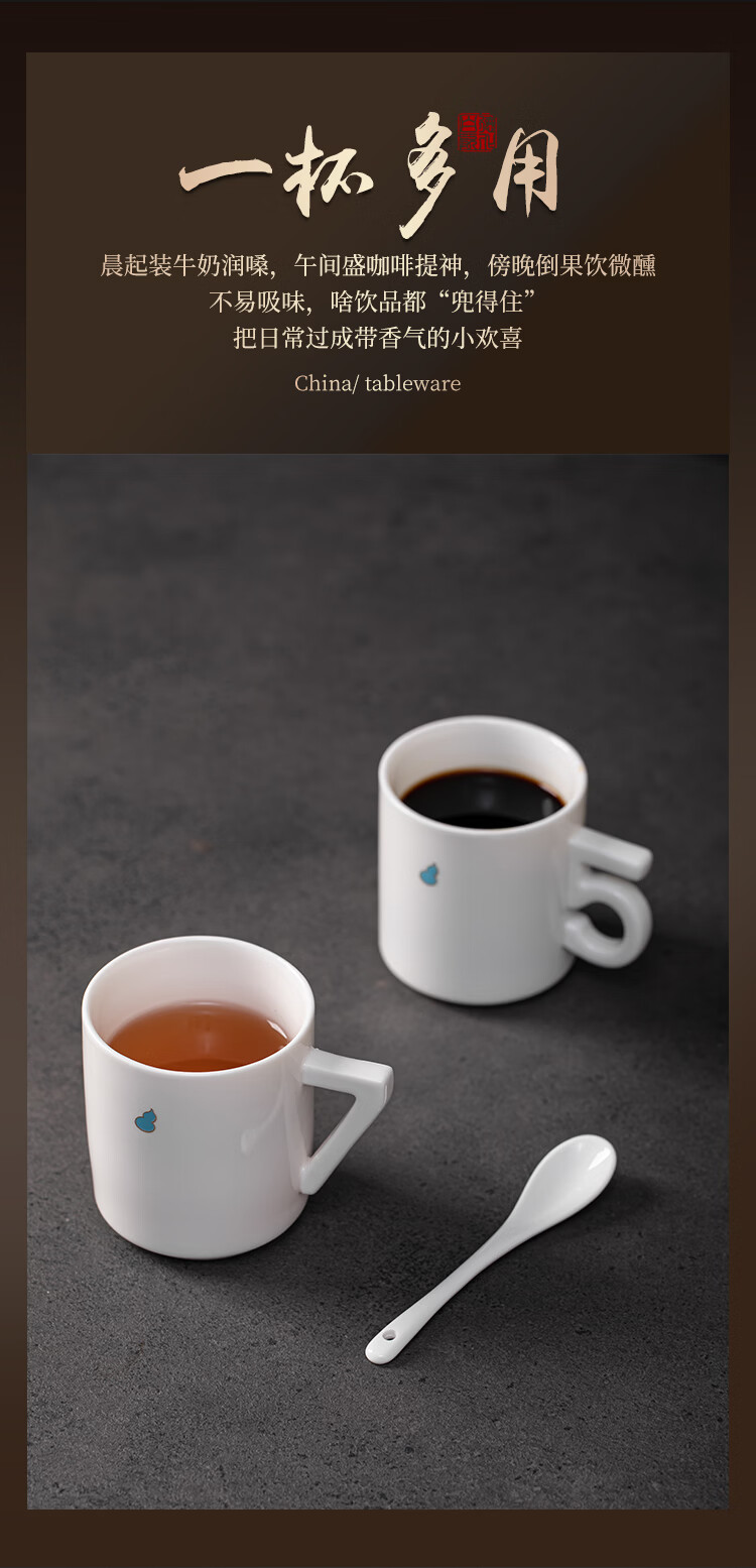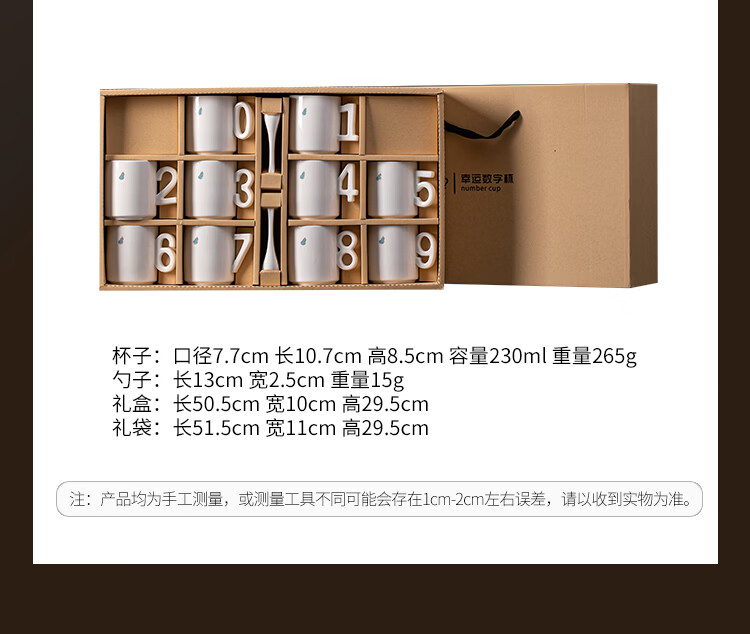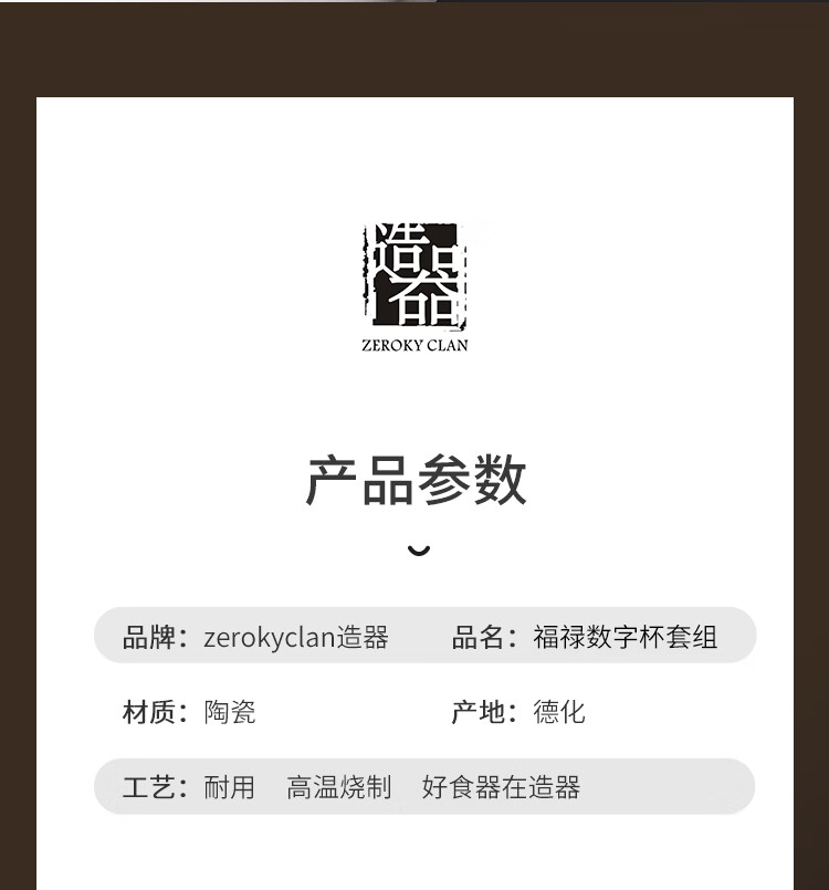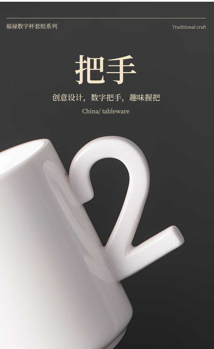 造器(ZEROKY CLAN)德化咖啡杯套装家用陶瓷数字马克杯办公室喝水杯子轻奢伴手礼盒装 数字杯套组礼盒装(福禄蓝)