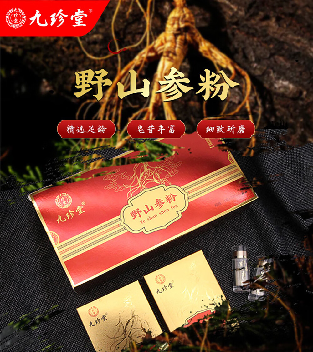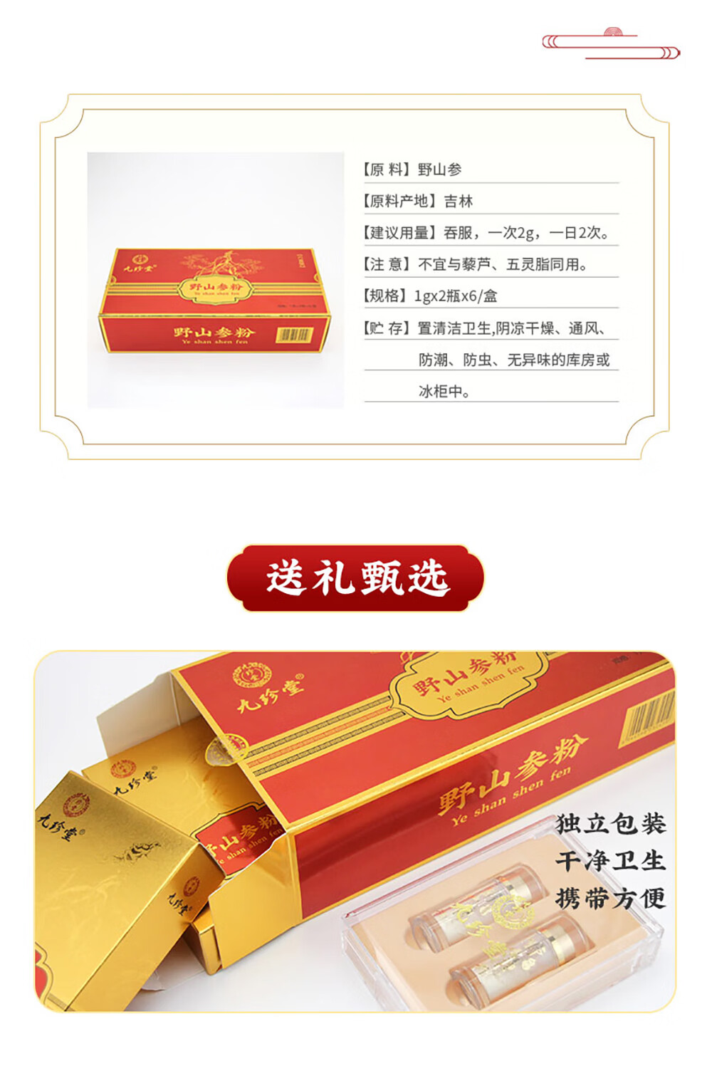 九珍堂吉林长白山野山参粉15年林下野山参磨粉滋补品送长辈春节年货送礼 长白山野山参粉礼盒 1g*12瓶 春节年货送礼