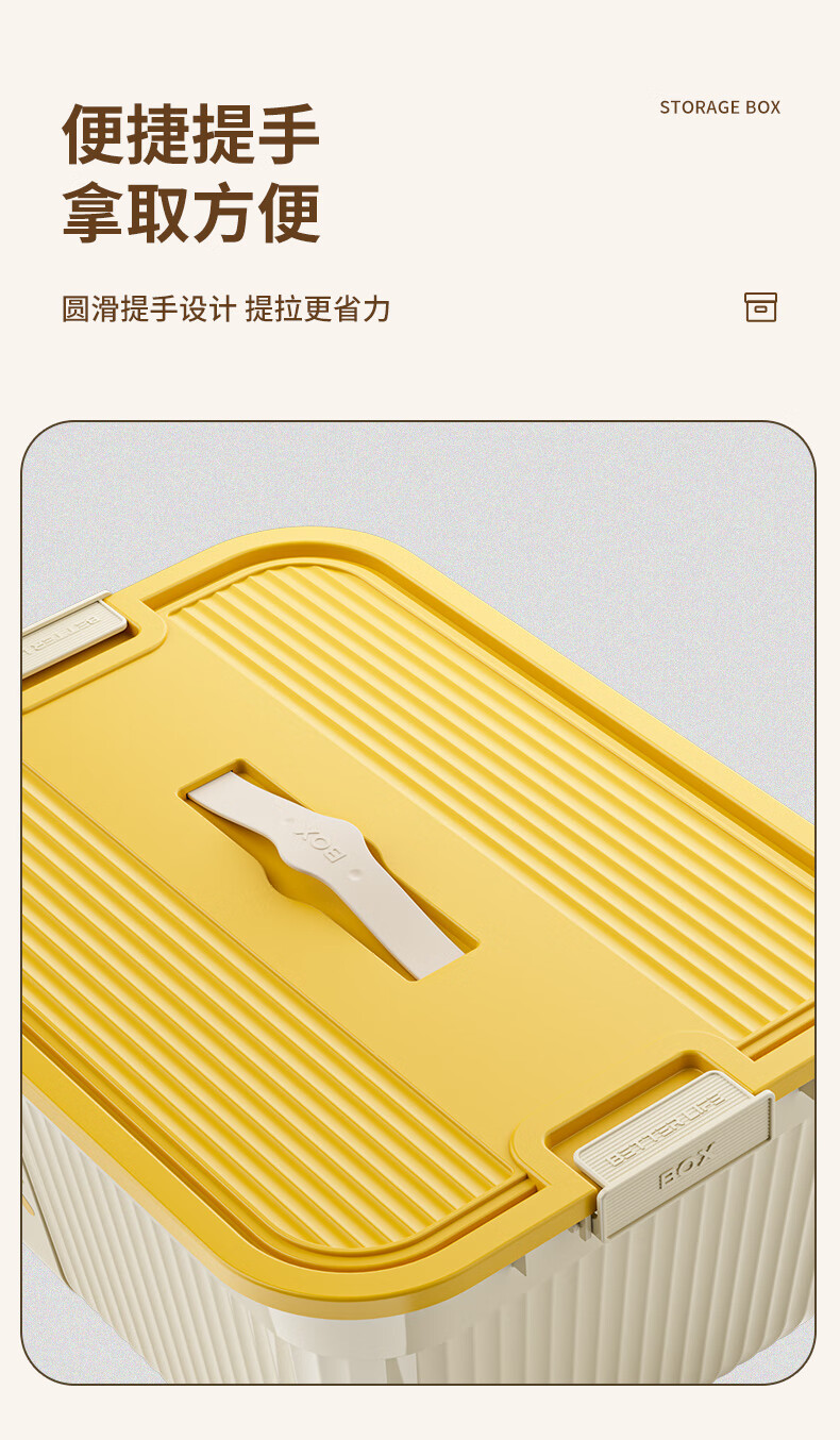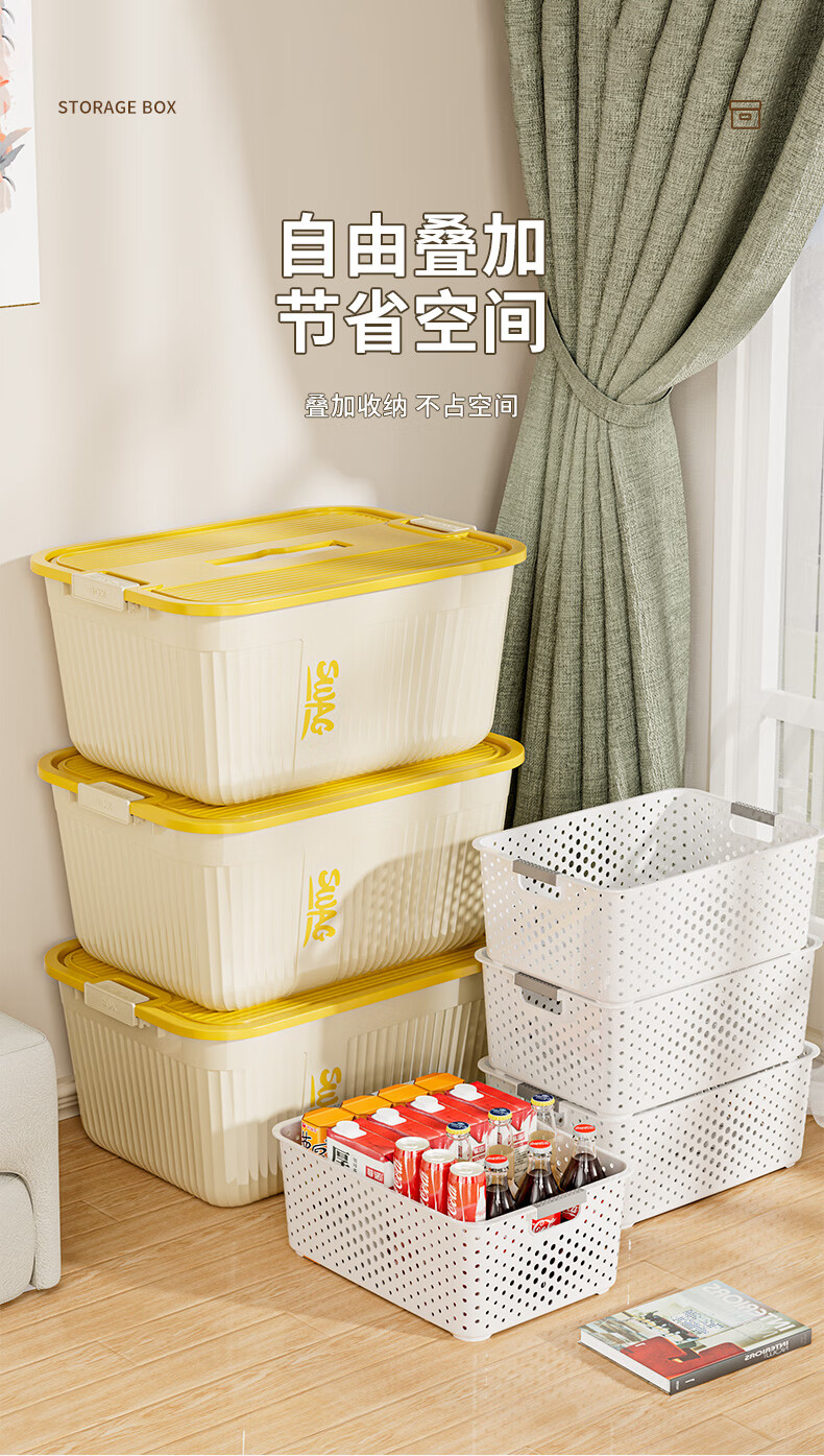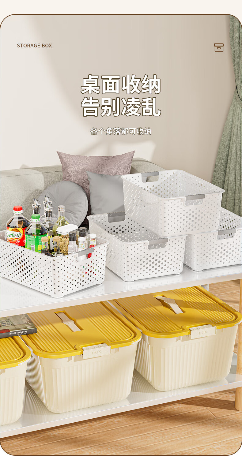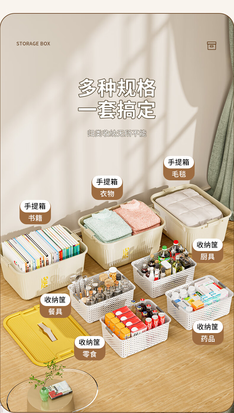稻草熊收纳篮家用带盖奶油风手提收纳箱玩具零食收纳杂物整理箱组合装 象牙白收纳筐3个