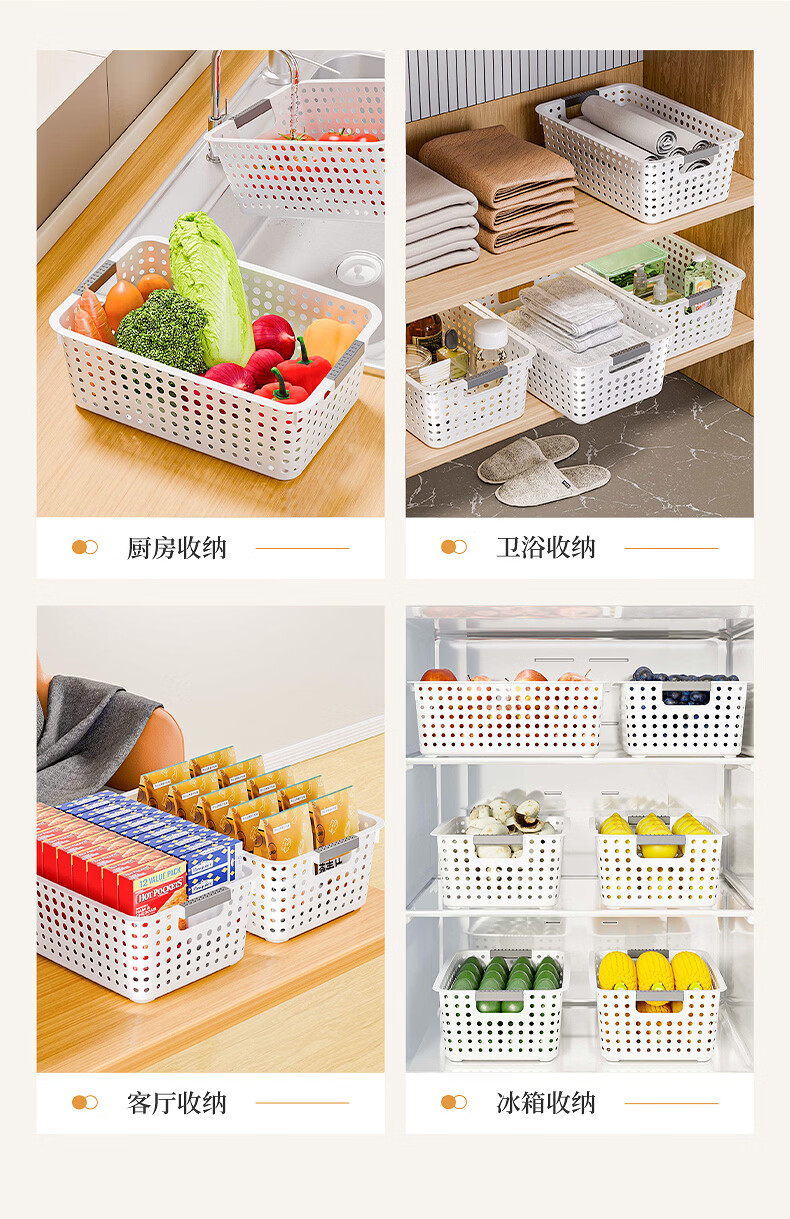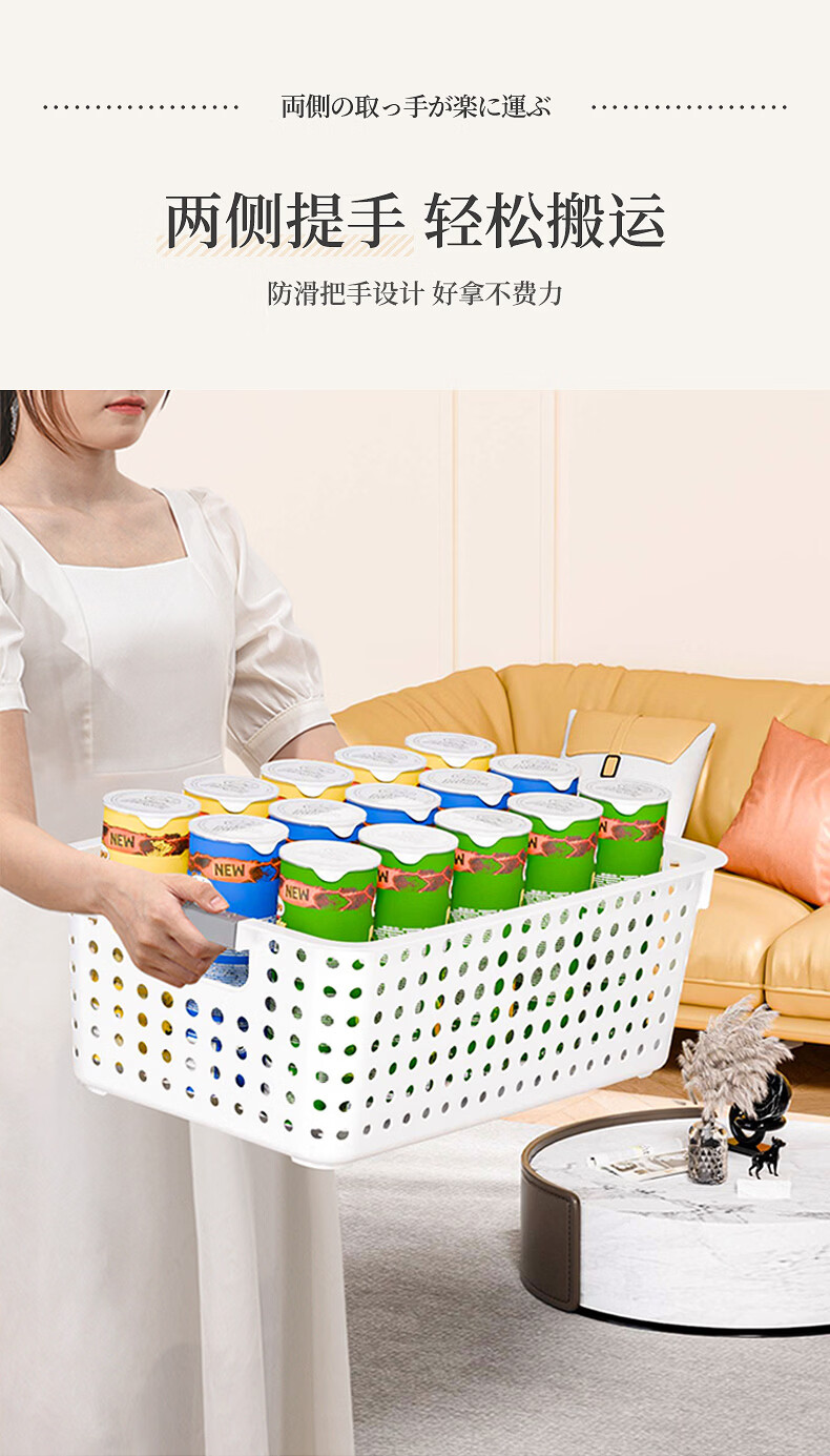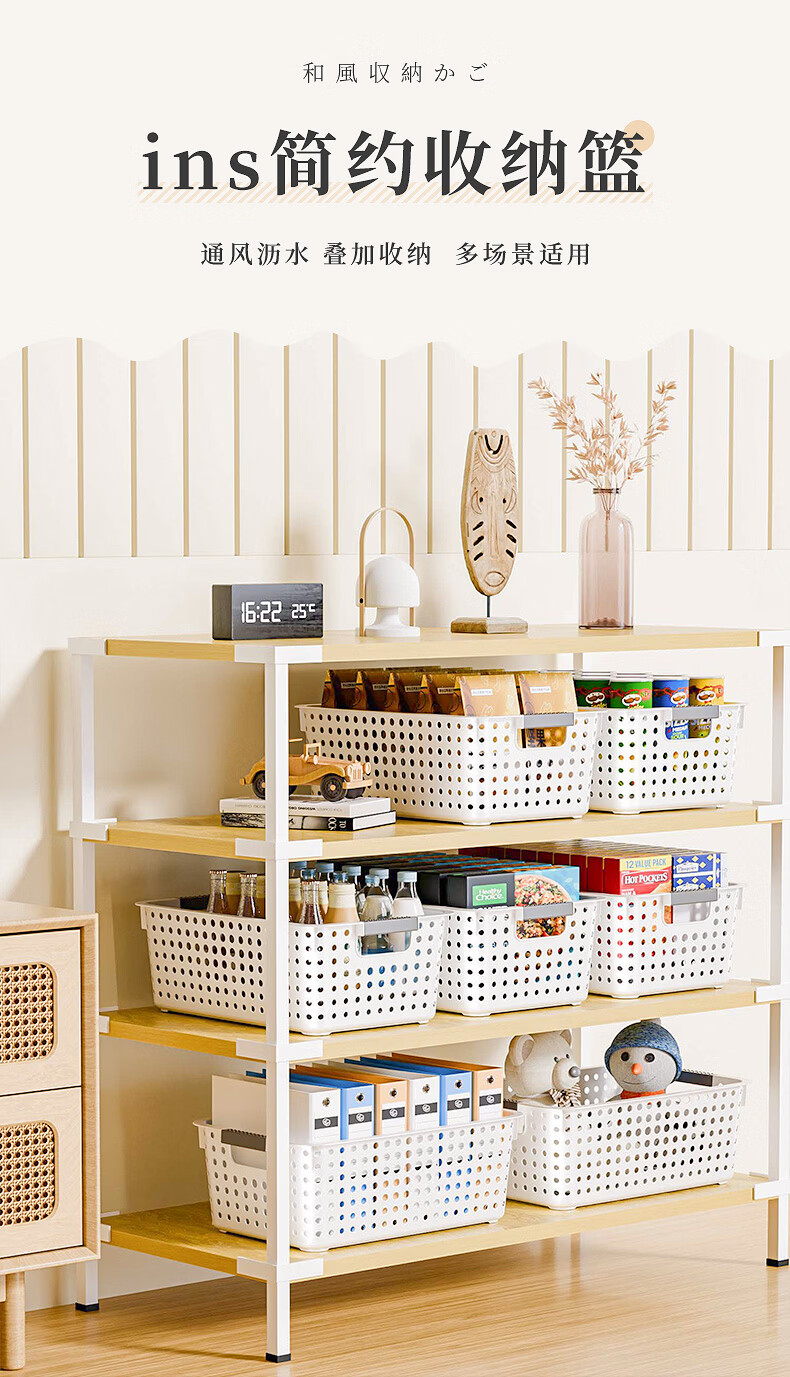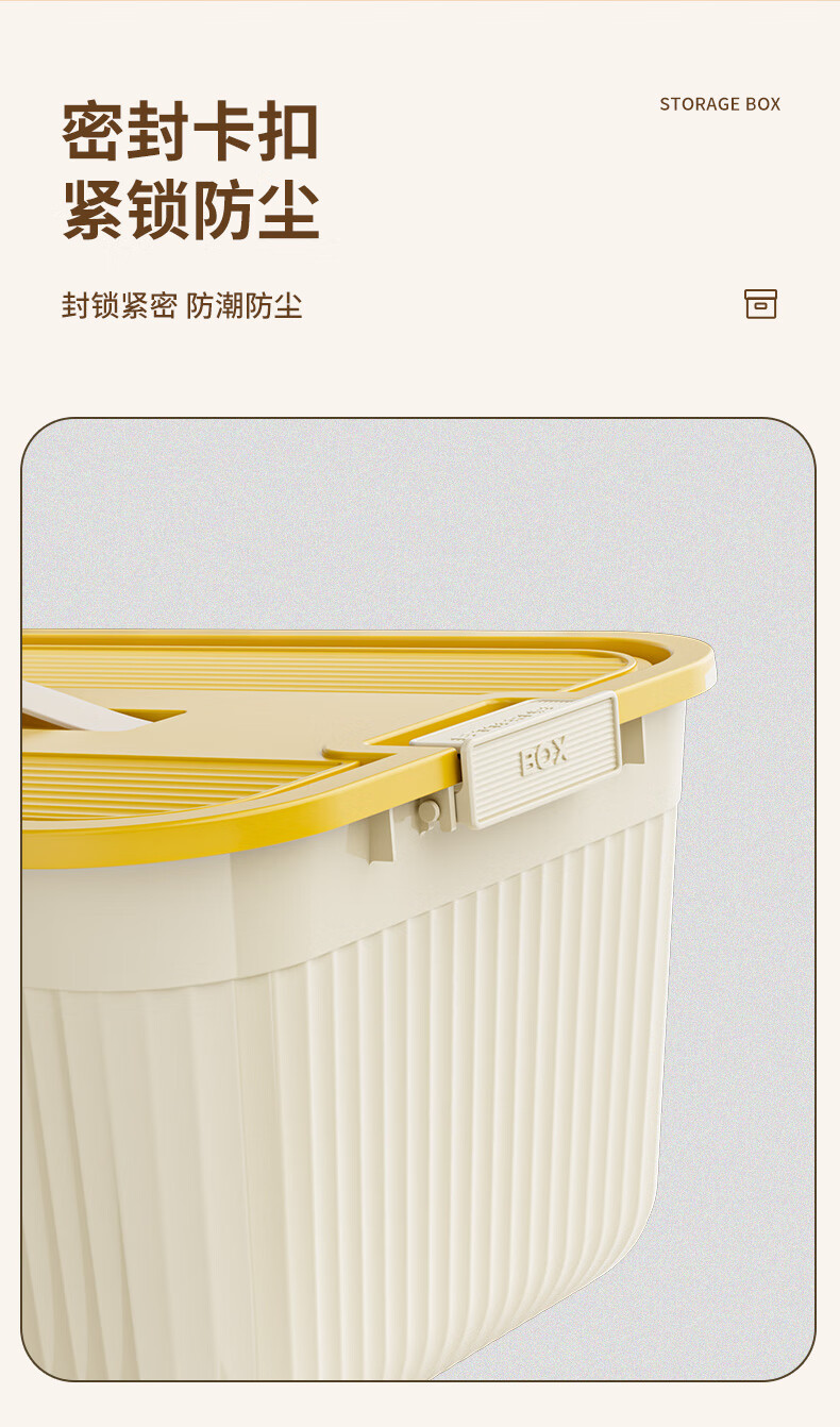稻草熊收纳篮家用带盖奶油风手提收纳箱玩具零食收纳杂物整理箱组合装 象牙白收纳筐3个