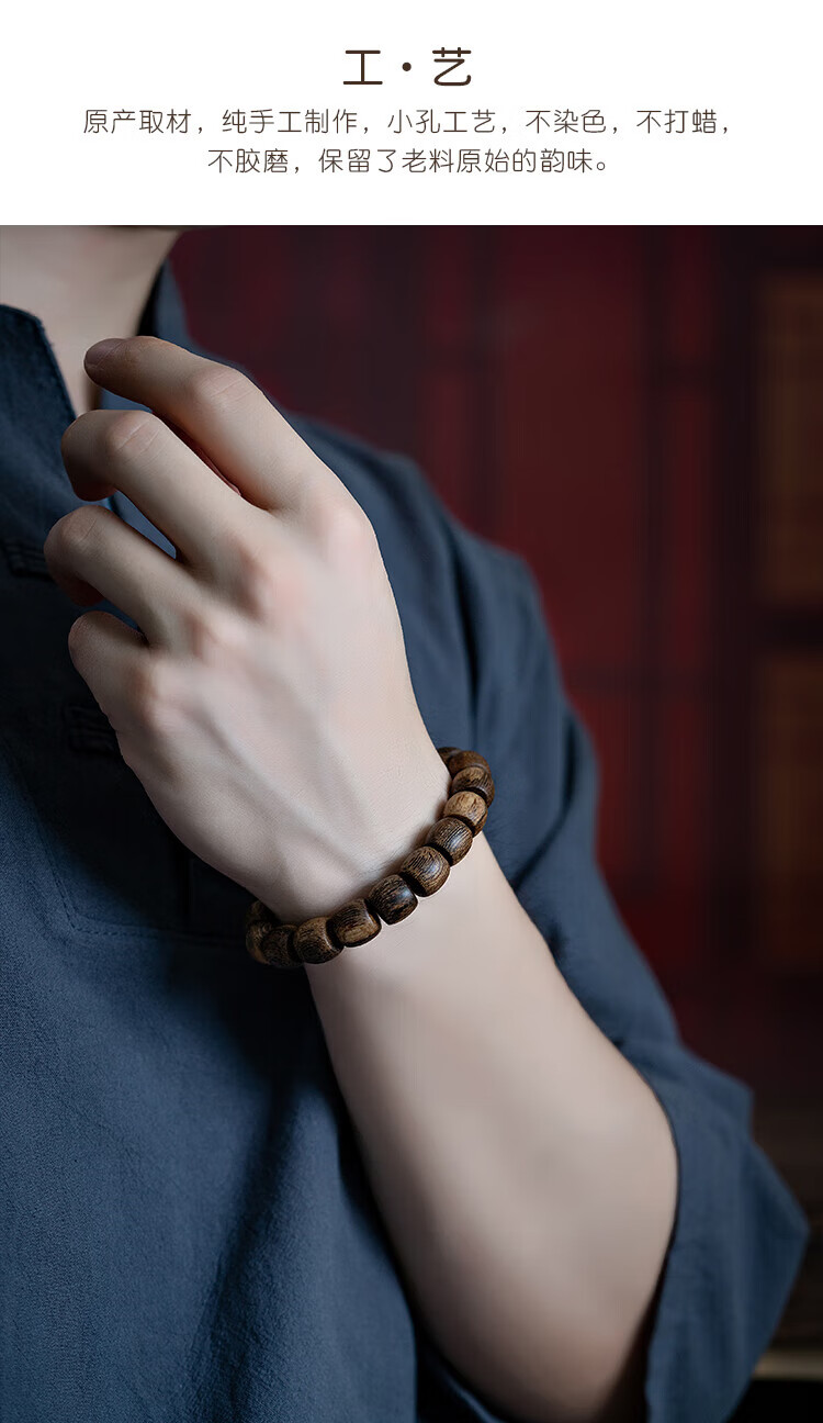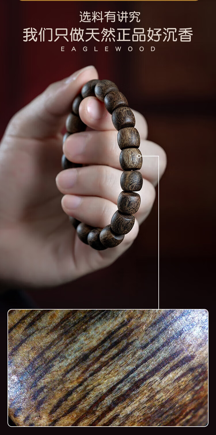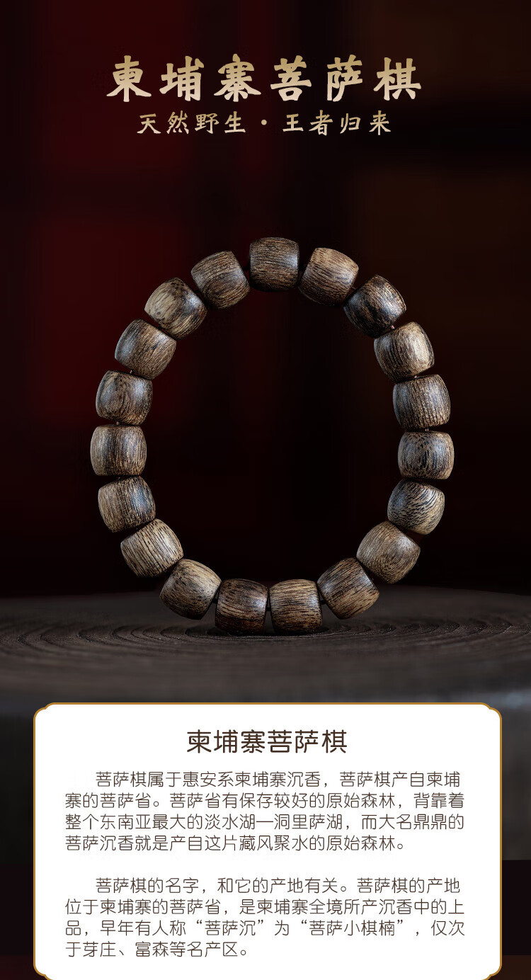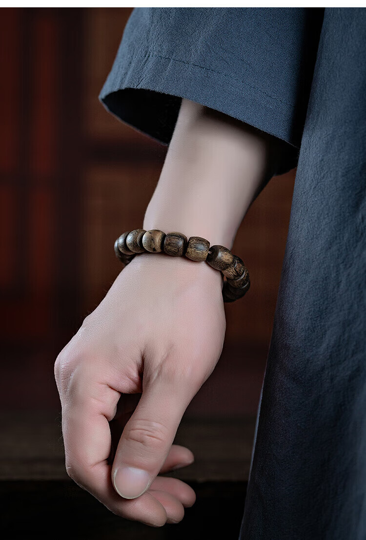 九刀匠天然柬埔寨菩萨棋沉香手串真品沉水级奇楠老型桶珠女男款佛珠手链 99分沉水 约11*10mm*19颗*13g