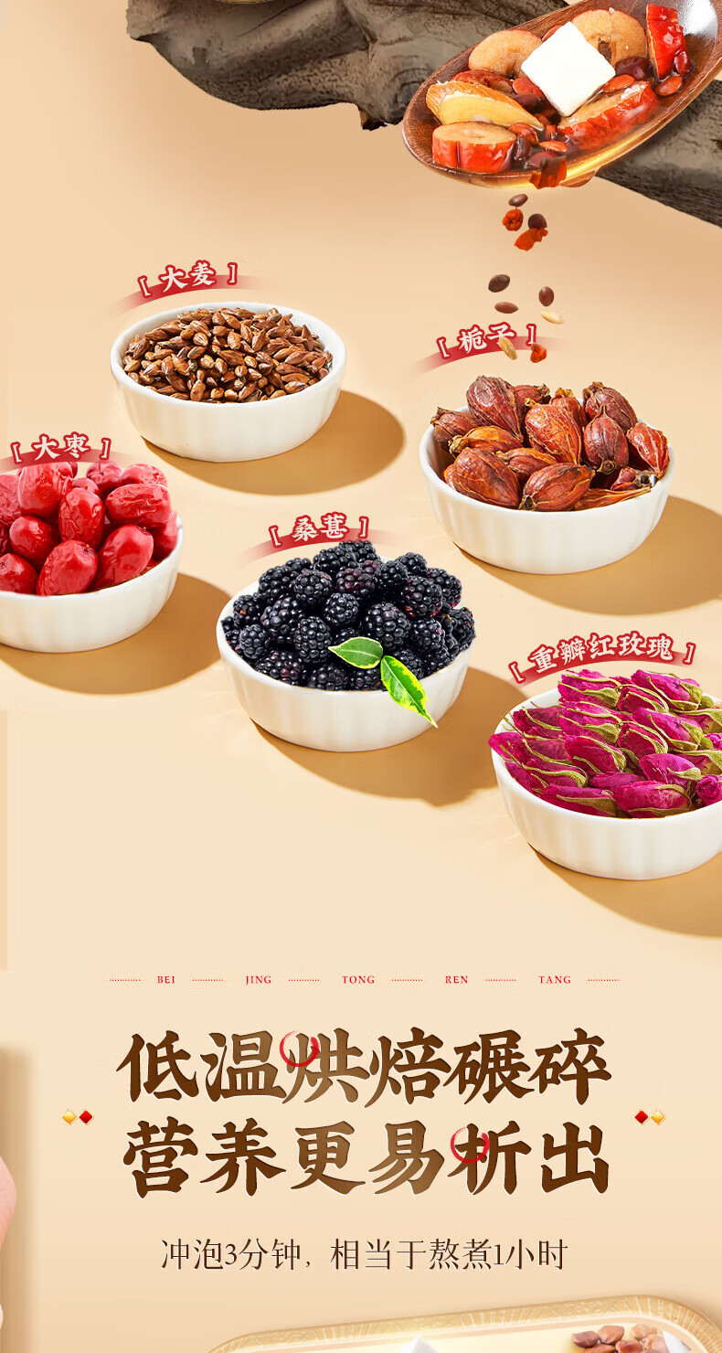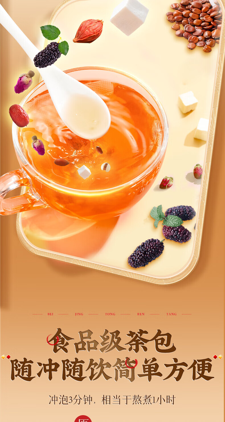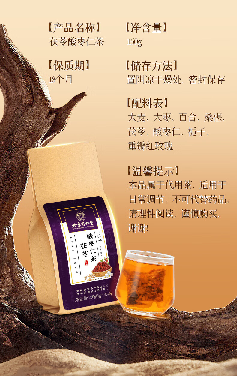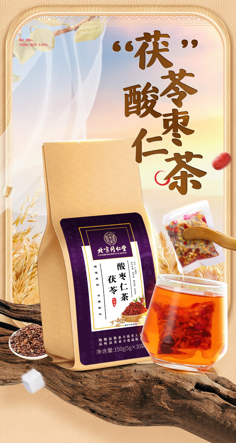 北京同仁堂茯苓酸枣仁茶百合桑葚大麦茶玫瑰茶男女滋补养生茶改善睡眠助眠茶 【1袋体验装】150g(5g*30)/袋