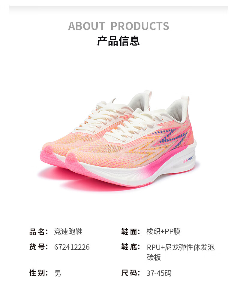 361°男鞋运动鞋【飞燃1.5】新品马拉松碳板竞速跑步鞋 我们亚洲 42