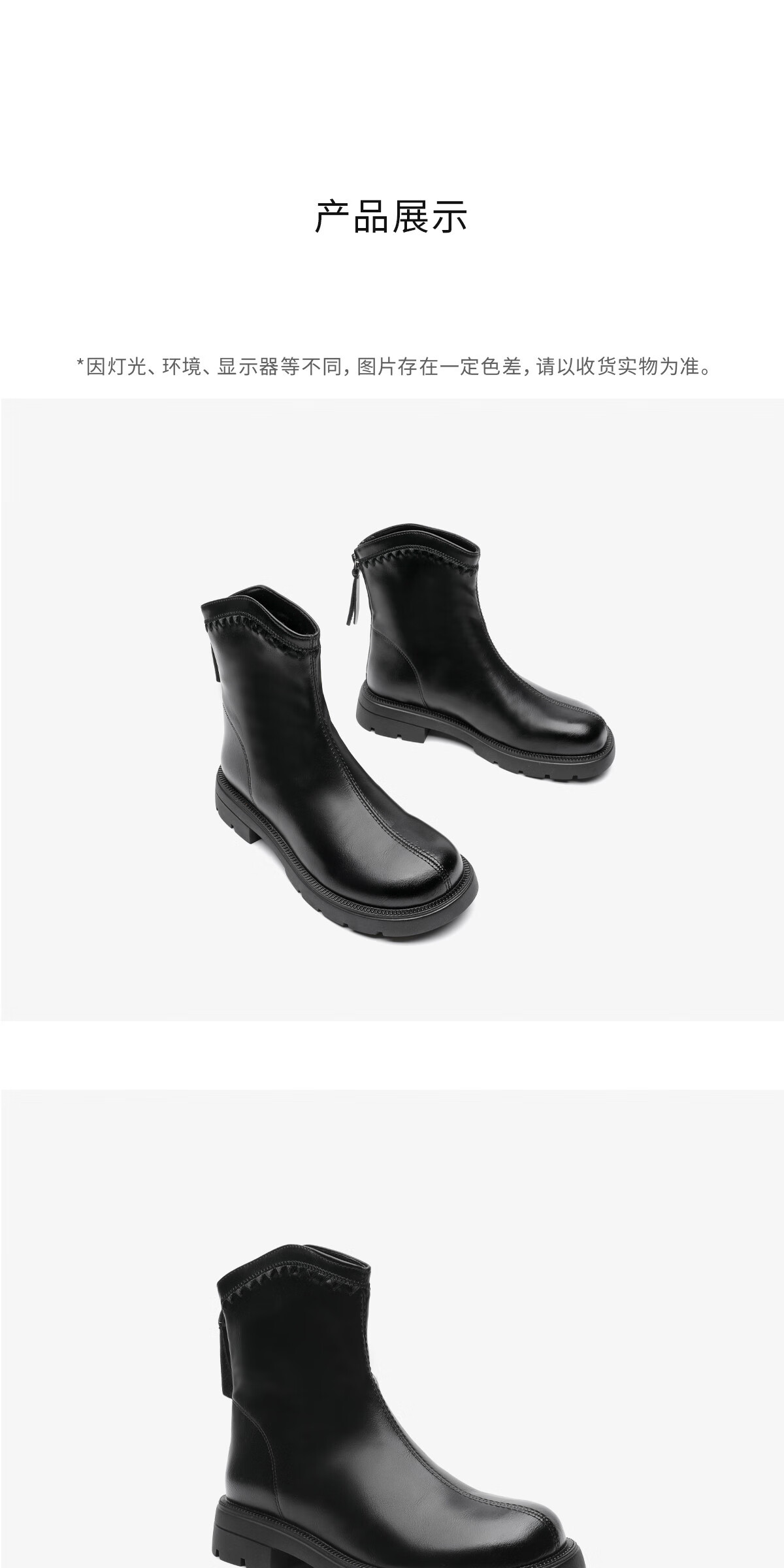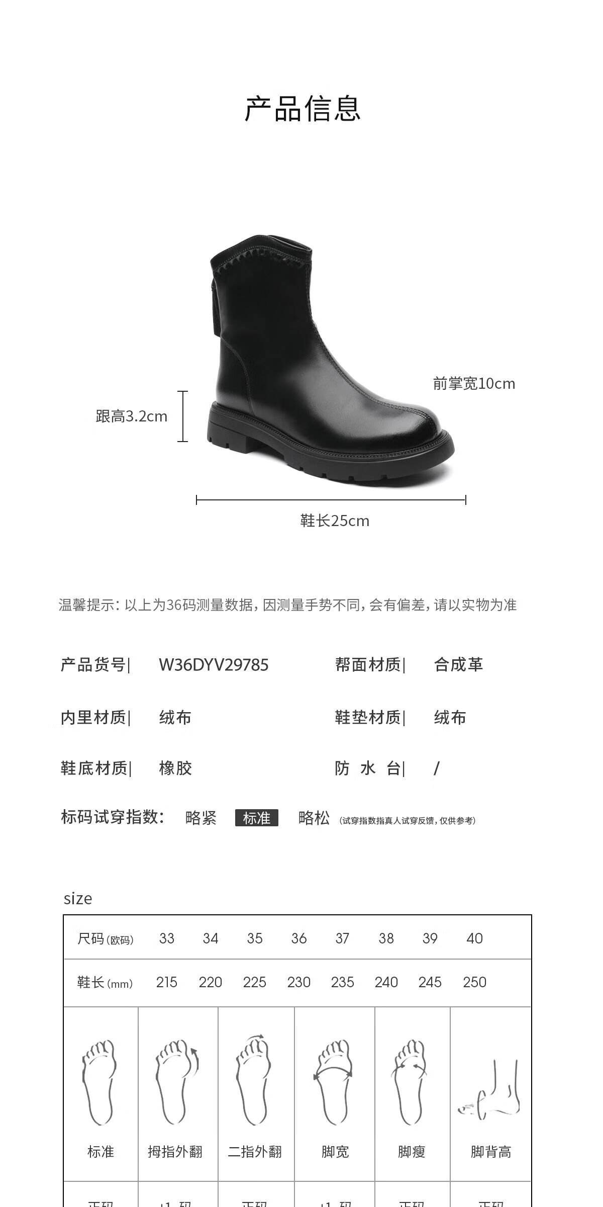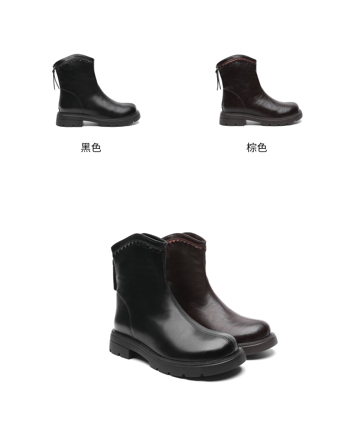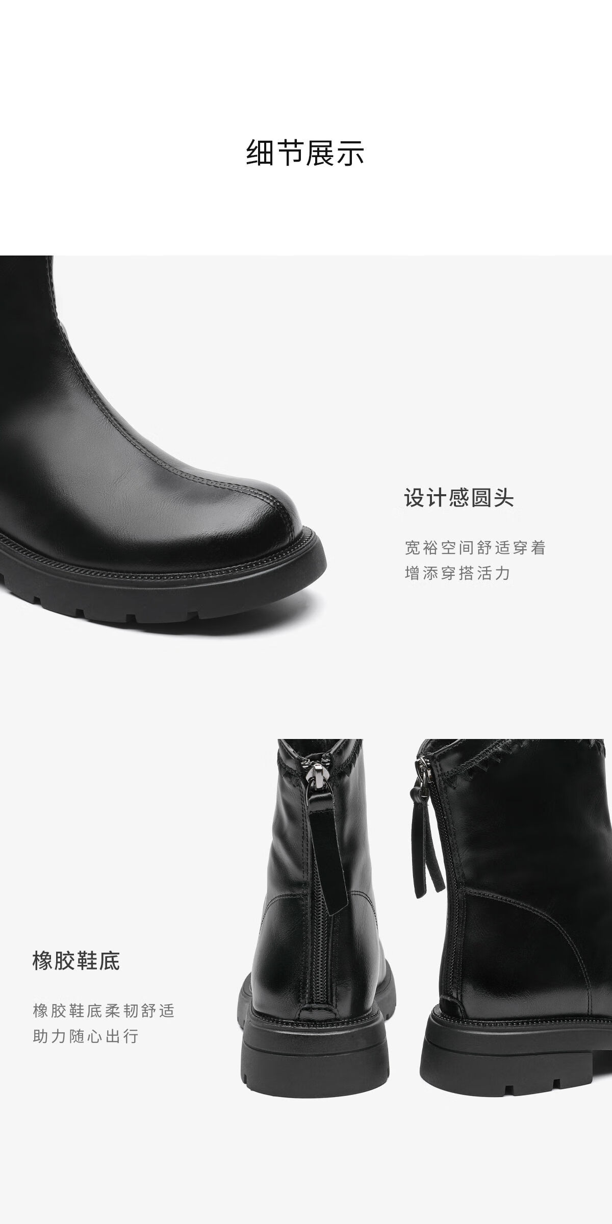 月芽儿短靴女2025新款冬季马丁靴加绒复古切尔西靴子女烟筒靴 绒里黑色01T 34