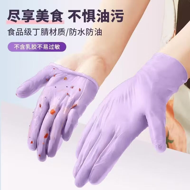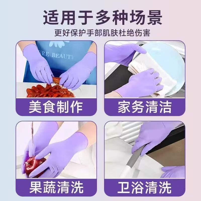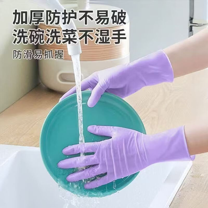 丁腈手套加长耐用一次性洗衣洗碗加厚防油橡胶劳保家务厨房清洁 【丁晴手套30只紫白粉随机色均码】 1包