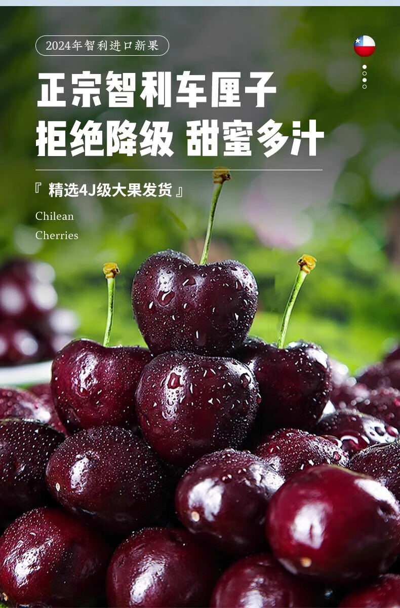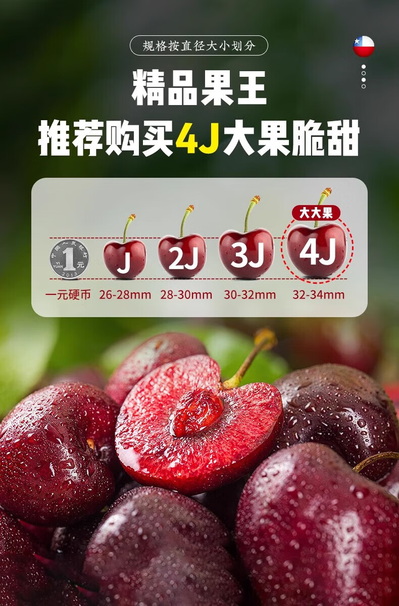 京溢鲜智利车厘子4J级【JD/顺丰-多地次日达】新鲜进口樱桃水果送礼物盒 4斤(净重) 整箱5斤4J级 单果32mm+