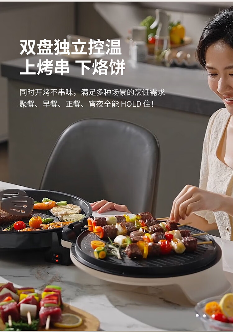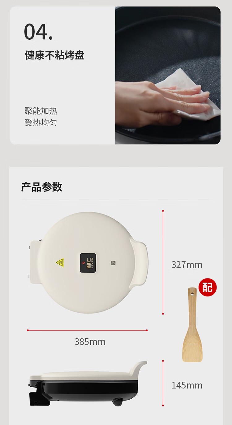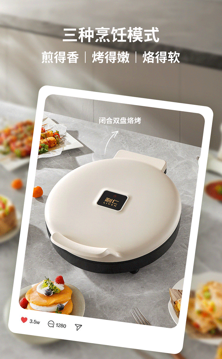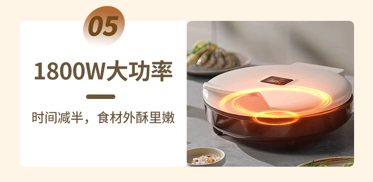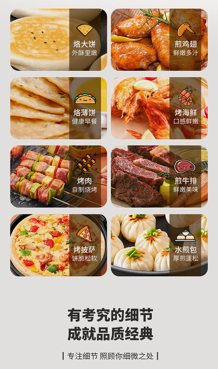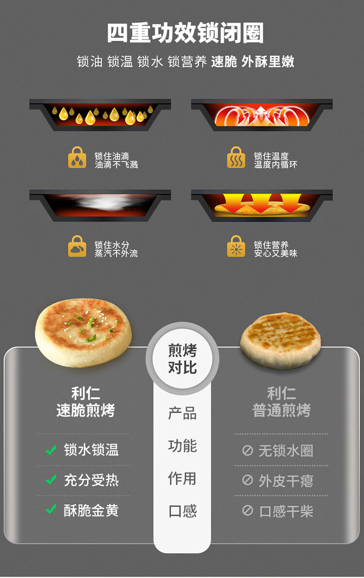 利仁新款元宝电饼铛家庭用加大加深38mm深烤盘1800W双面加热电饼档烙饼锅煎饼锅烤肉锅早餐机LR-J3436