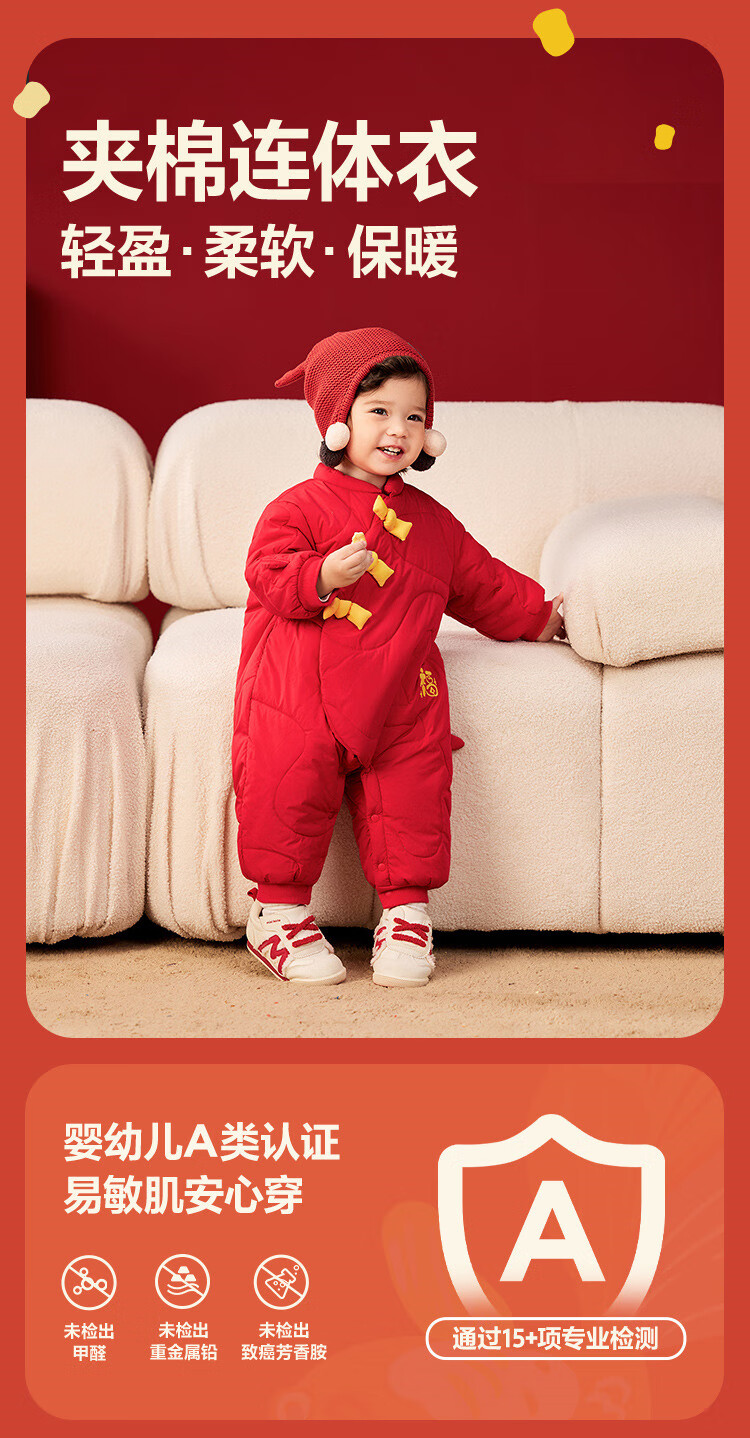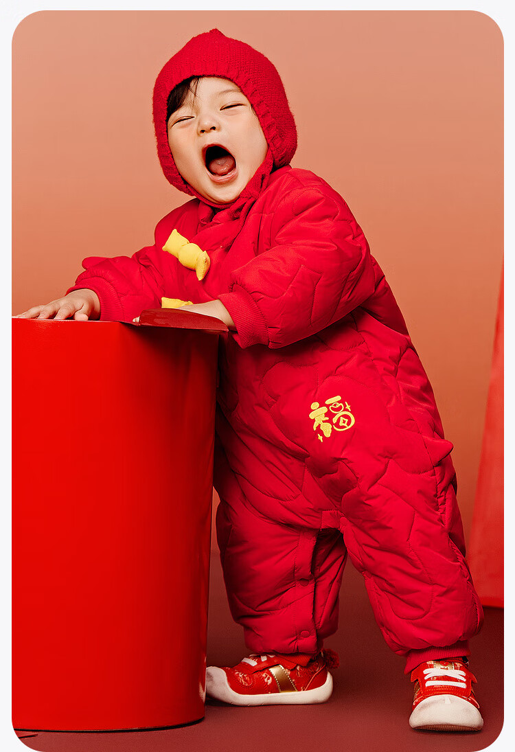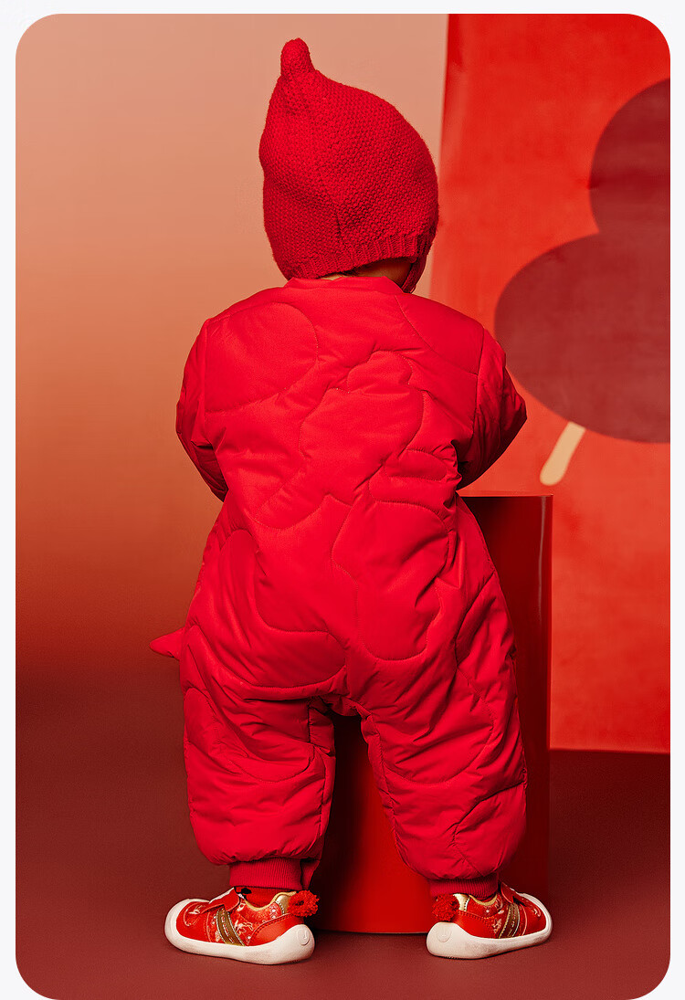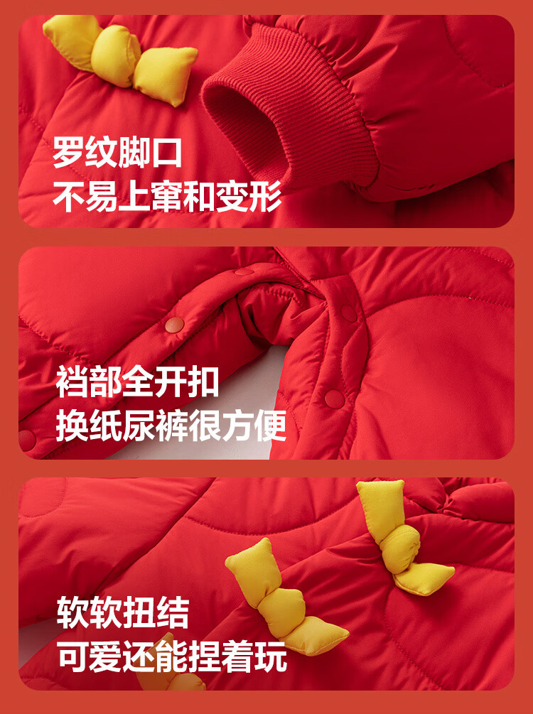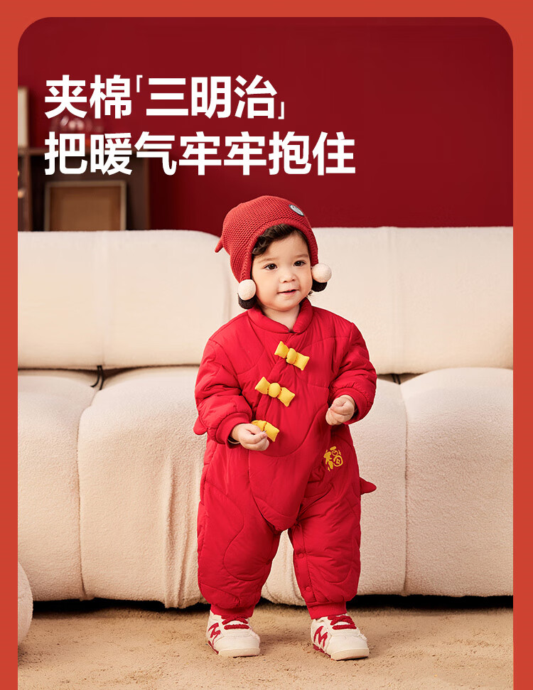迷你巴拉夹棉连体衣拜年冬季新春外出2025新款婴儿衣服红色