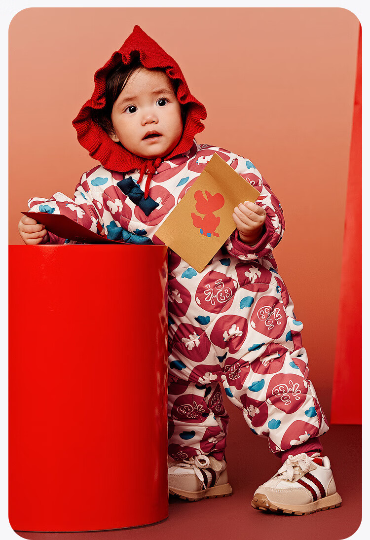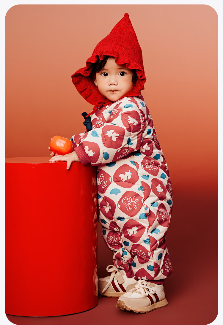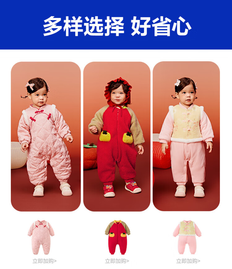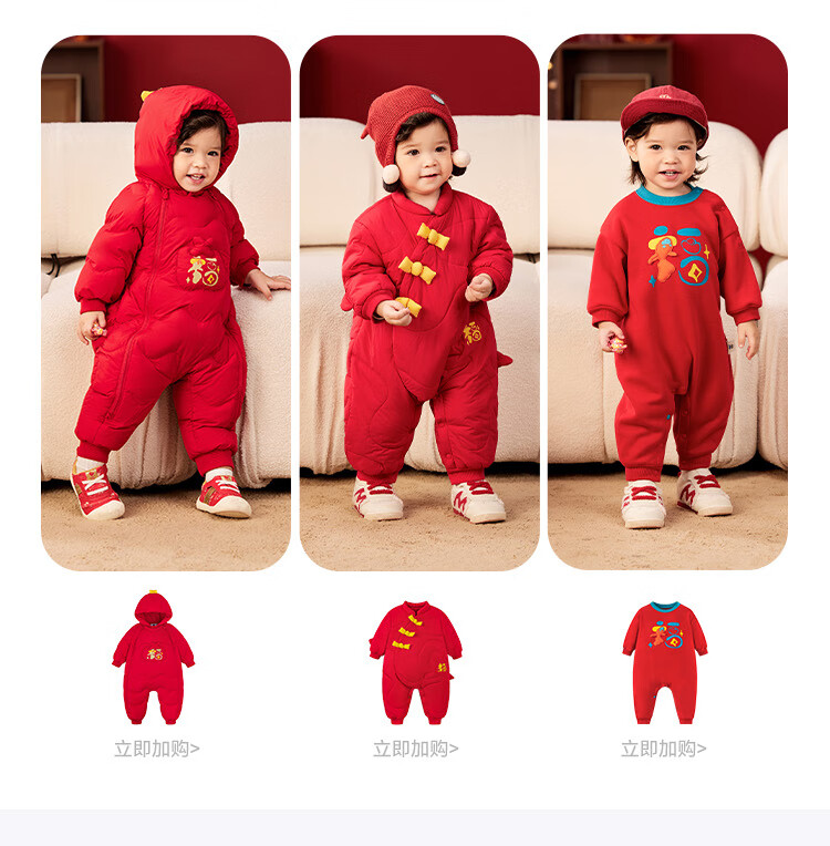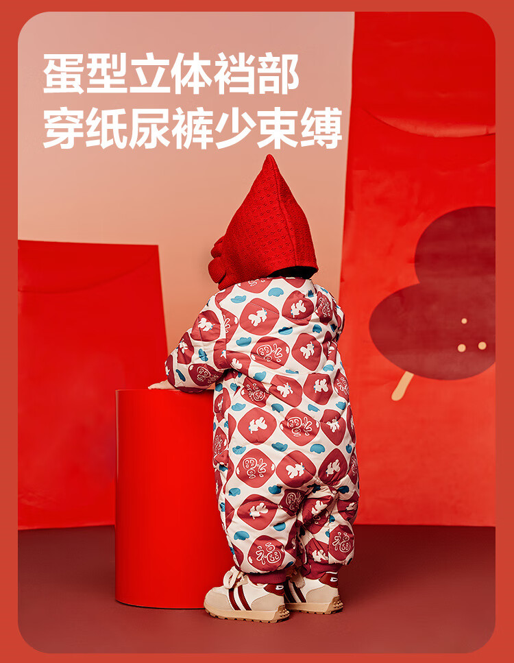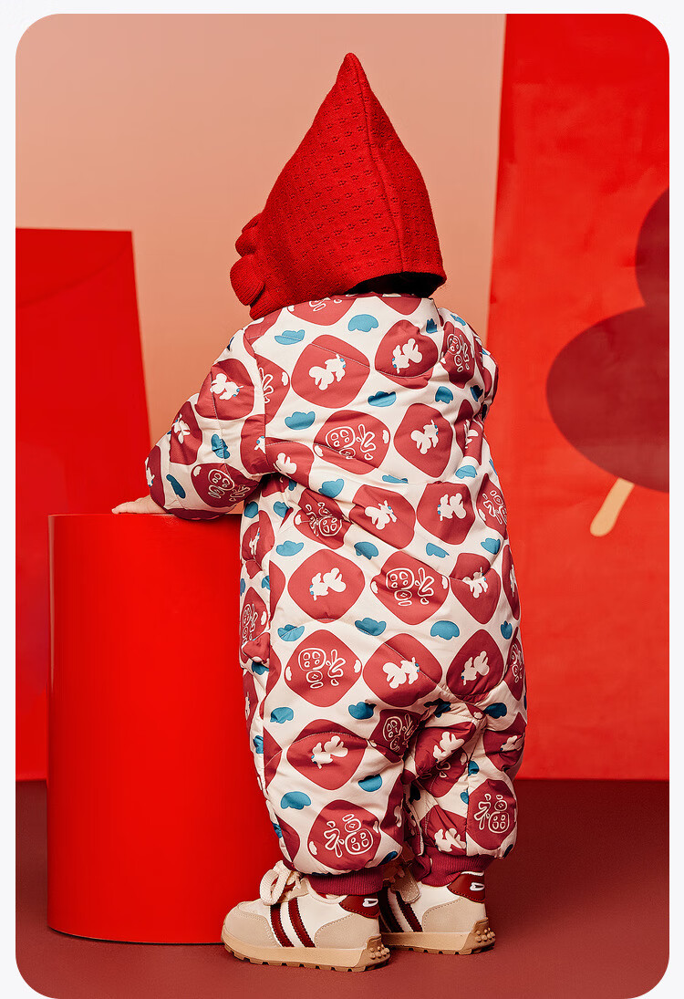 迷你巴拉夹棉连体衣拜年冬季新春外出2025新款婴儿衣服红色