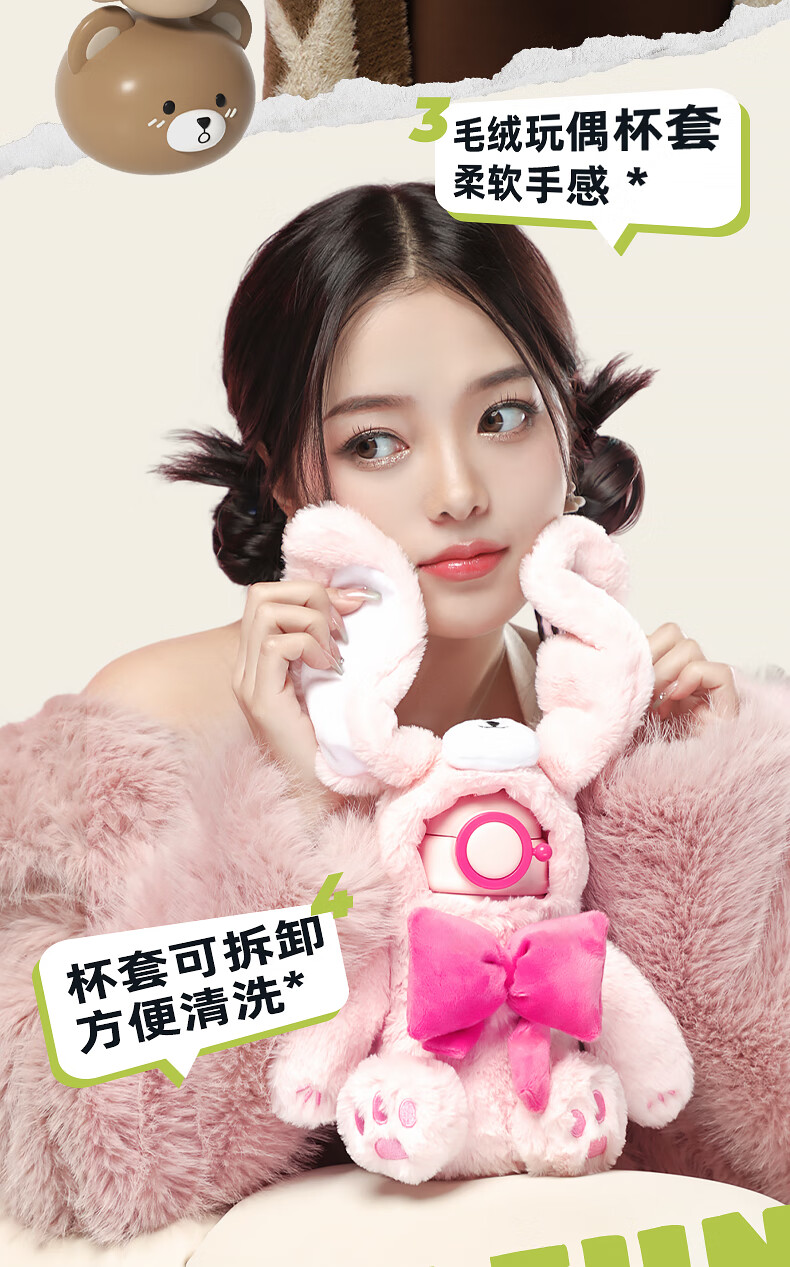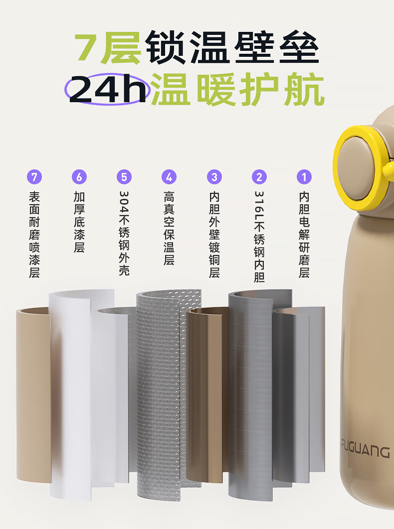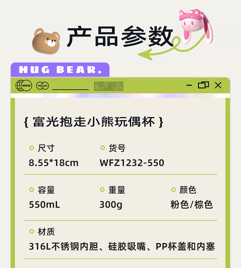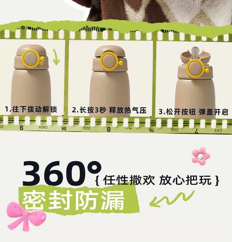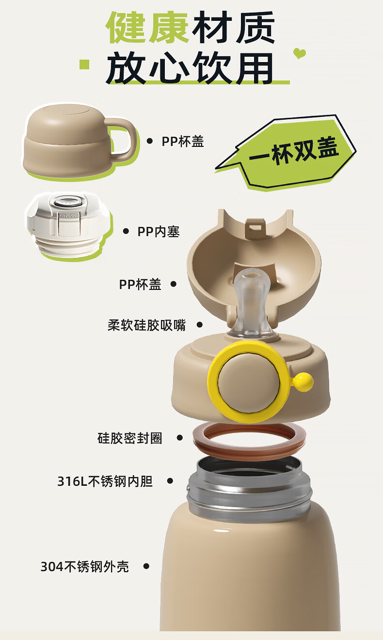 FGA富光儿童保温杯水杯子水壶316l不锈钢双盖精美礼盒送男女学生粉