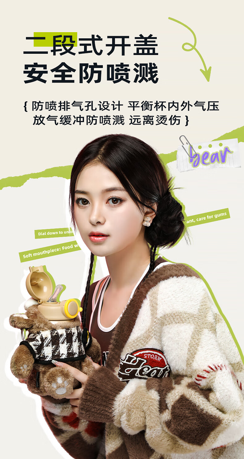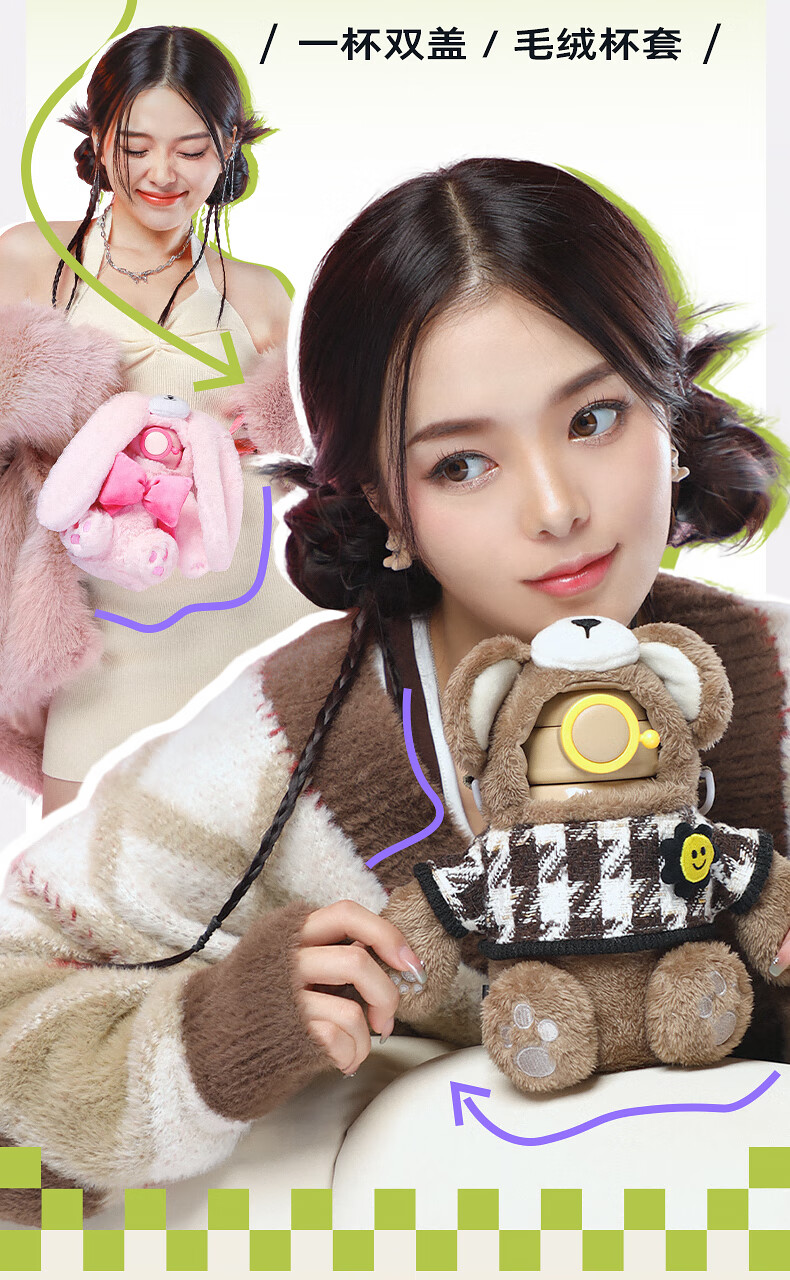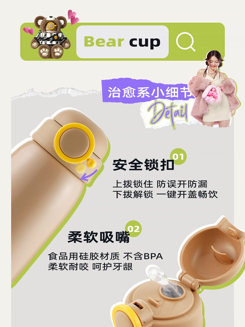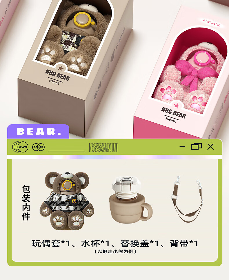 FGA富光儿童保温杯水杯子水壶316l不锈钢双盖精美礼盒送男女学生粉
