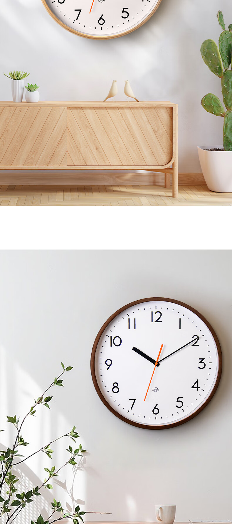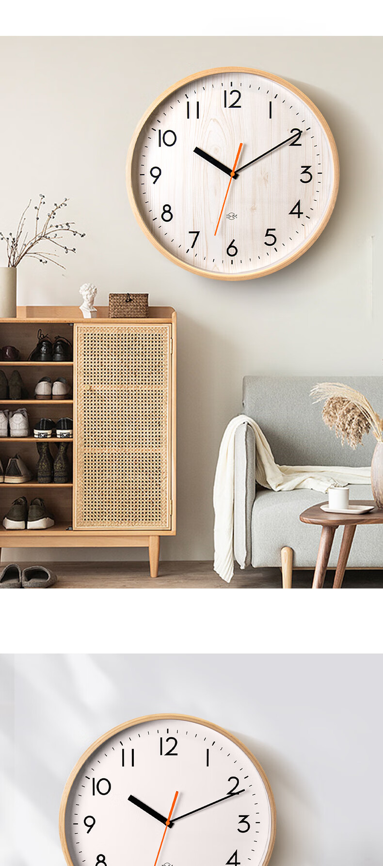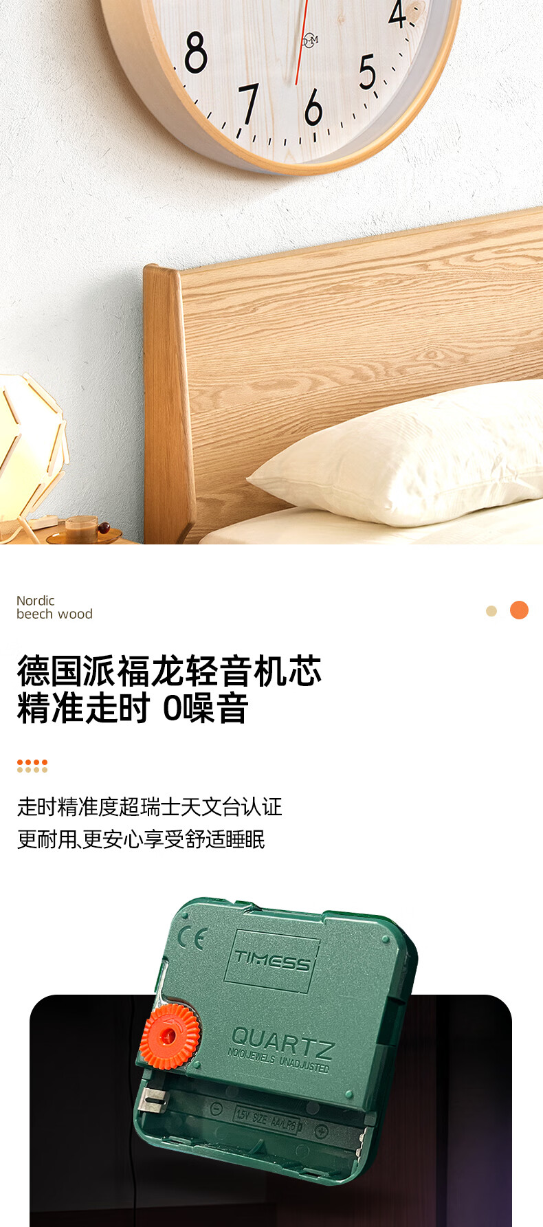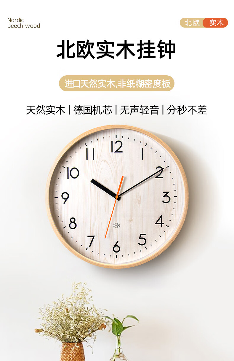 Timess挂钟客厅钟表2025新款原木时钟表挂墙免打孔简约石英挂表36cm