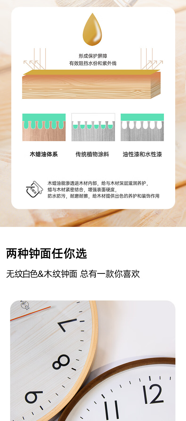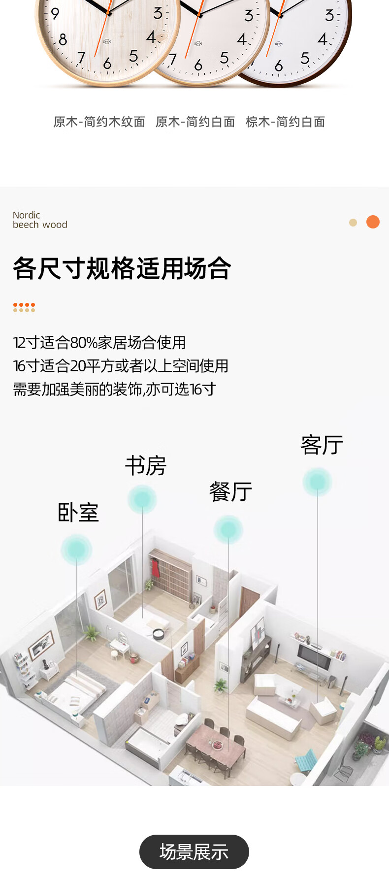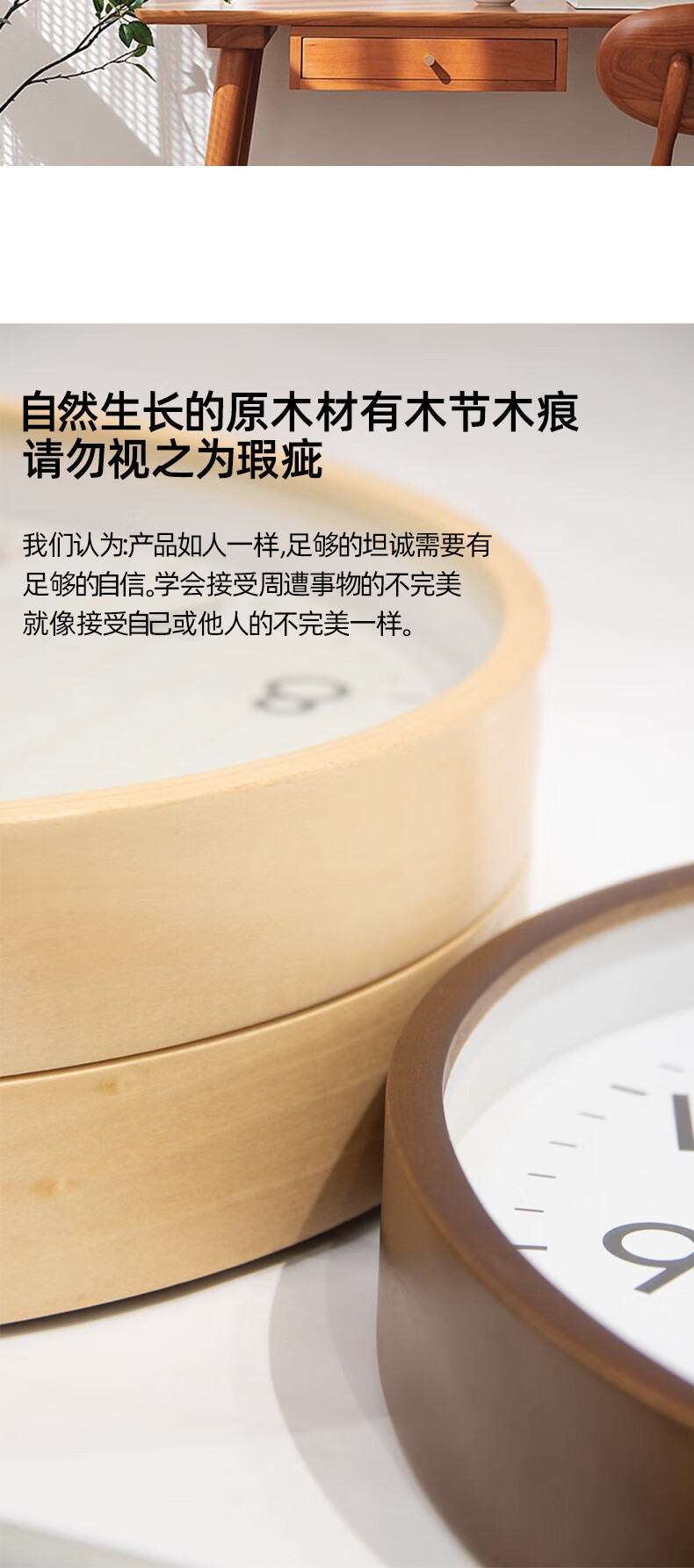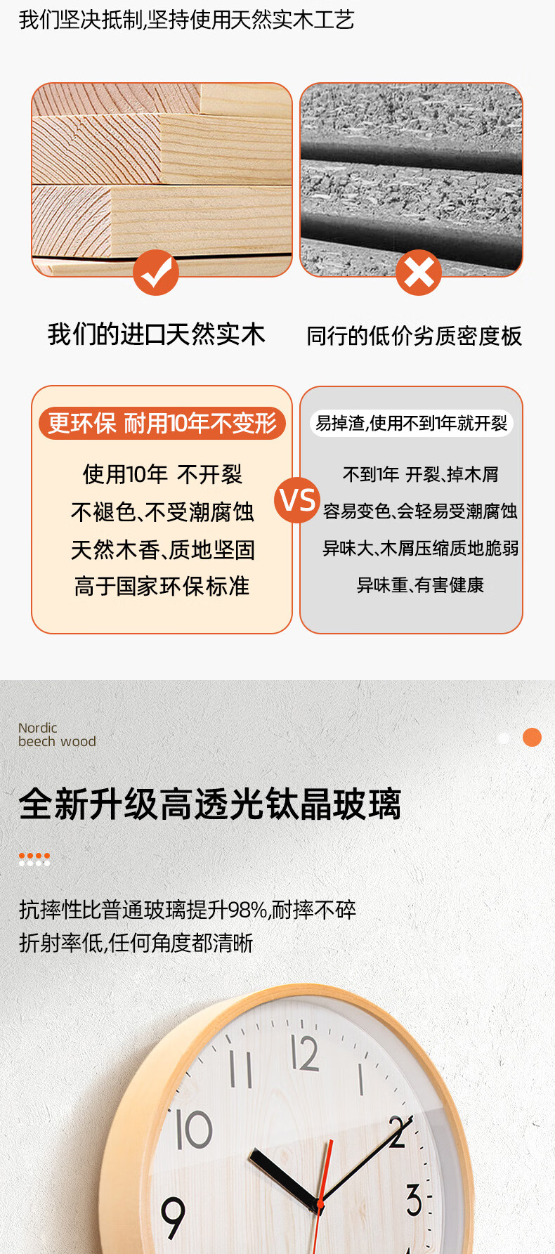 Timess挂钟客厅钟表2025新款原木时钟表挂墙免打孔简约石英挂表36cm