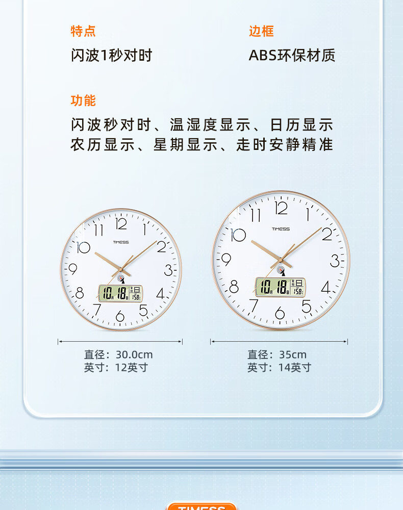 Timess 挂钟电波钟客厅万年历2025新款钟表日历时钟自动对时挂墙表35cm