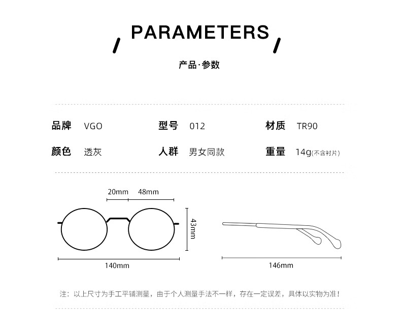 VGO近视眼镜防蓝光防辐射眼镜男女镜架手机电脑护目镜框012透灰开学