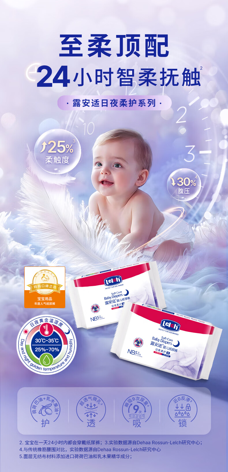 露安适(Lelch)日夜柔护婴儿纸尿裤NB码5片(夜用)