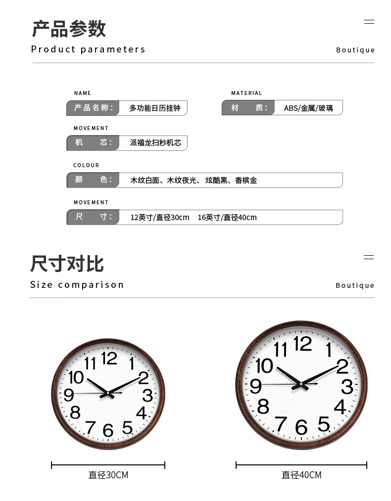 Timess挂钟钟表客厅简约家用创意时尚时钟表挂墙石英钟41cm+16英寸