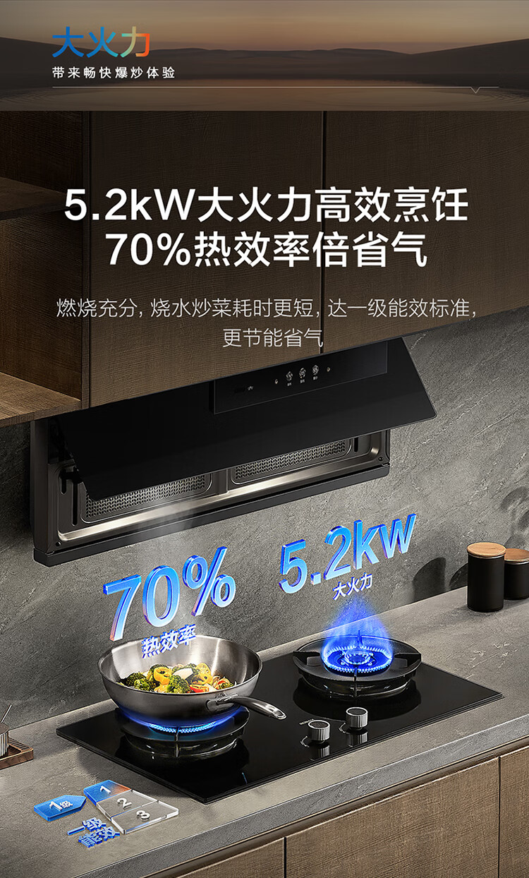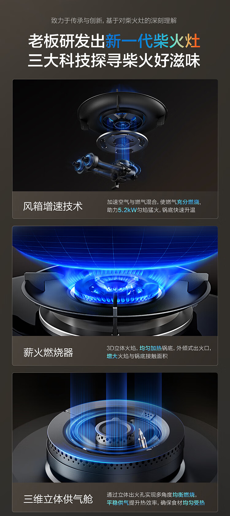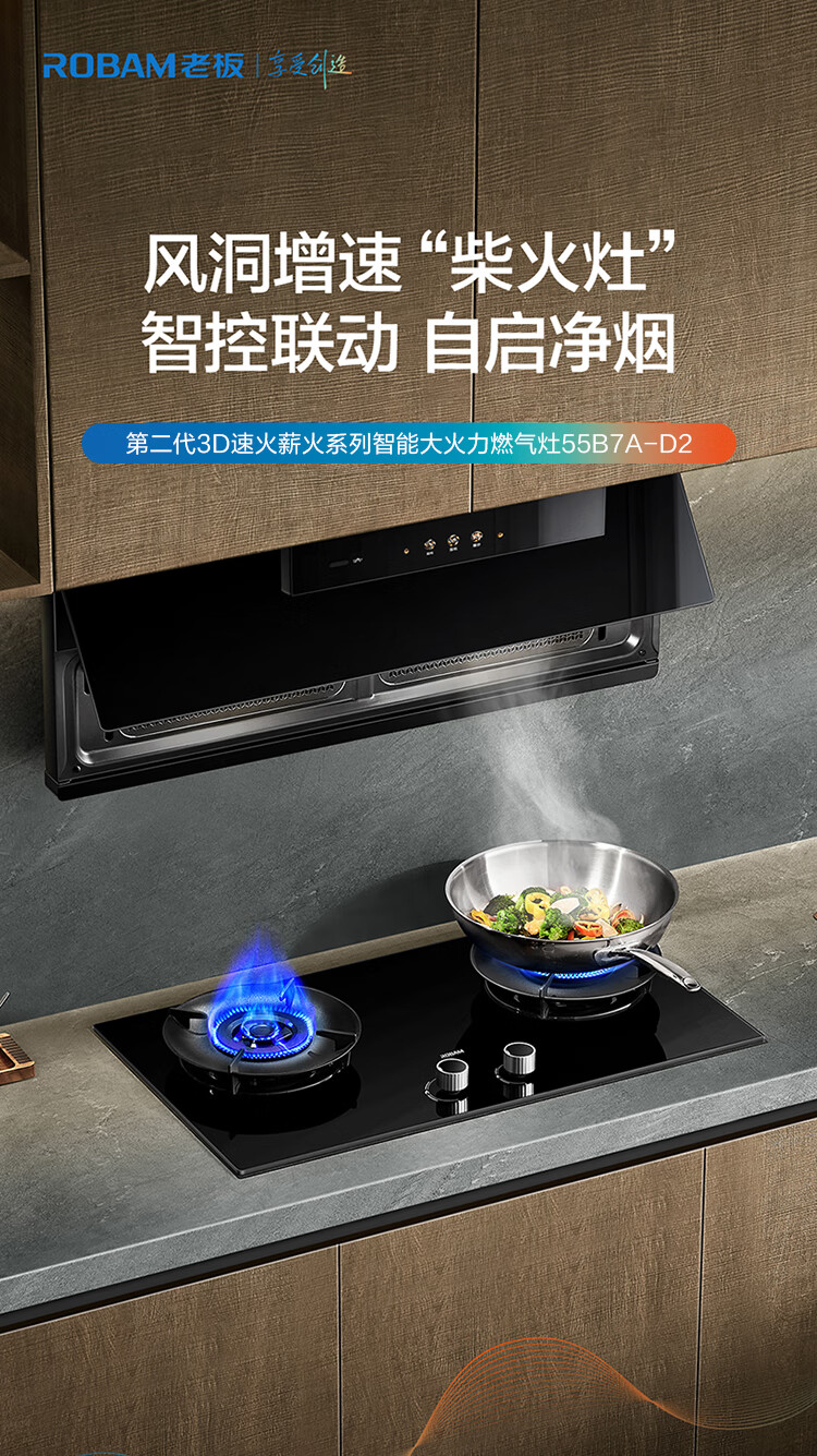 老板(Robam)70%热效率烟灶联动JZT-55B7A-D2燃气灶天然气灶具5.2kW火力煤气灶国家补贴