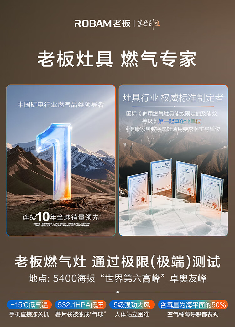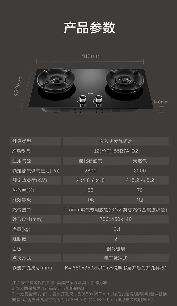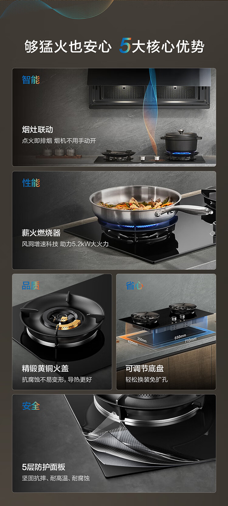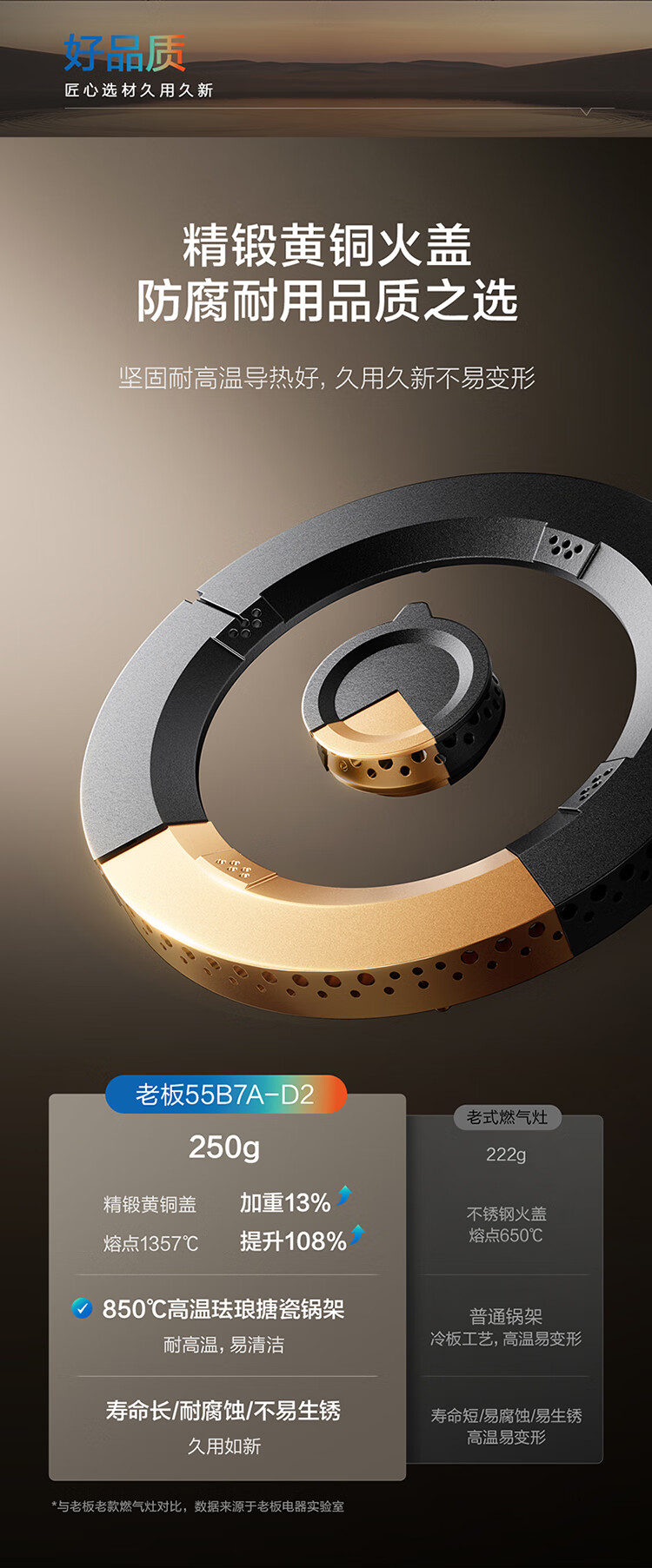 老板(Robam)70%热效率烟灶联动JZT-55B7A-D2燃气灶天然气灶具5.2kW火力煤气灶国家补贴