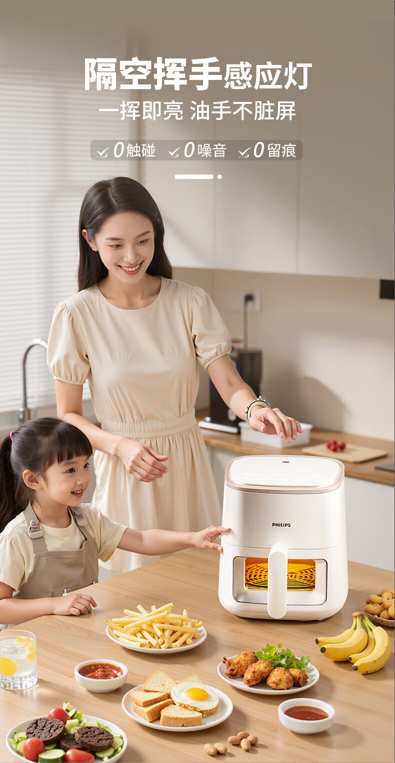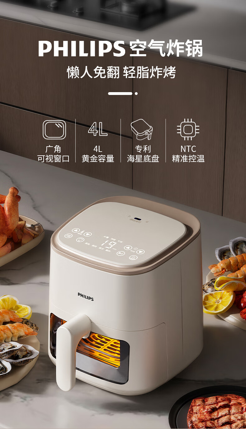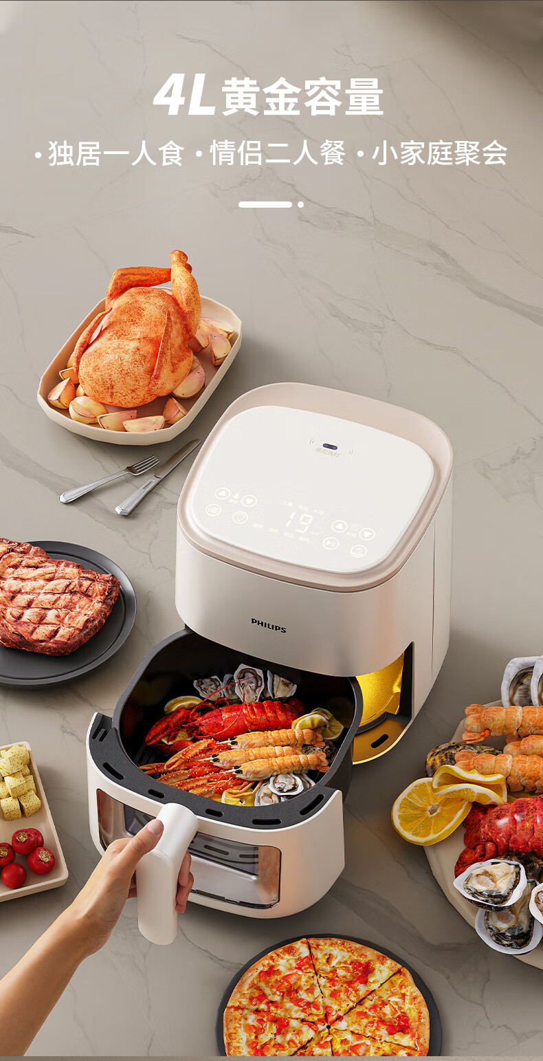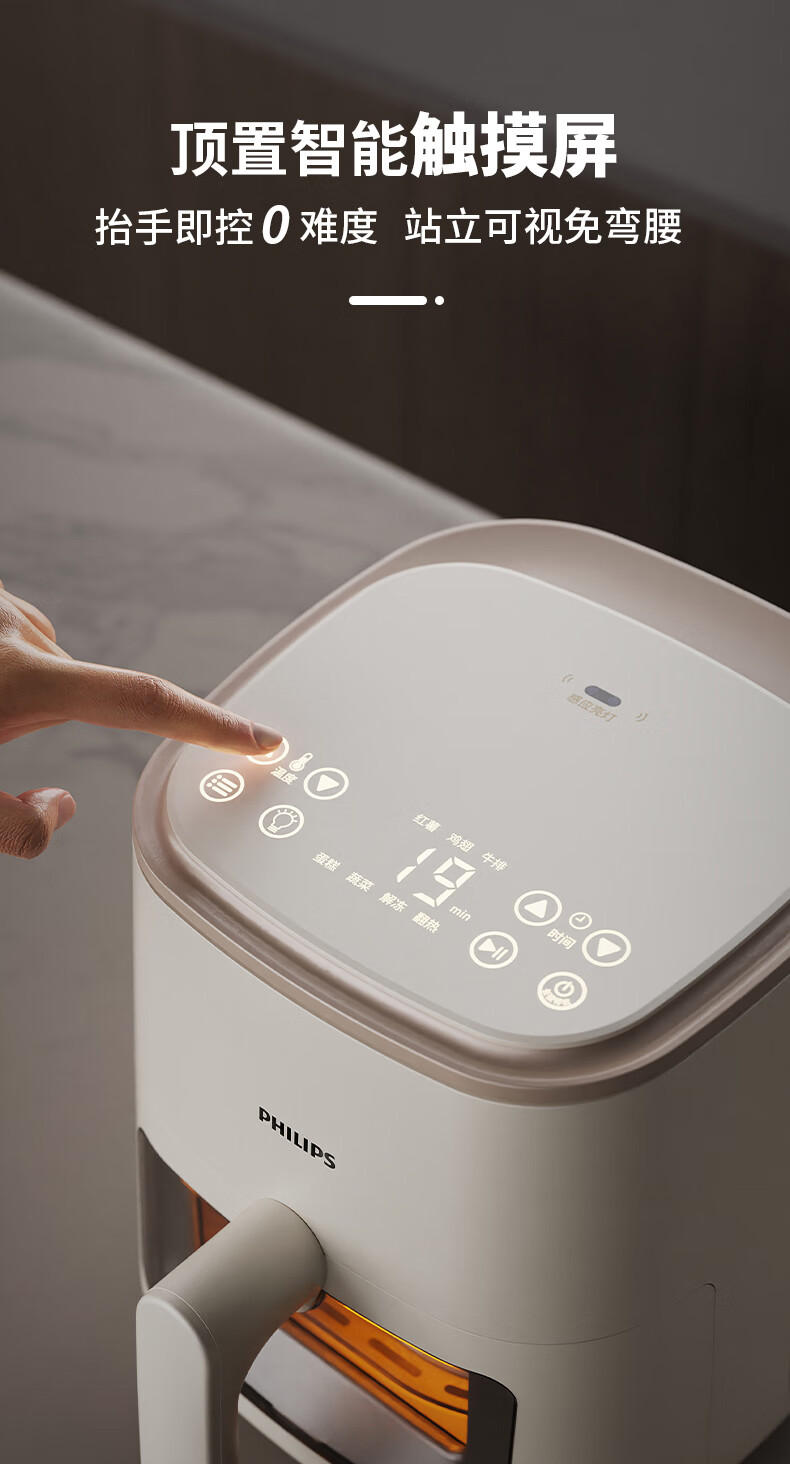 飞利浦空气炸锅家用4L大容量智能触屏 多功能全自动可视多功能炸锅HD9374