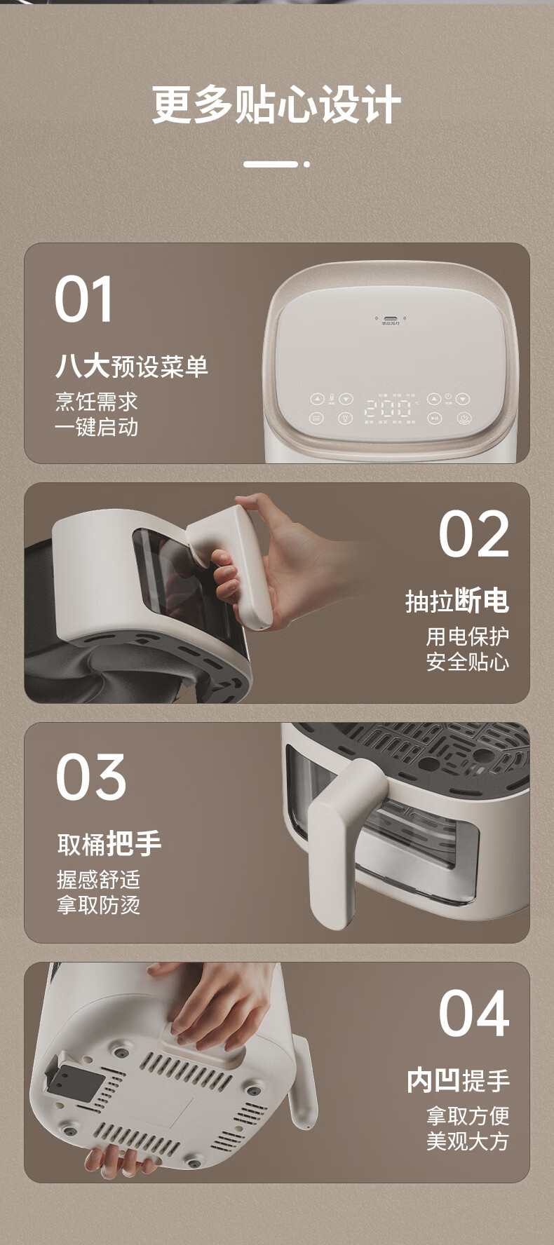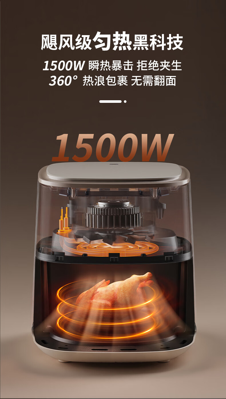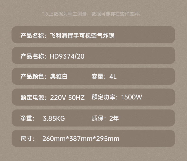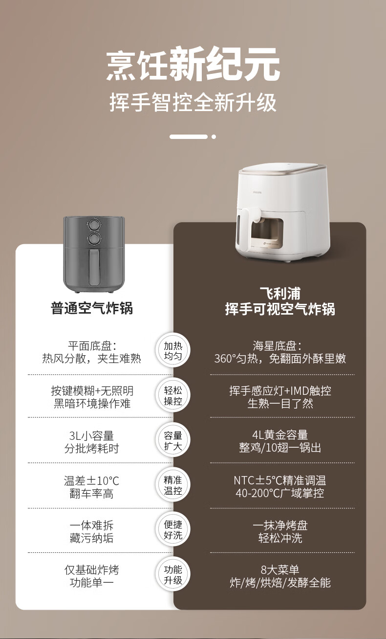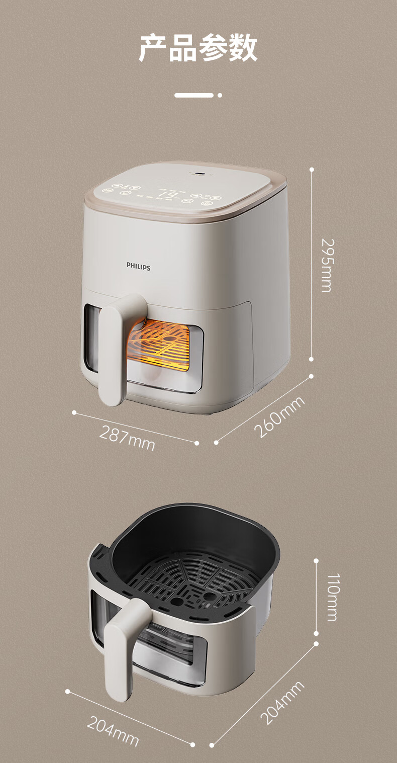 飞利浦空气炸锅家用4L大容量智能触屏 多功能全自动可视多功能炸锅HD9374