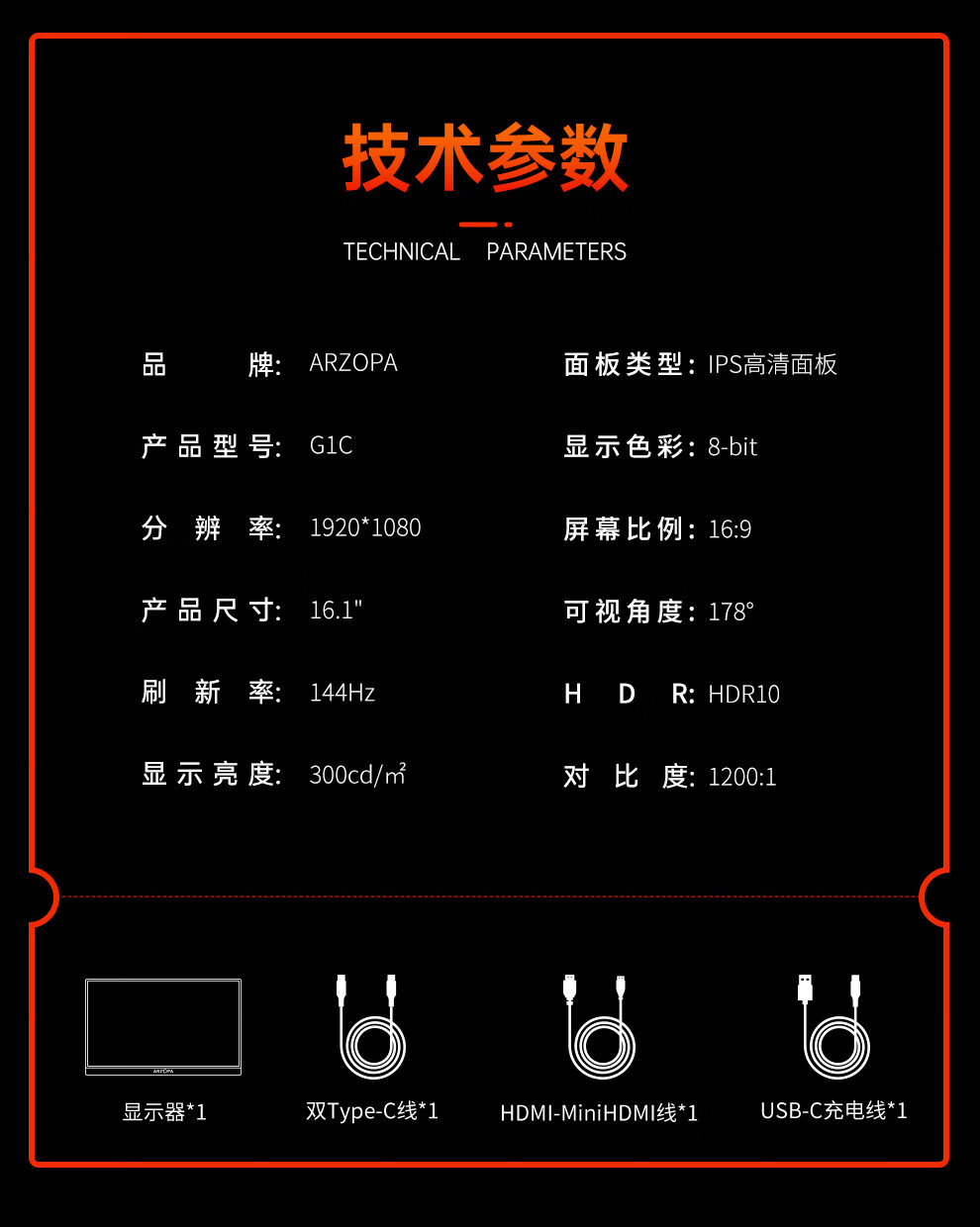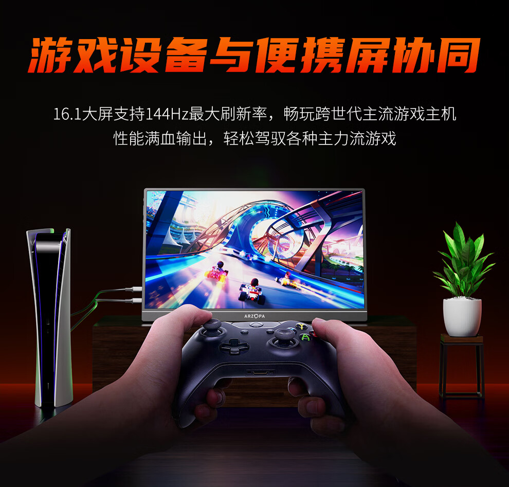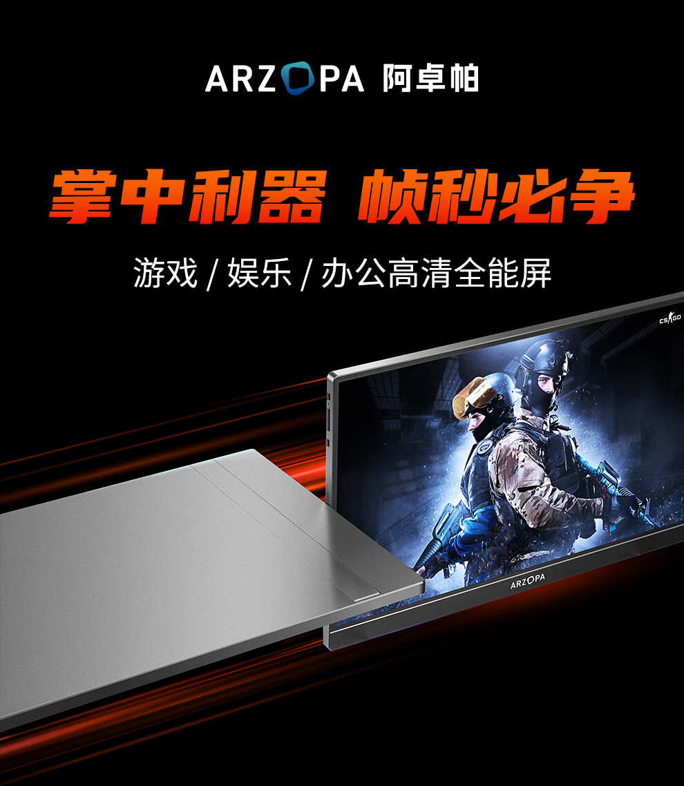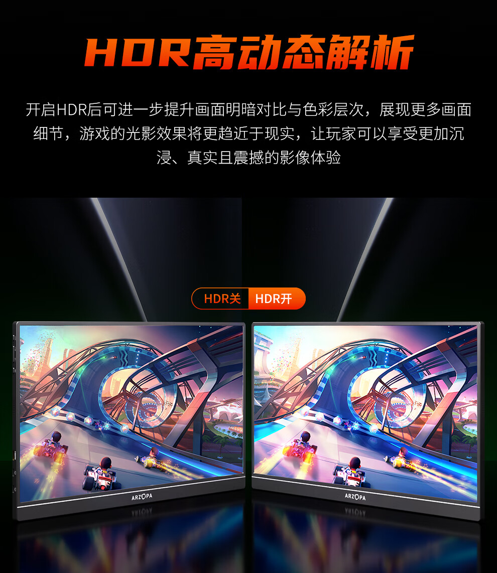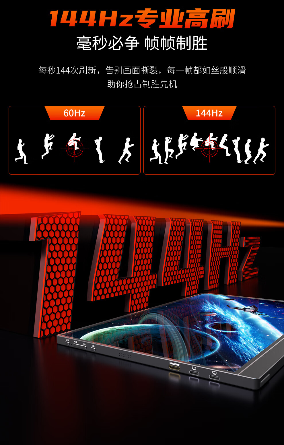 ARZOPA 16.1英寸144HZ便携式显示器 笔记本电脑手机一线直连副屏Switch显示屏 G1C