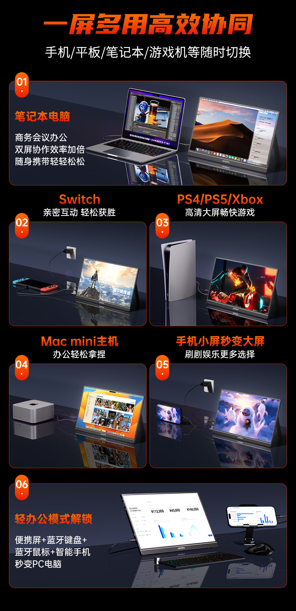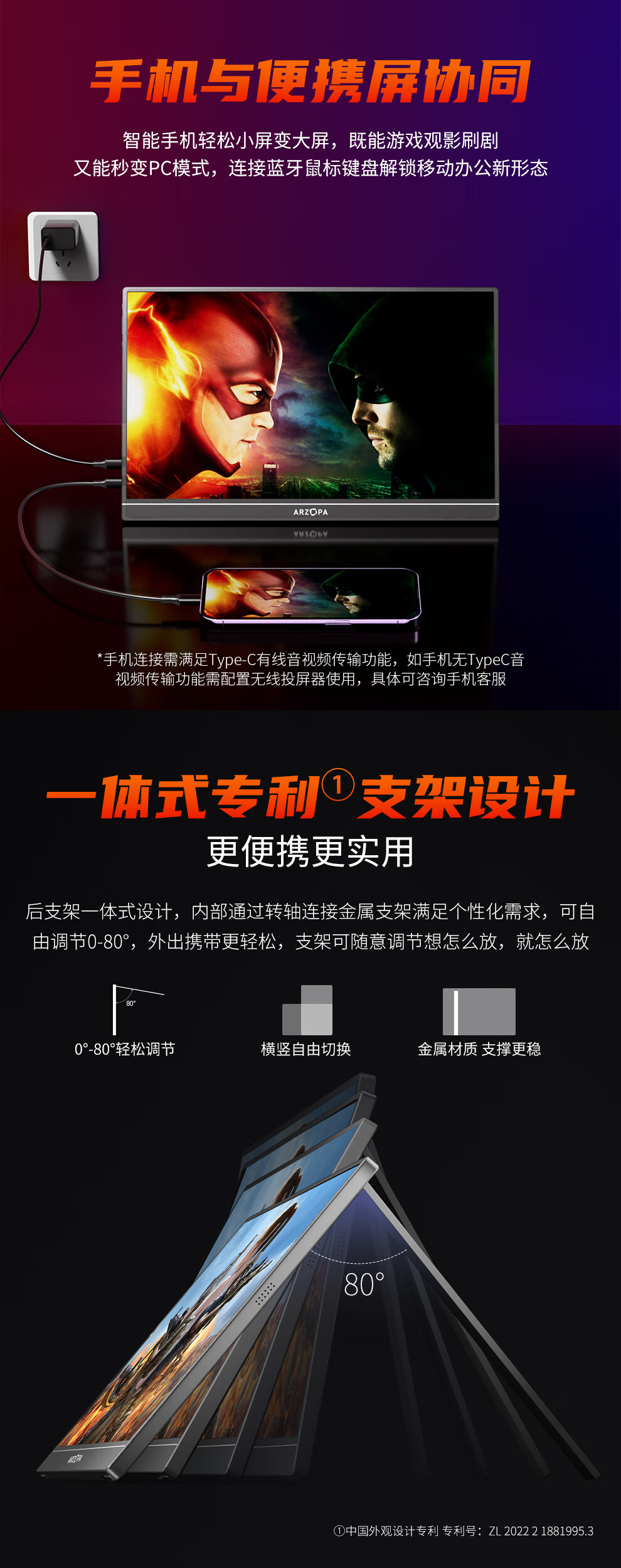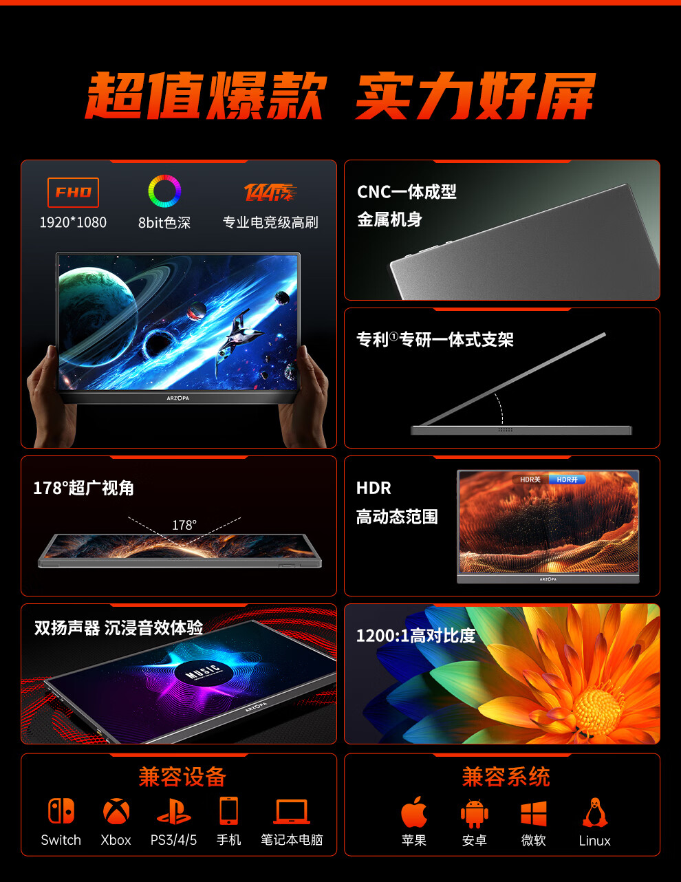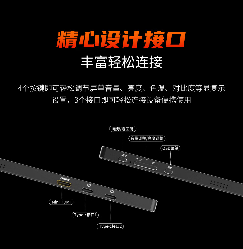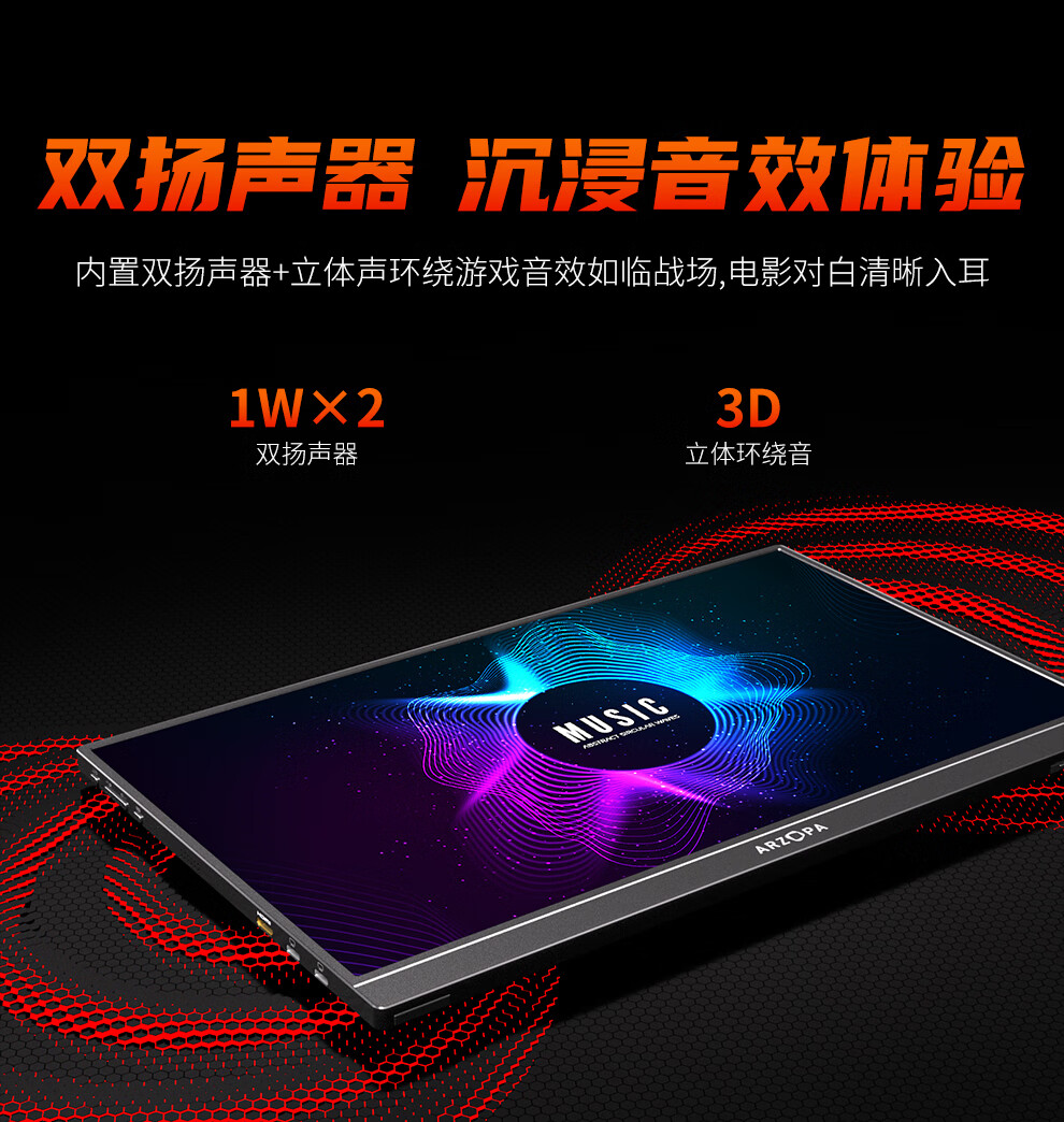 ARZOPA 16.1英寸144HZ便携式显示器 笔记本电脑手机一线直连副屏Switch显示屏 G1C