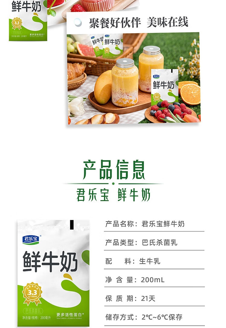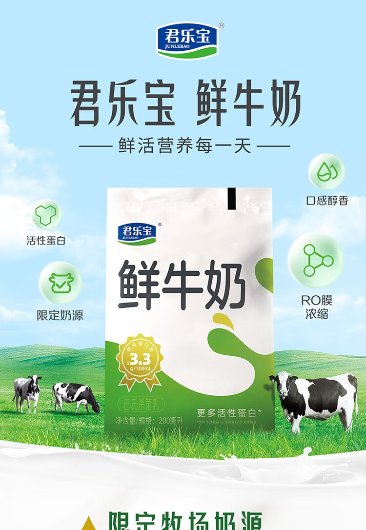 君乐宝(JUNLEBAO)鲜牛奶 200ml*12袋 生牛乳纯牛奶儿童营养早餐低温牛奶 中秋礼盒