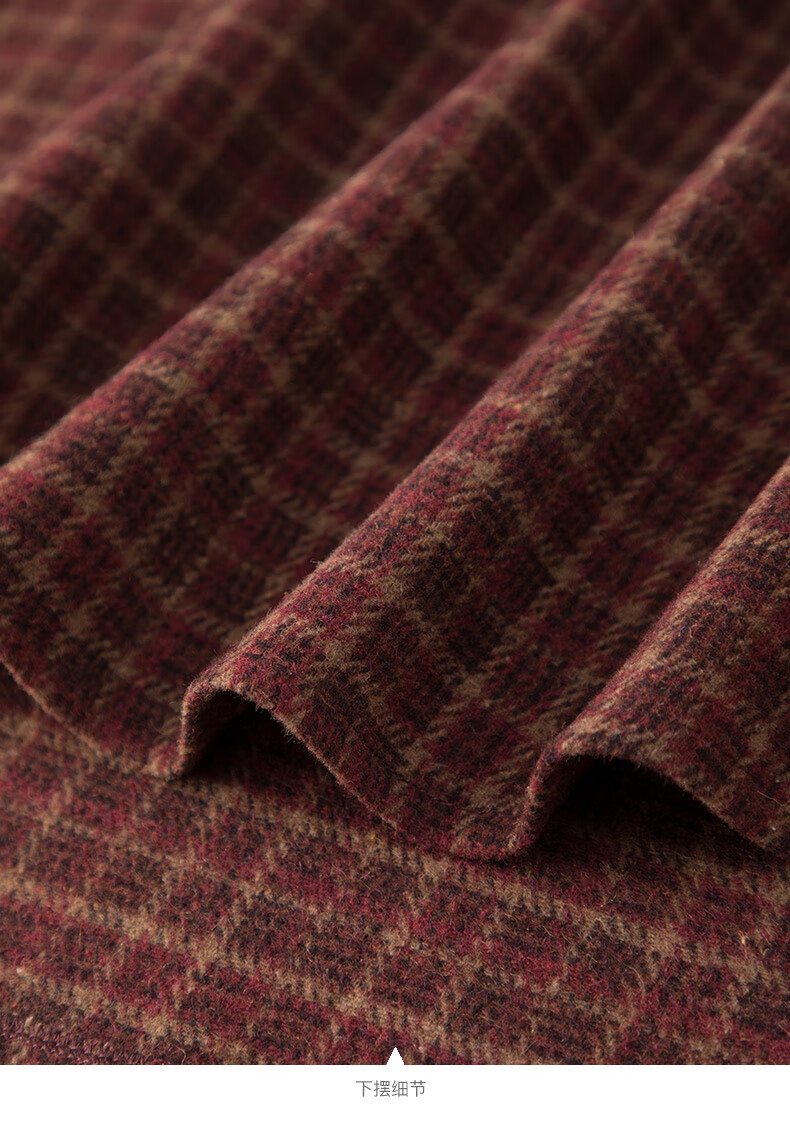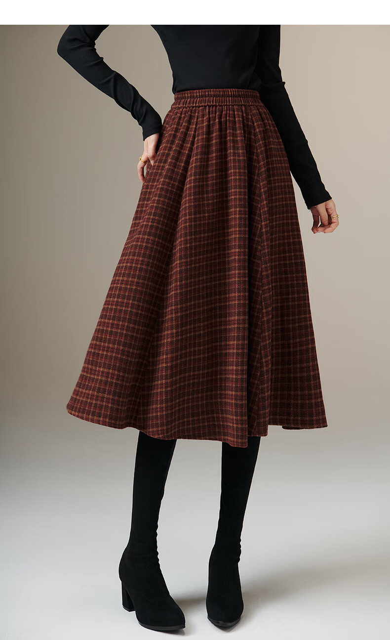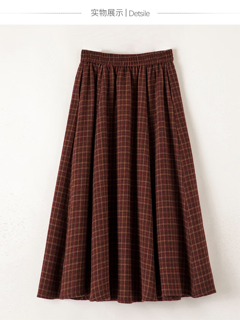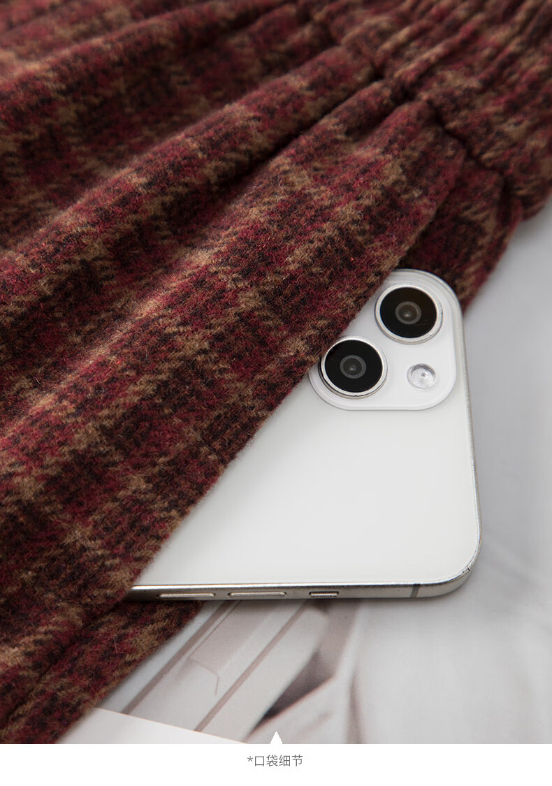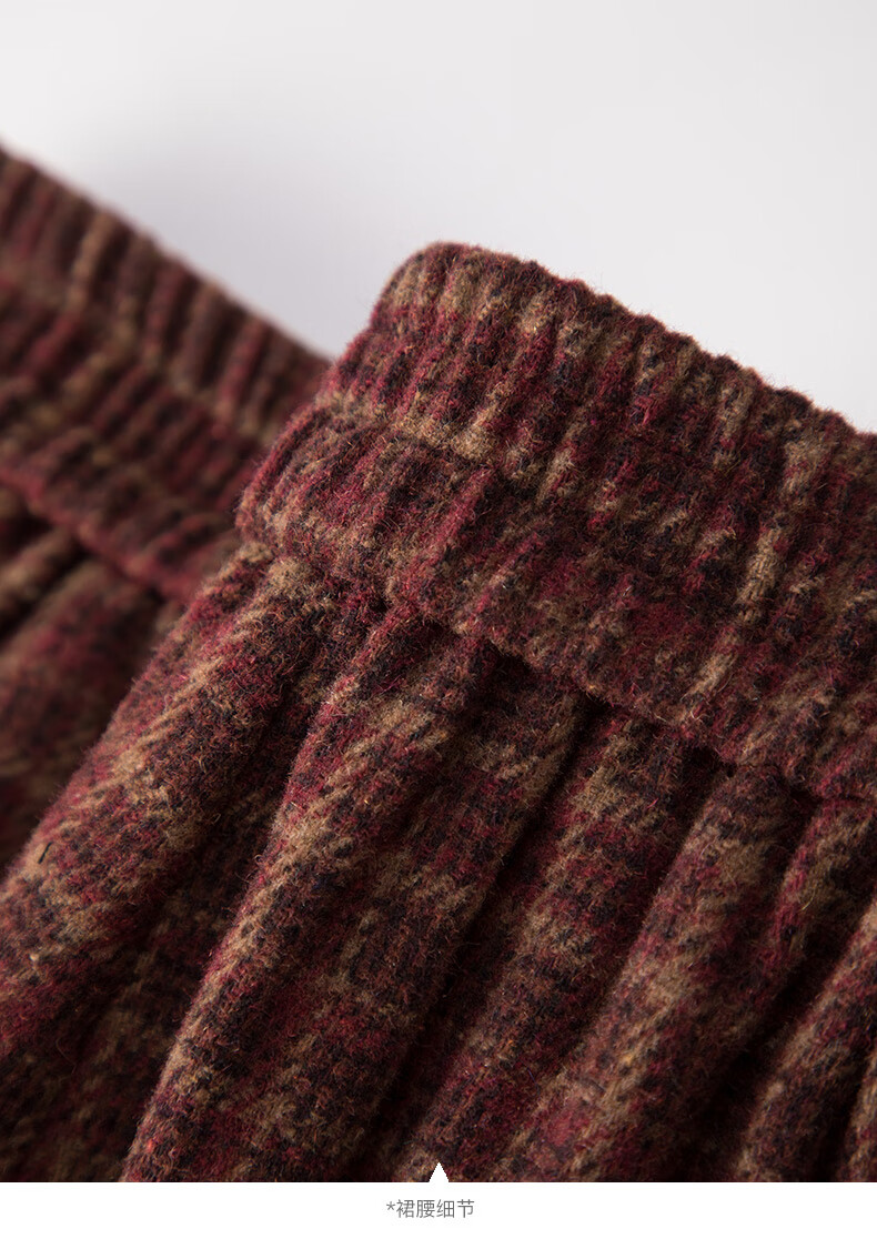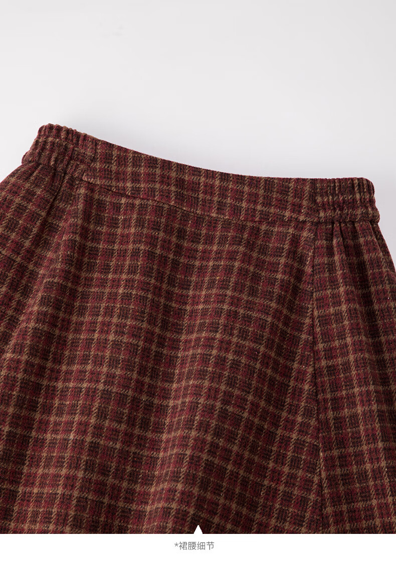 晚白【新品】复古格纹a字伞裙骐骥红百搭显瘦羊毛半身裙 格子 L