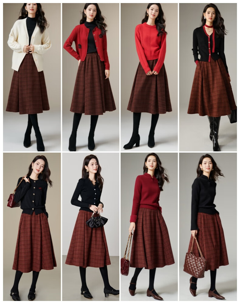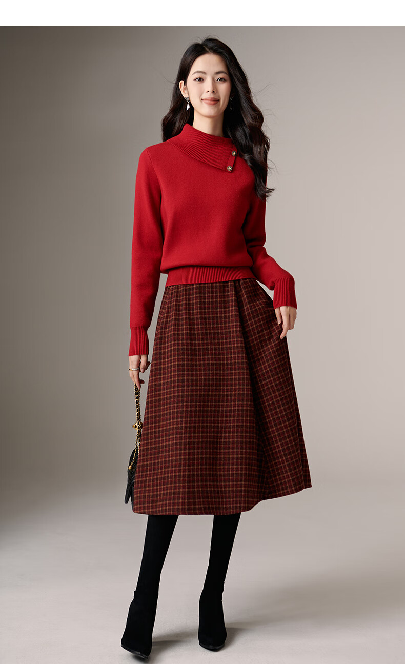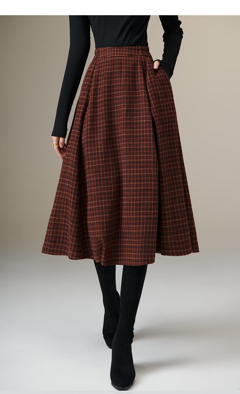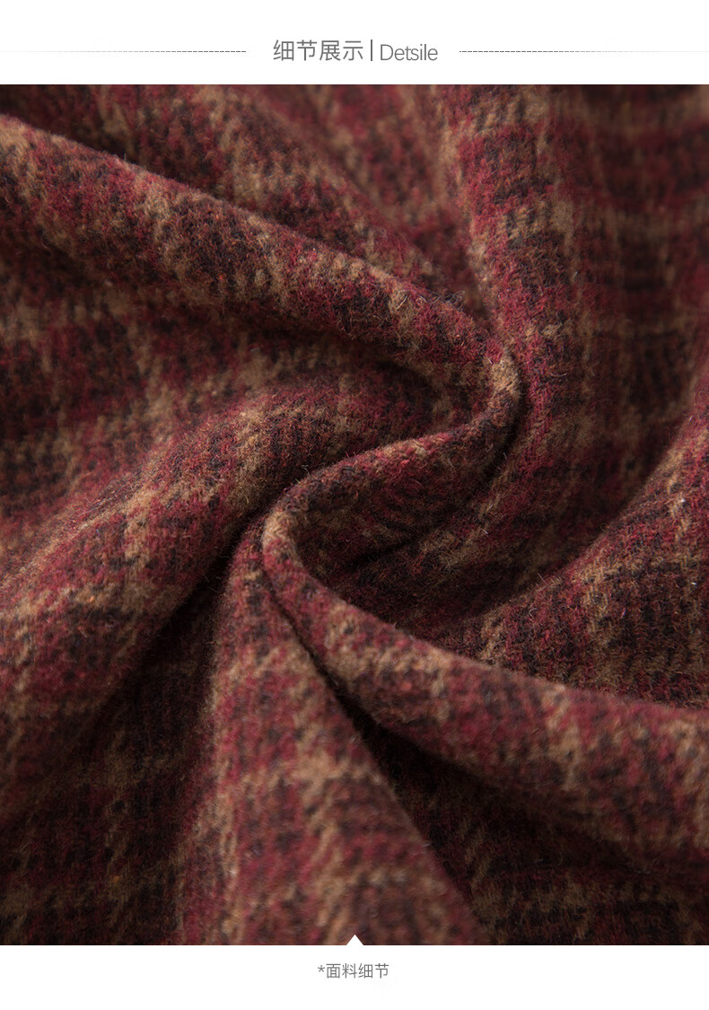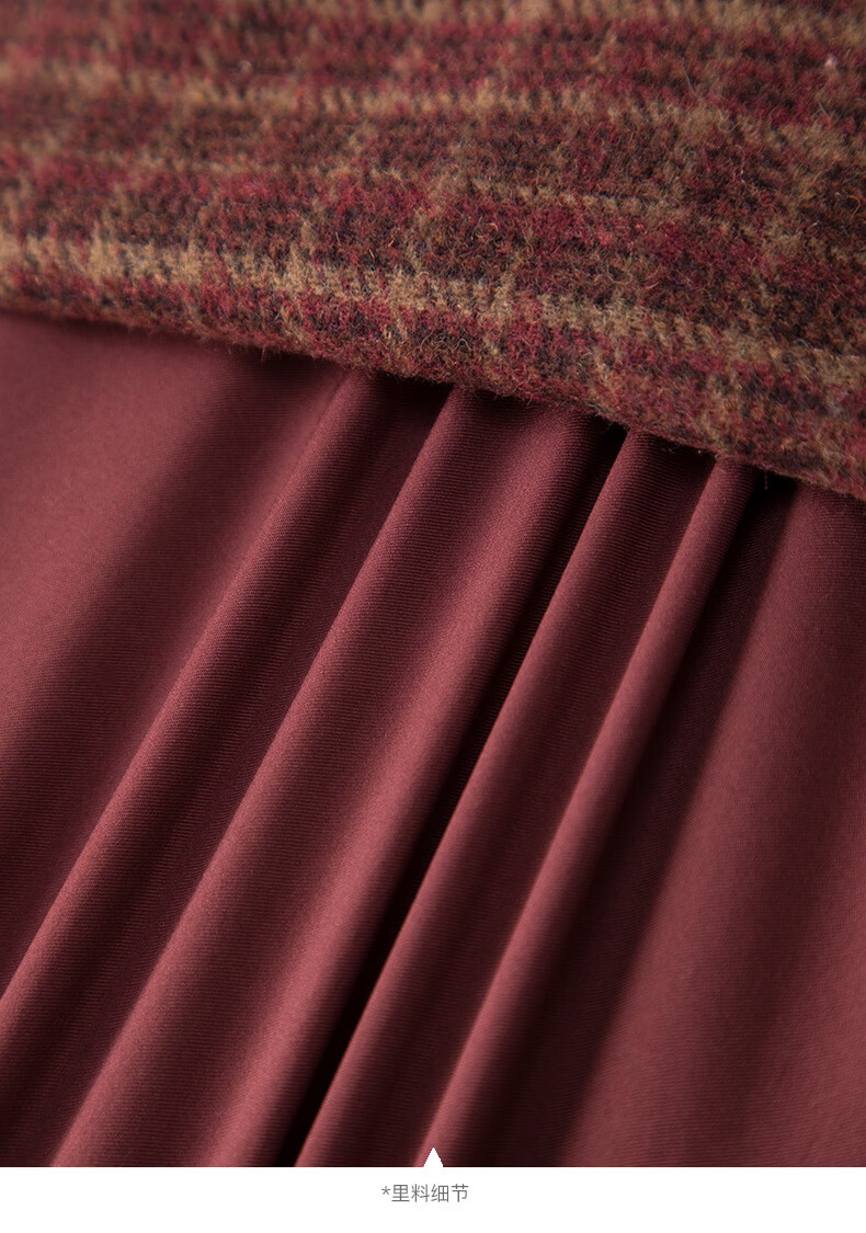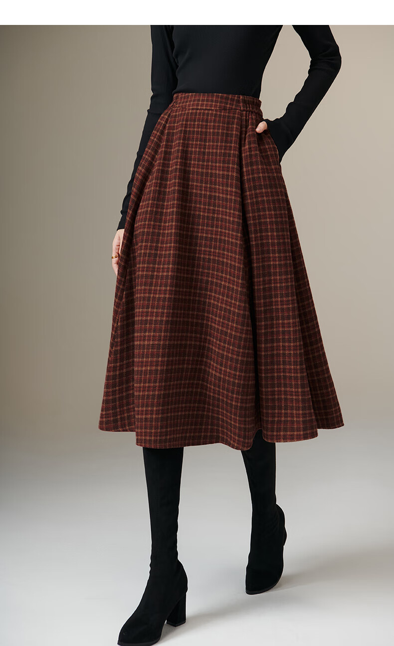 晚白【新品】复古格纹a字伞裙骐骥红百搭显瘦羊毛半身裙 格子 L