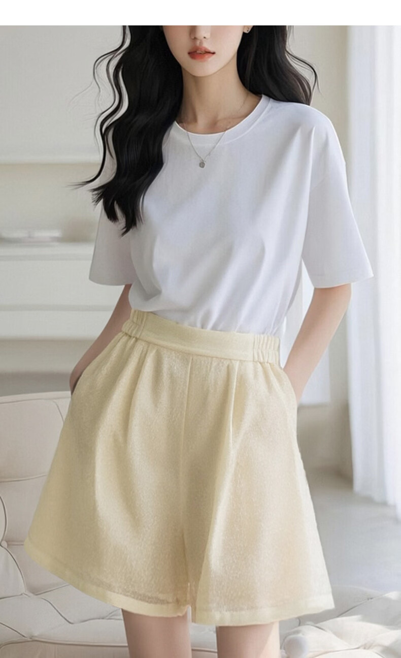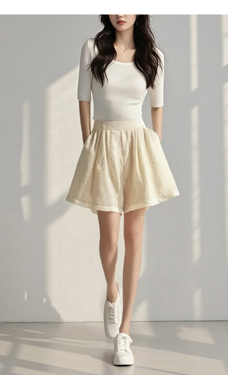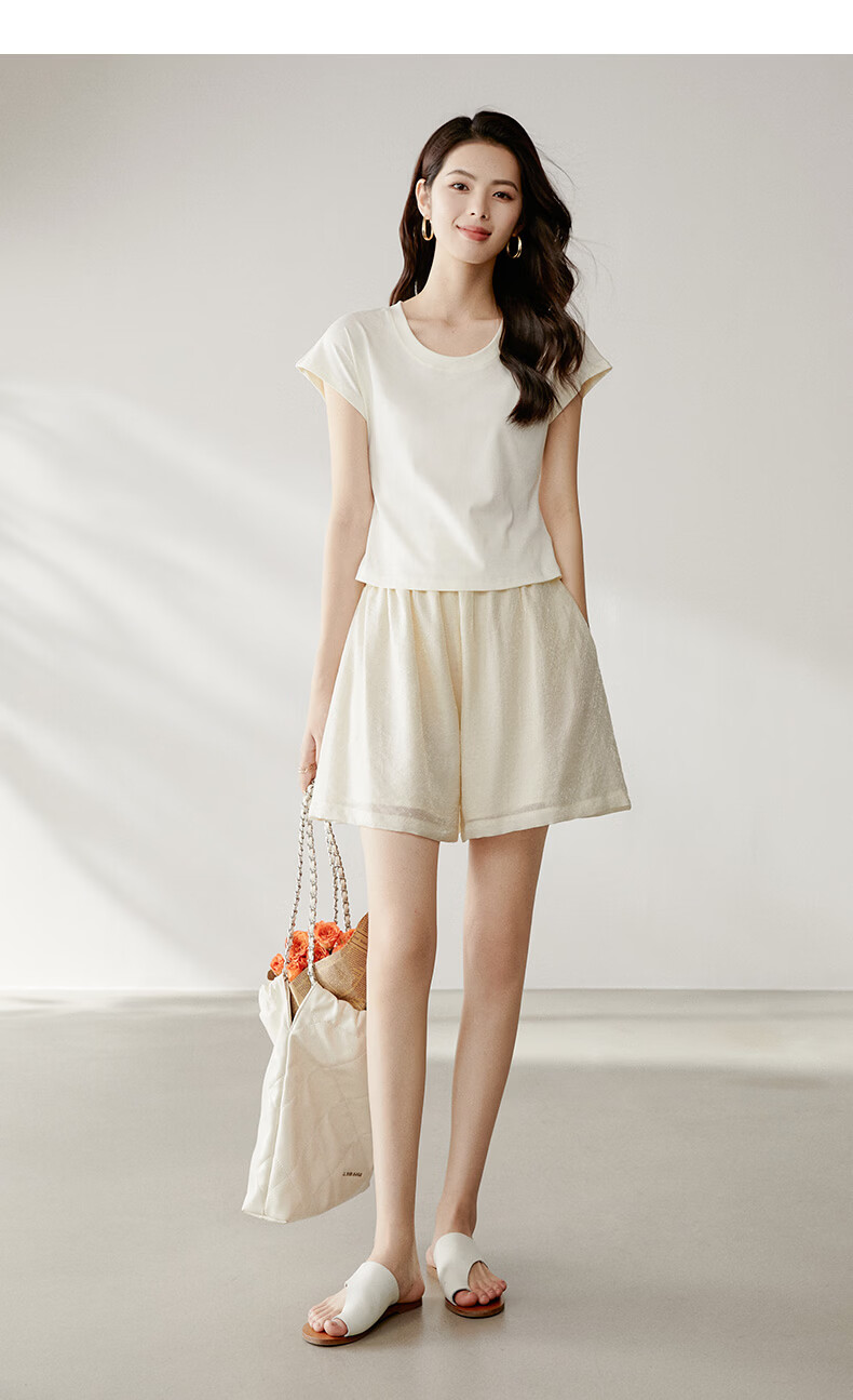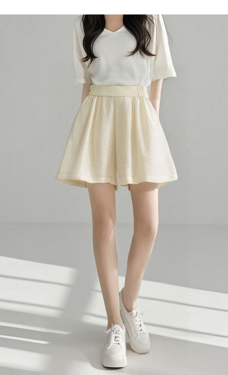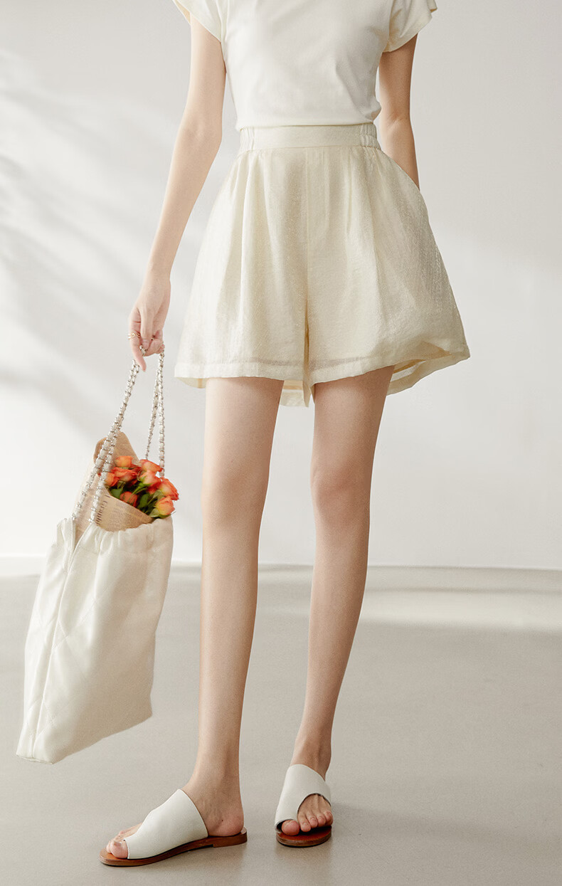 晚白【新品】2026年春款时尚松紧高腰裤子莱赛尔亲肤轻薄短裤女 米白色 28