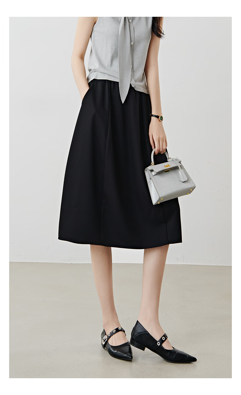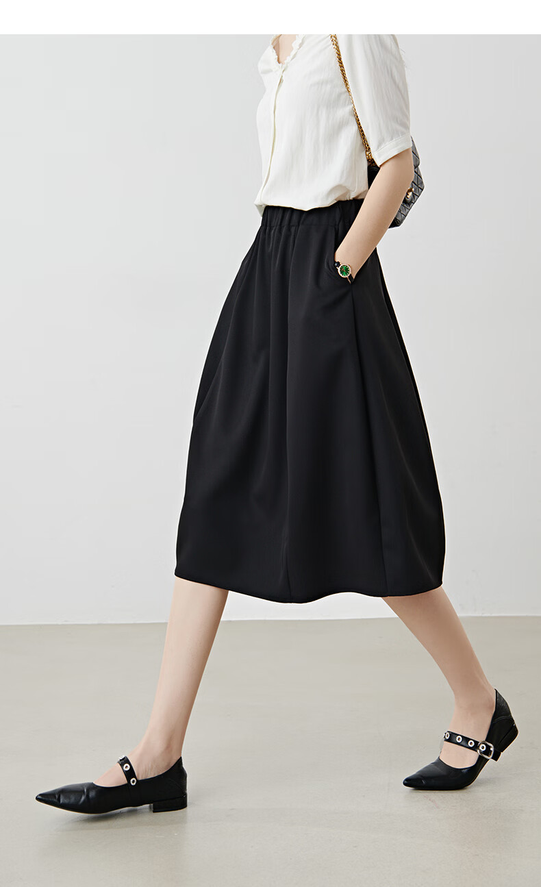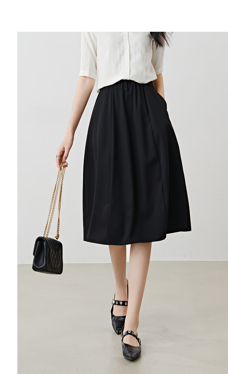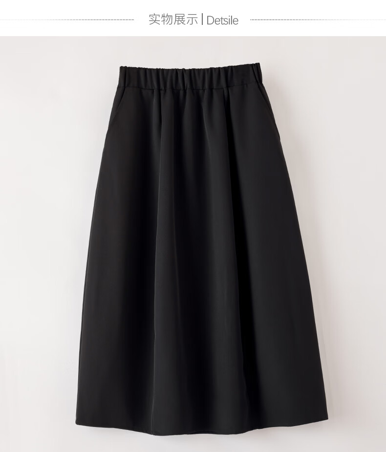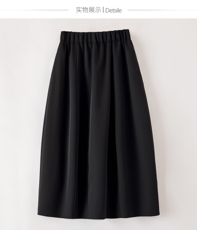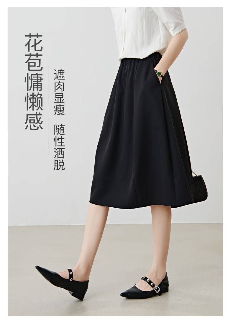 晚白【新品】2026年春款简约气质松紧腰花苞裙遮肉显瘦大摆黑色半身裙 黑色 S